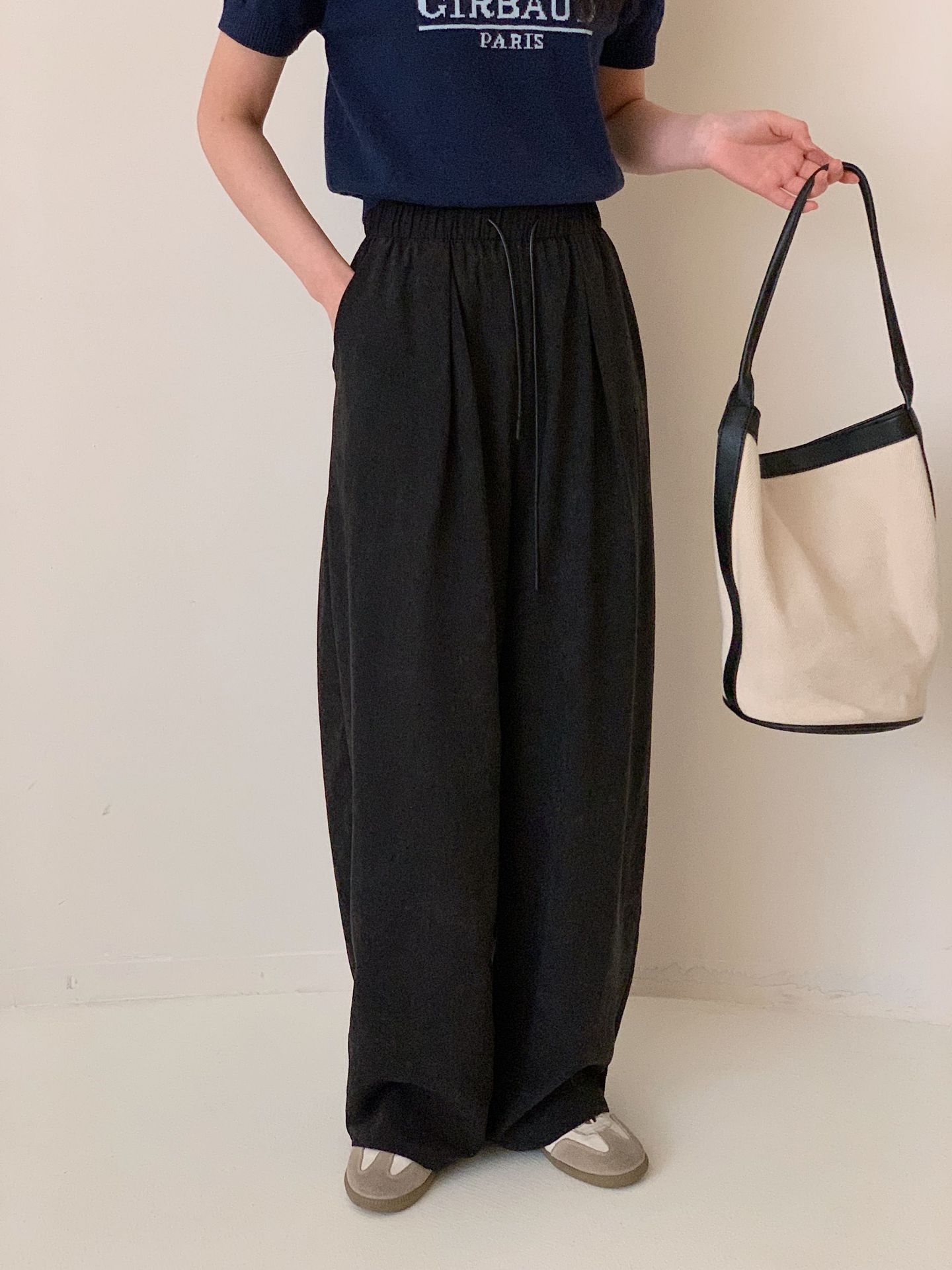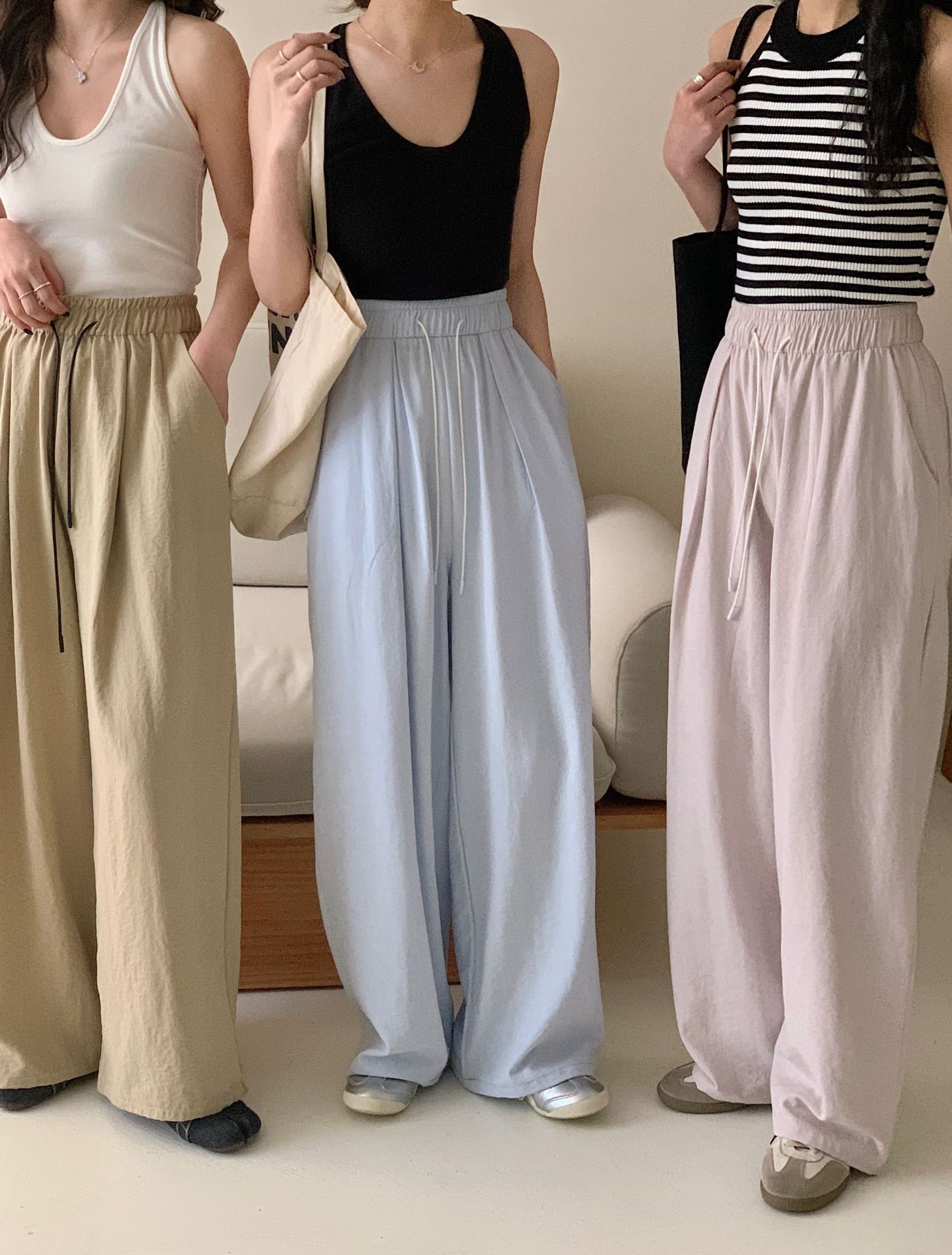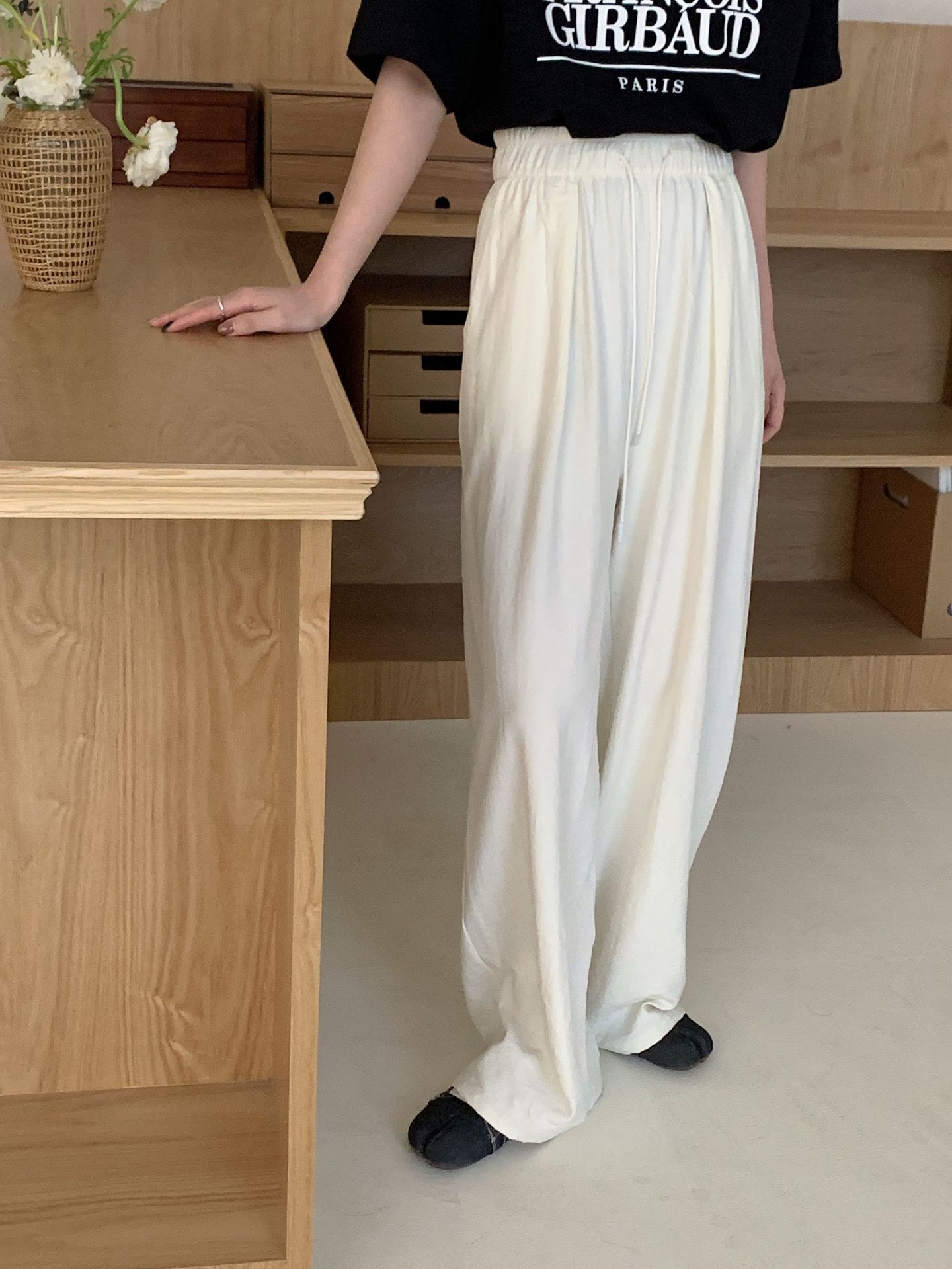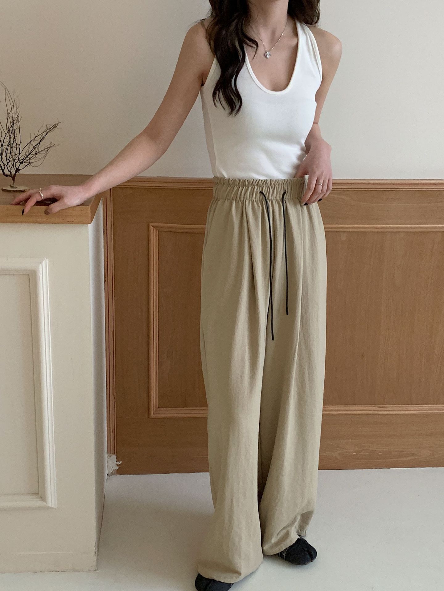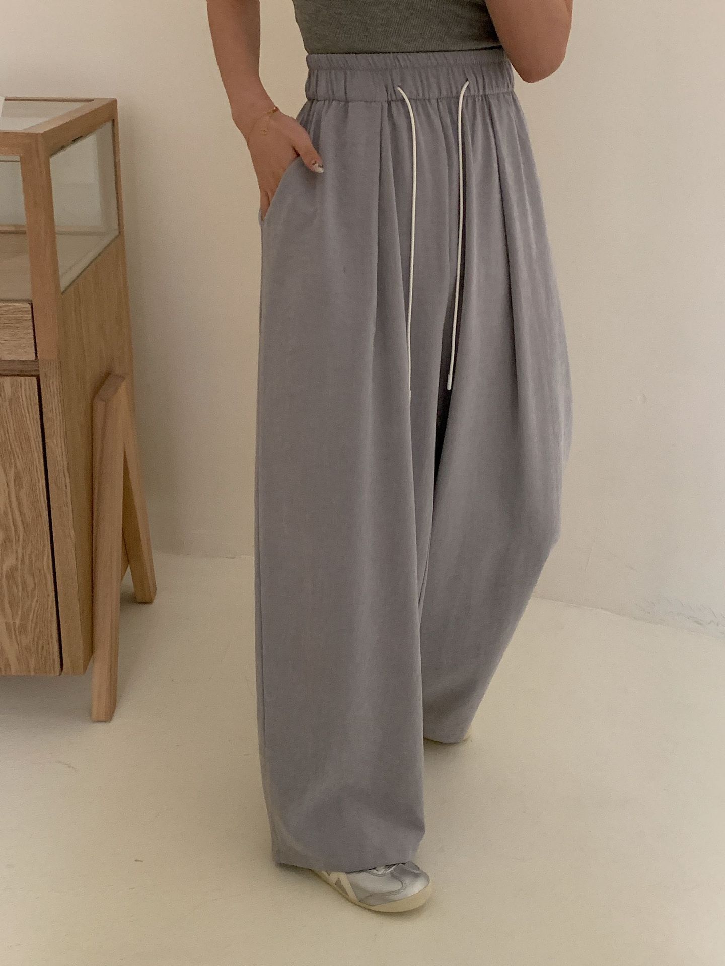 여성용 쁘띠 바디 슬리밍 와이드 레그 야마모토 팬츠 크림 무스 팬츠 아세트산 에어 팬츠스토어 가기