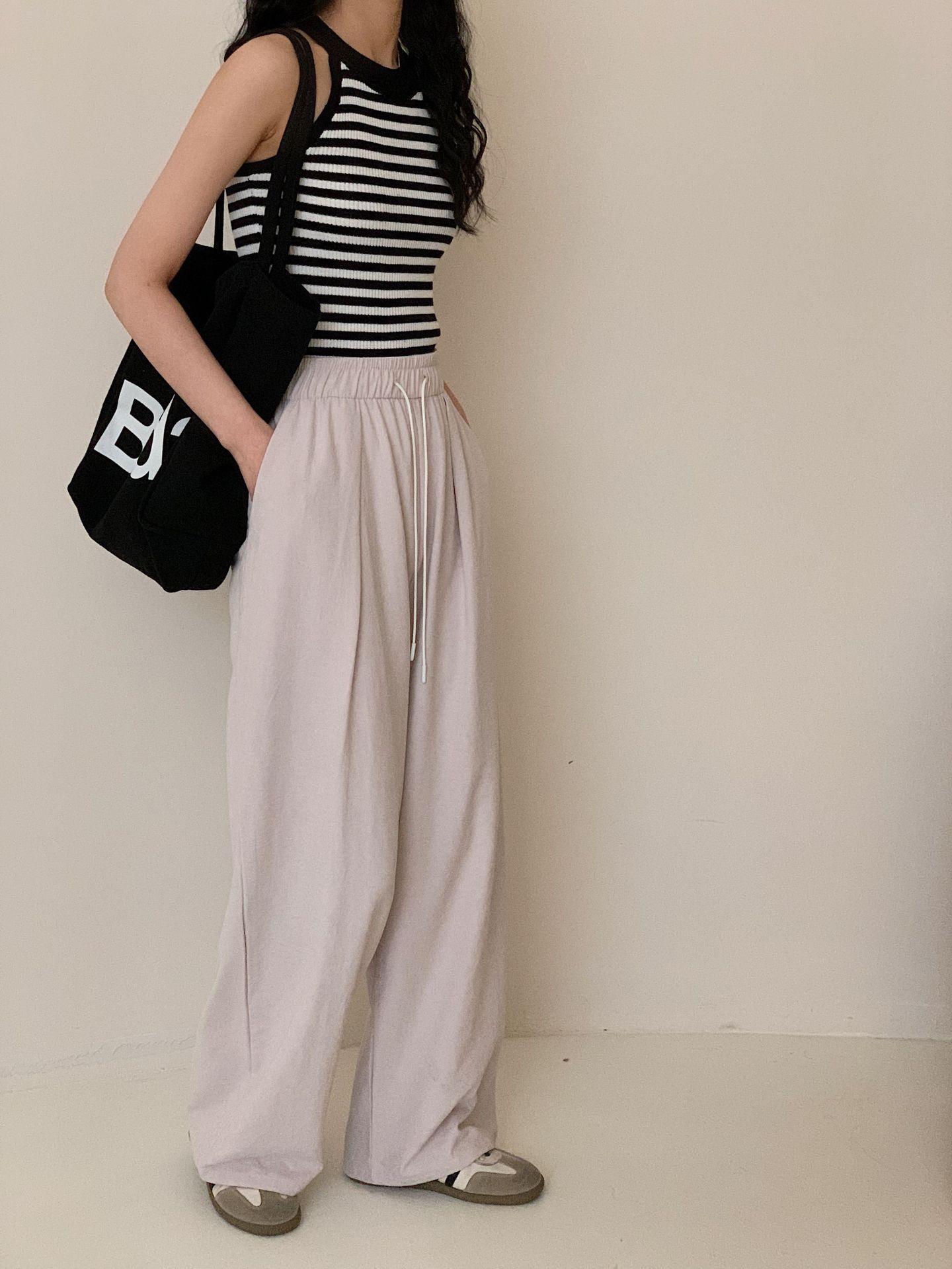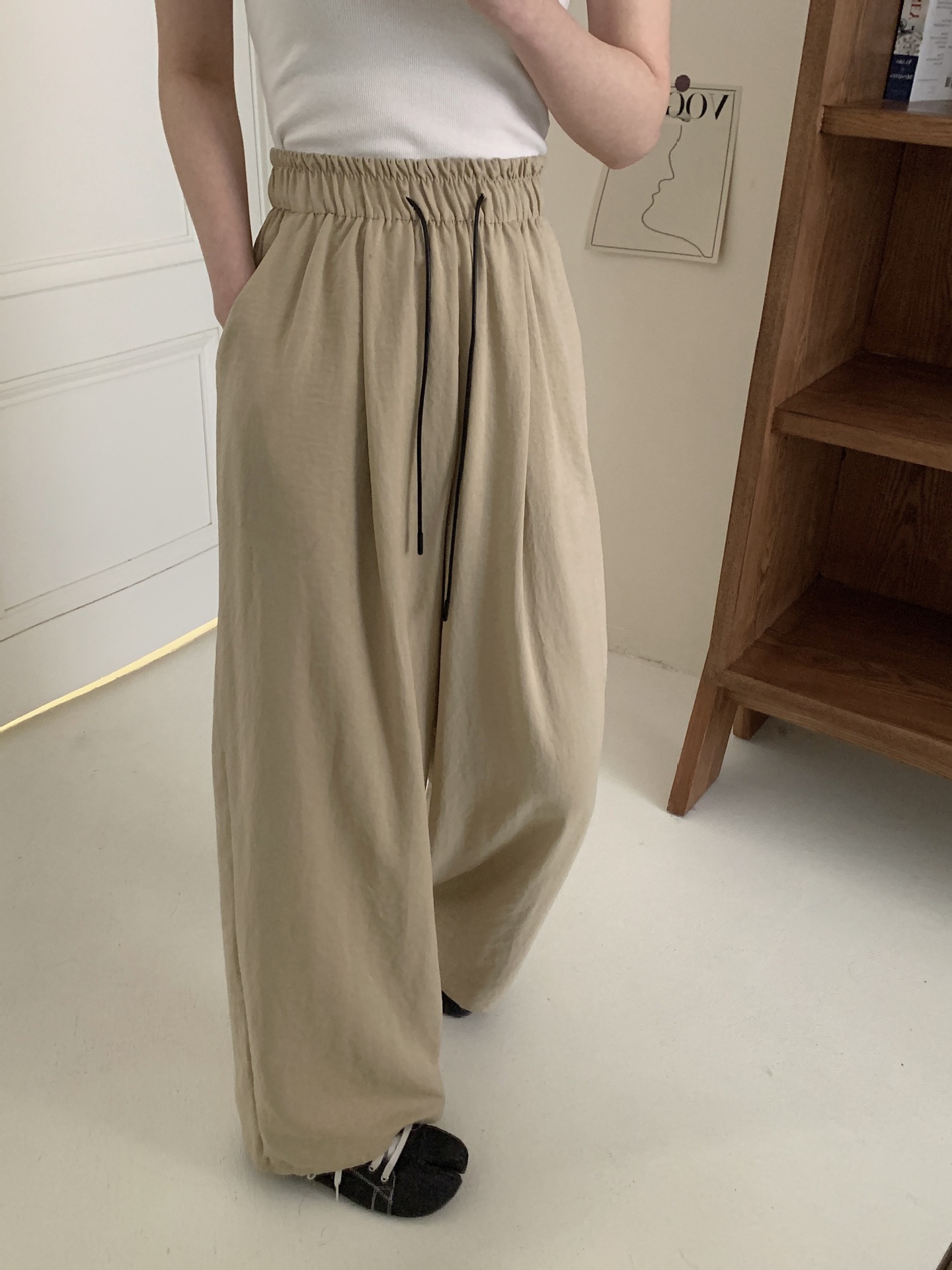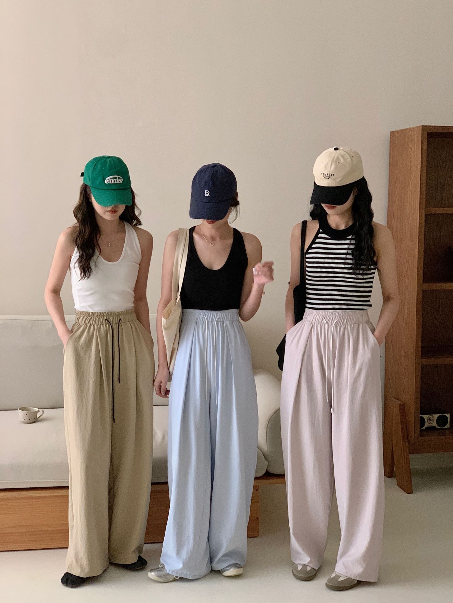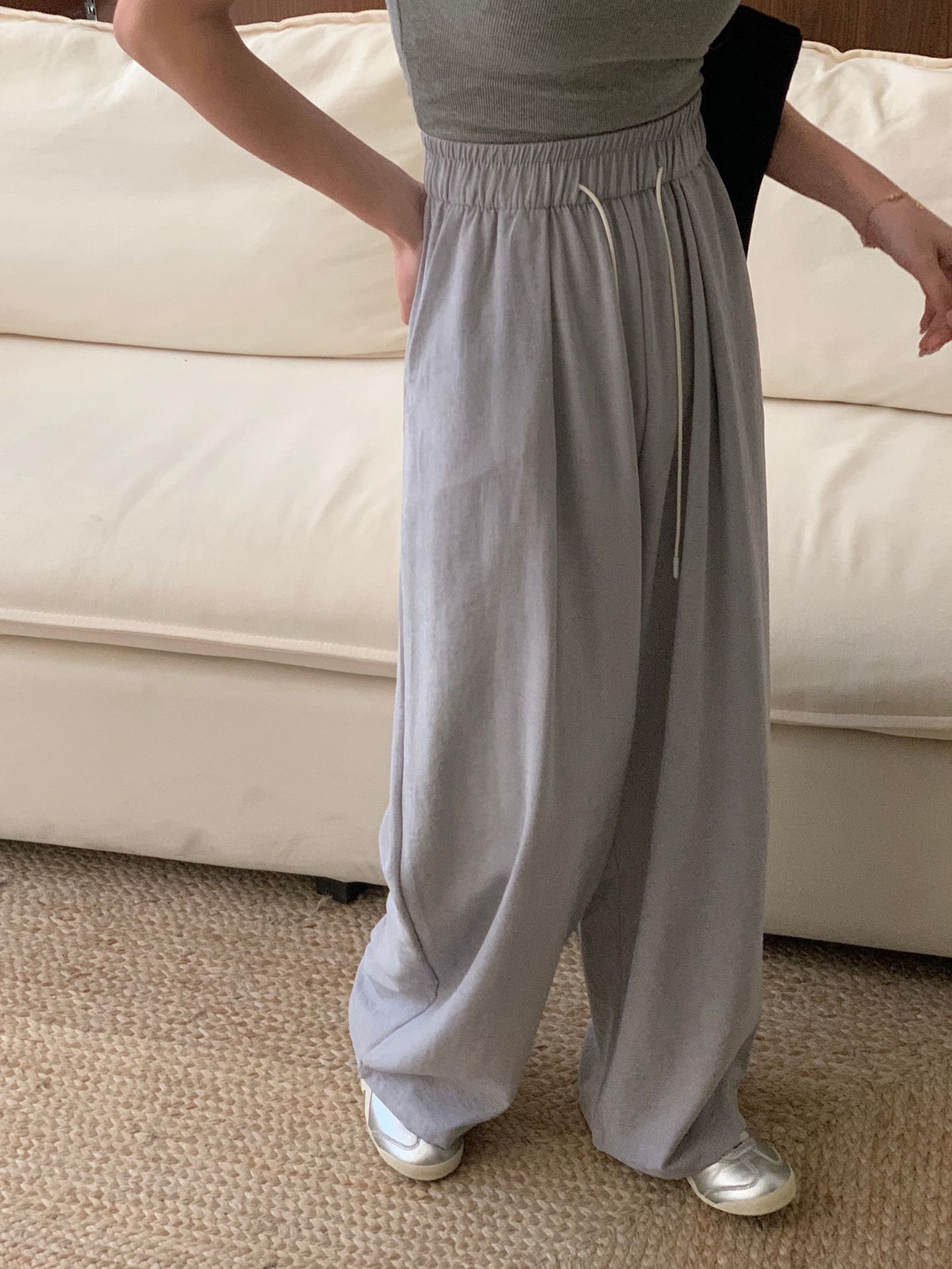 여성용 쁘띠 바디 슬리밍 와이드 레그 야마모토 팬츠 크림 무스 팬츠 아세트산 에어 팬츠스토어 가기