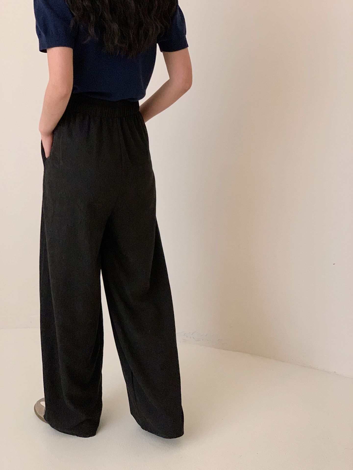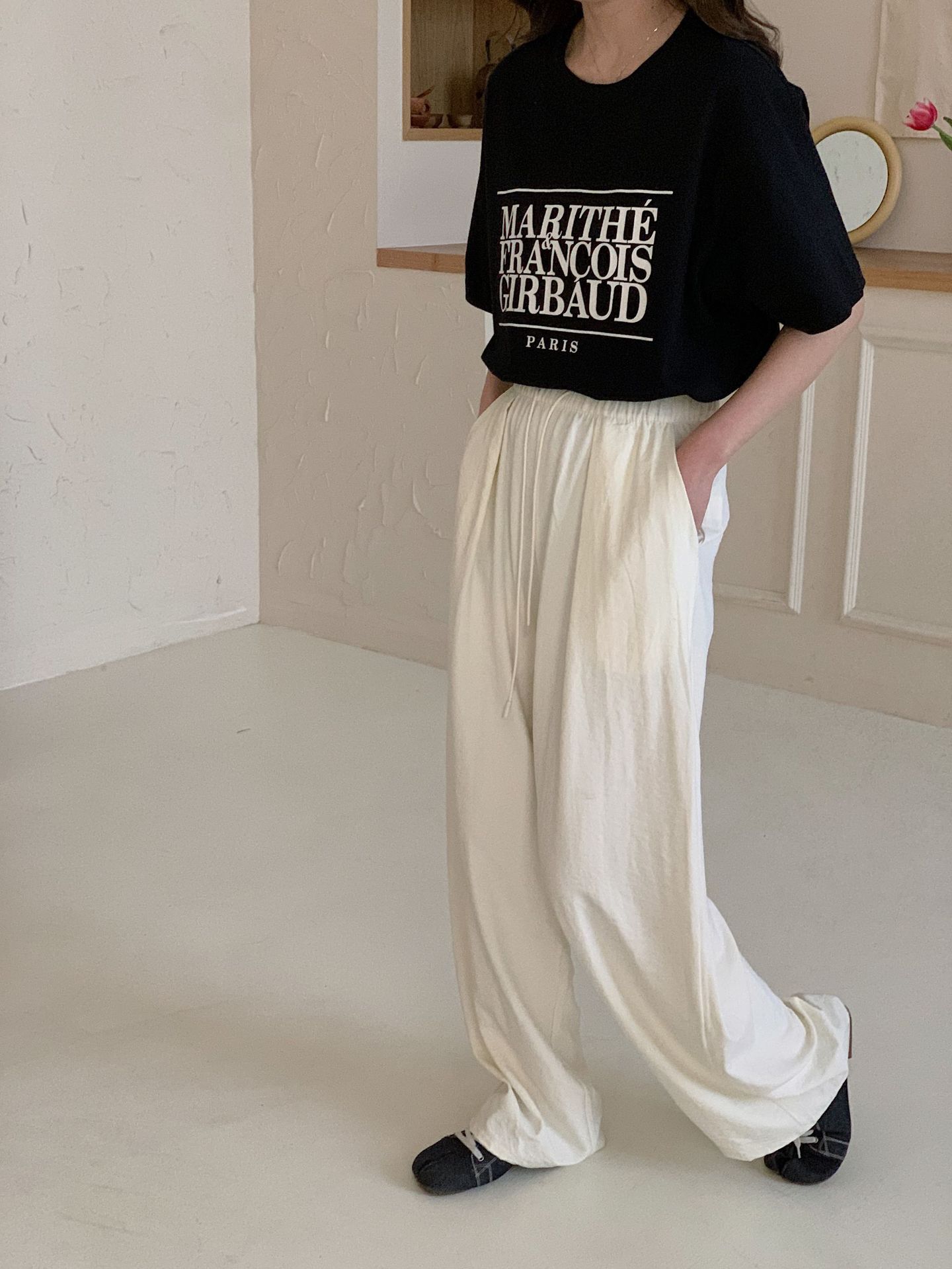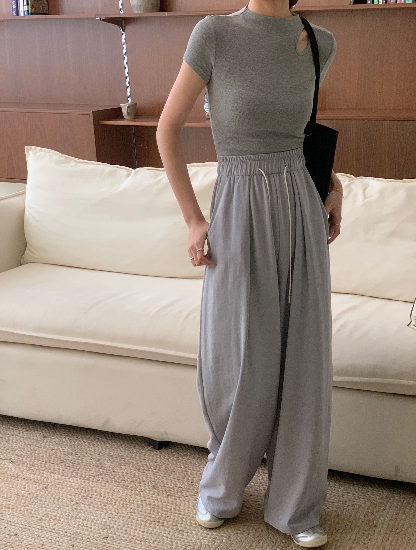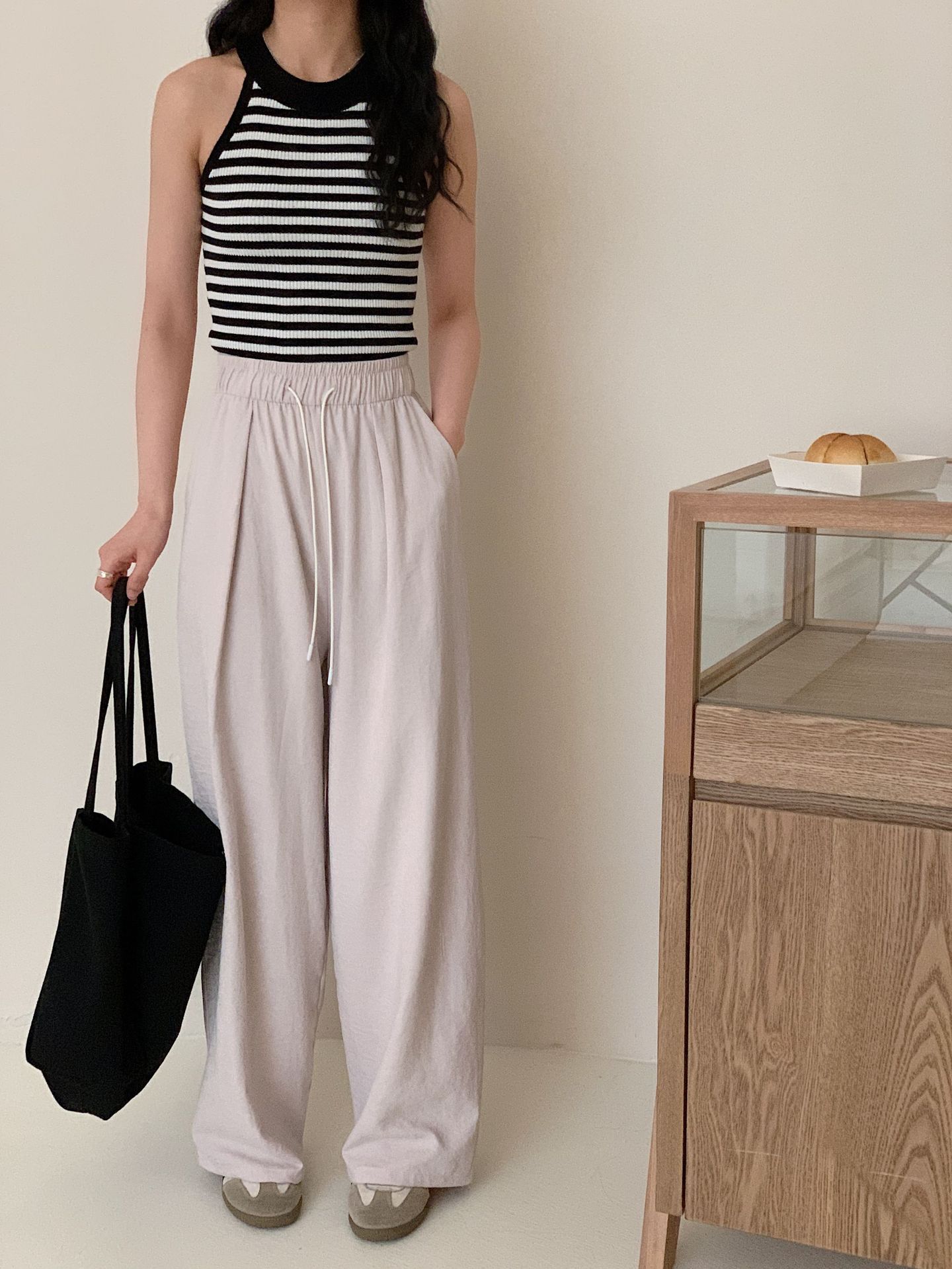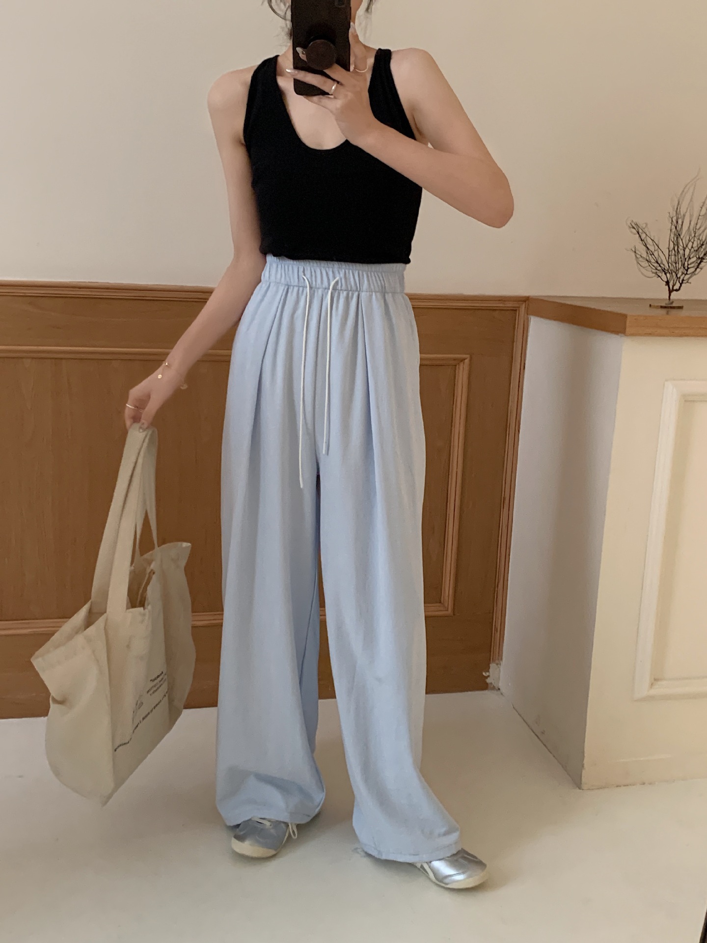여성용 쁘띠 바디 슬리밍 와이드 레그 야마모토 팬츠 크림 무스 팬츠 아세트산 에어 팬츠스토어 가기