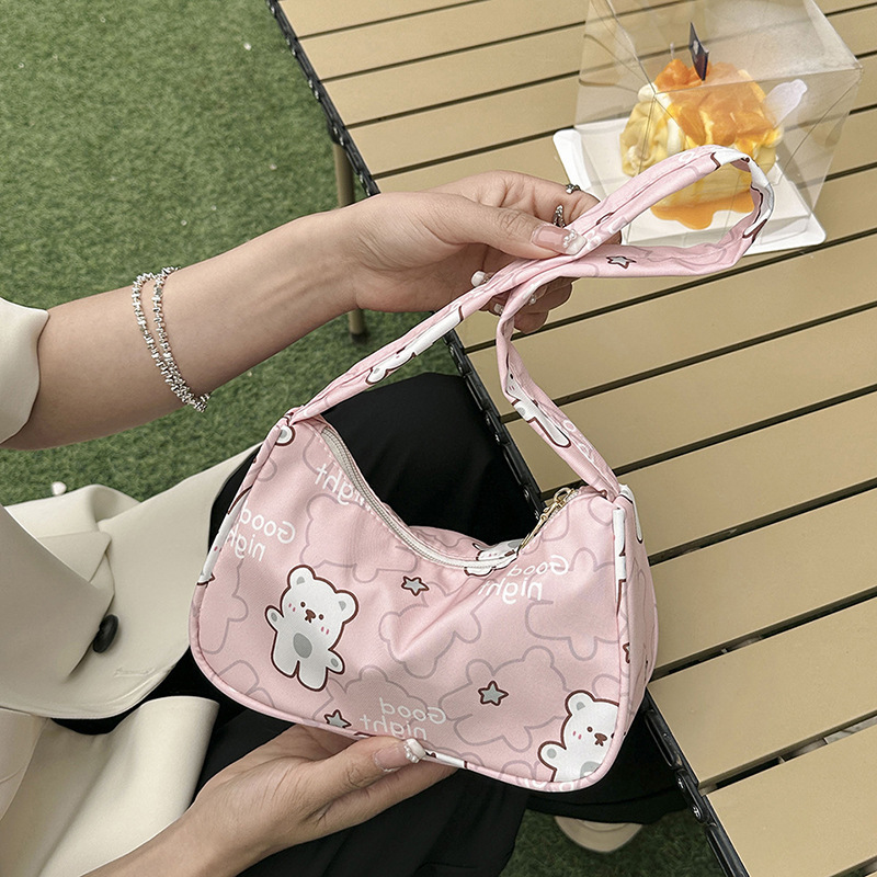 여성용 가방 속옷 가방 2024 새 어깨 가방 한국 패션 달콤한 작은 가방 핸드백 나일론 옷감