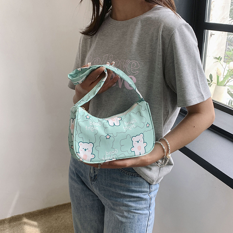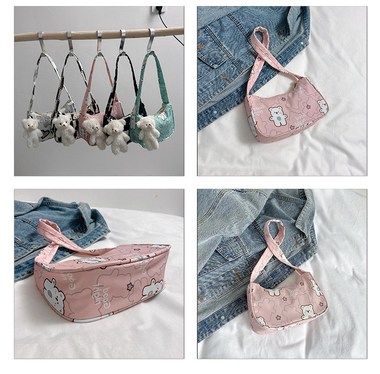 여성용 가방 속옷 가방 2024 새 어깨 가방 한국 패션 달콤한 작은 가방 핸드백 나일론 옷감스토어 가기