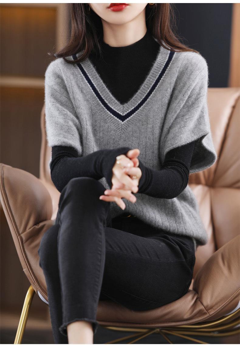 가을과 겨울 새 세트 스웨터 조끼 여자 V-넥 느슨한 색상 매칭 올 매치 조끼 니트 베이스 웨이스트 코트 외부 웨이스트 코트