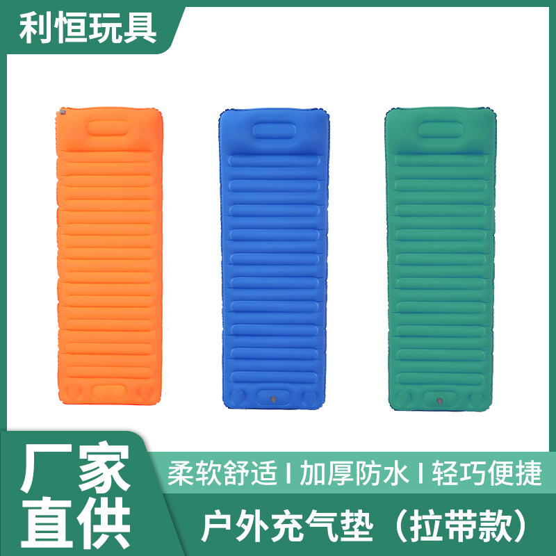 户外露营脚踩充气垫 便携收纳野营防潮睡垫 拉带款单人充气床批发90RMB立即购买>