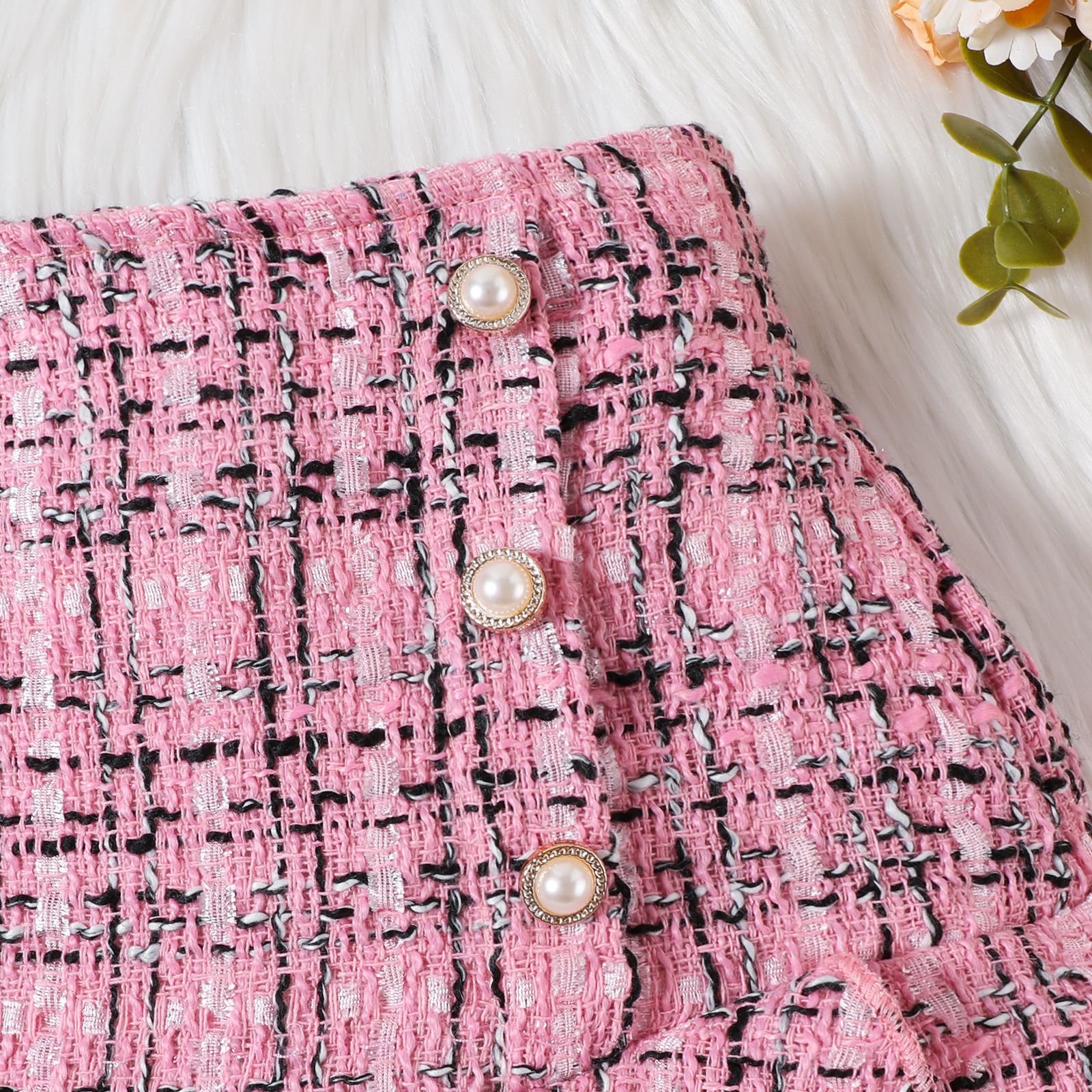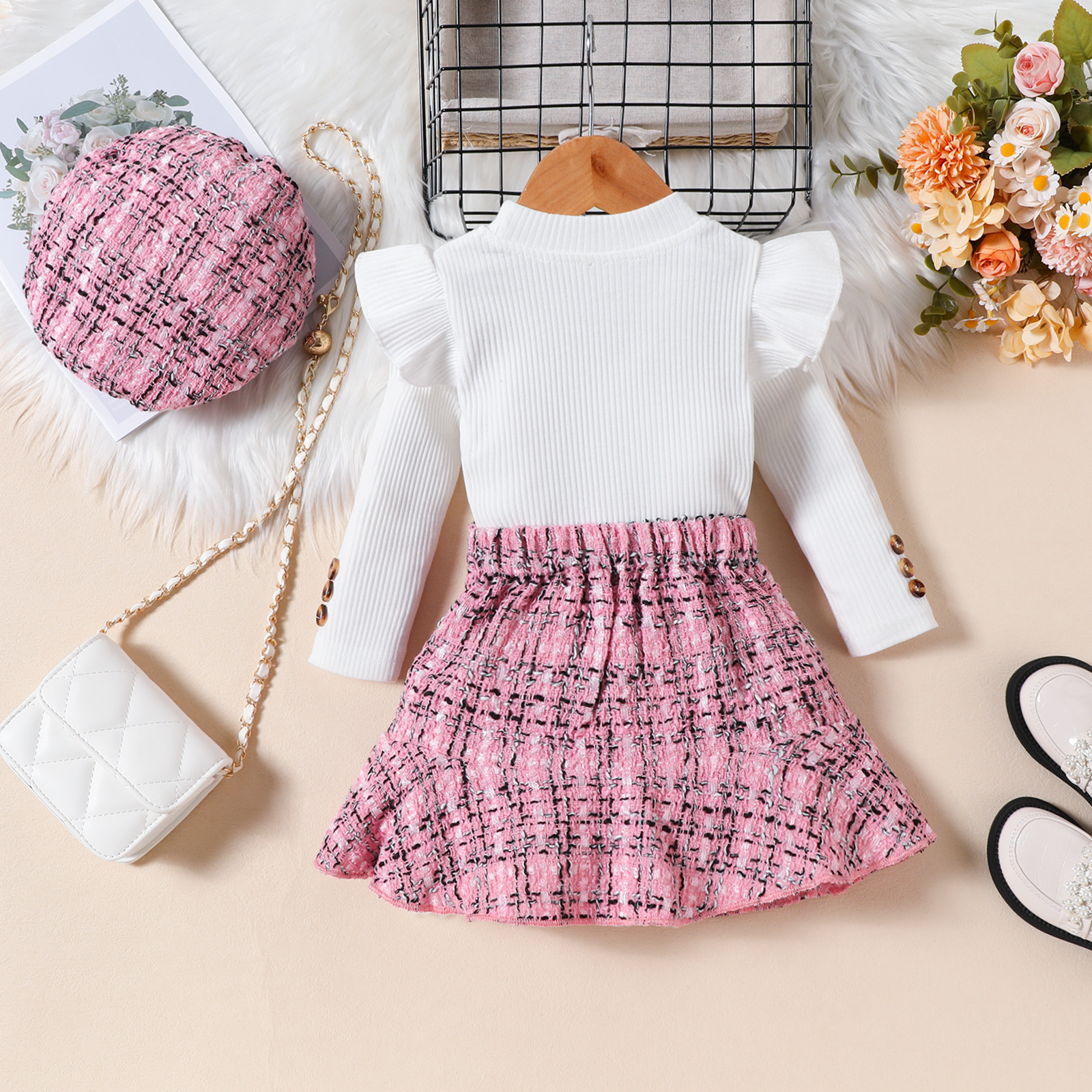 유럽과 미국의 국경 간 아동복 소녀 가을과 겨울 긴 소매 탑 작은 샤넬 스타일 짠 트위드 스커트 베레 3 피스 세트