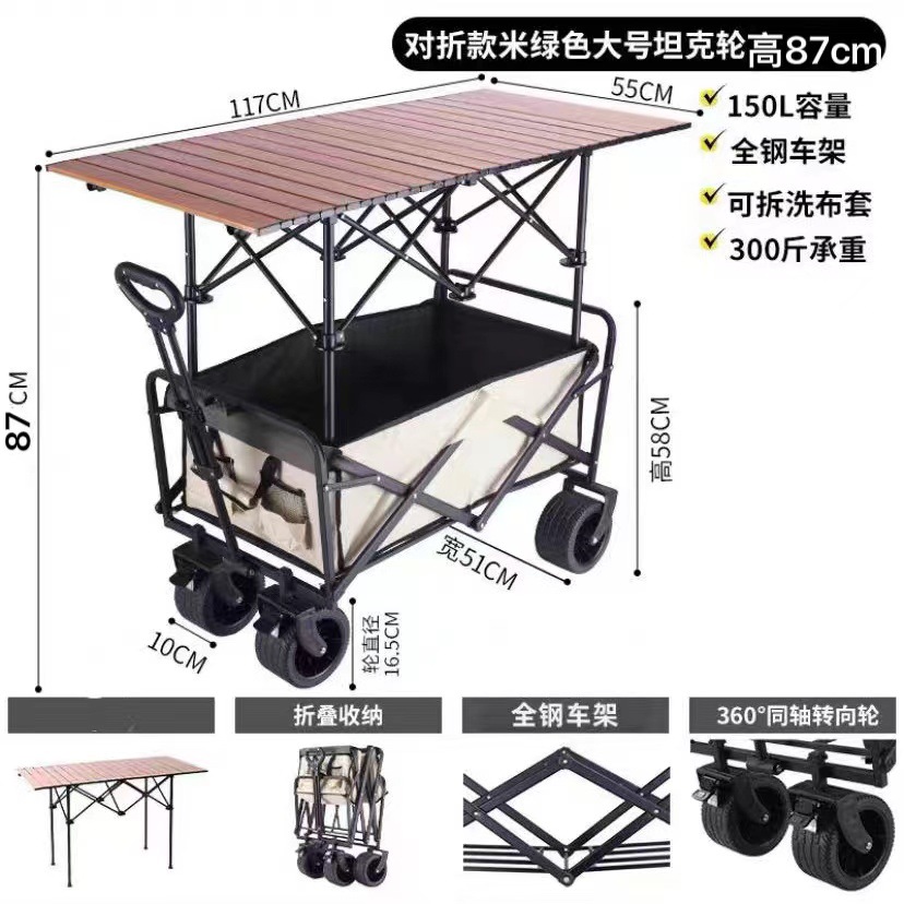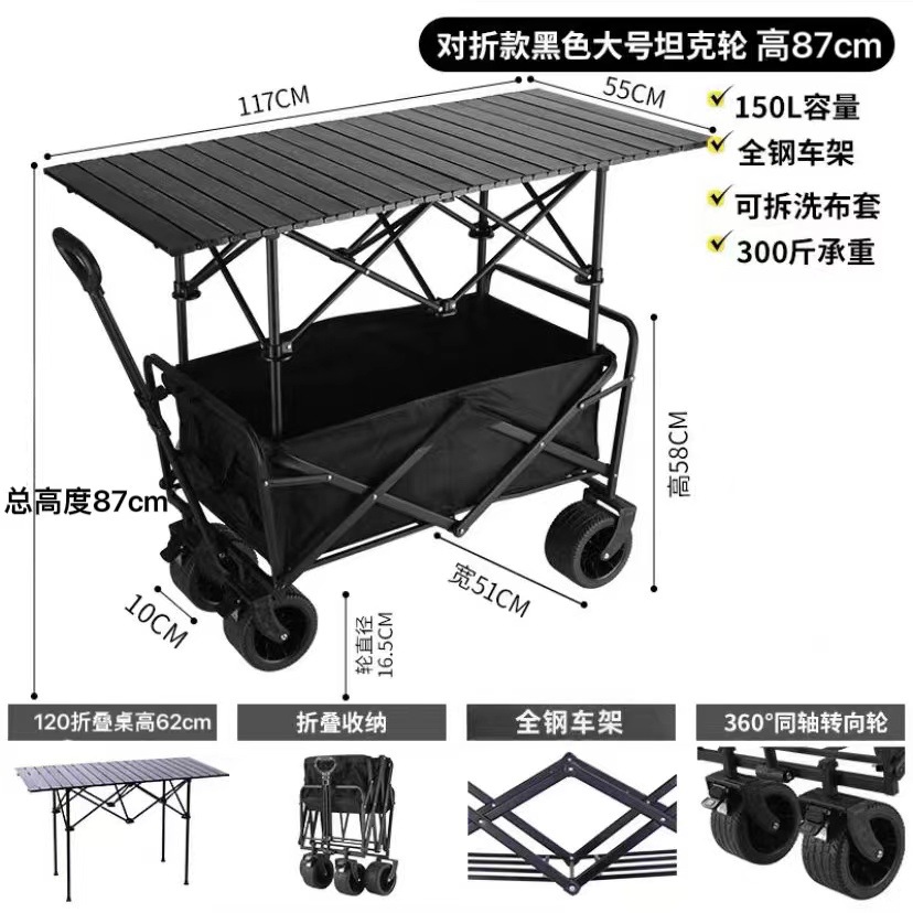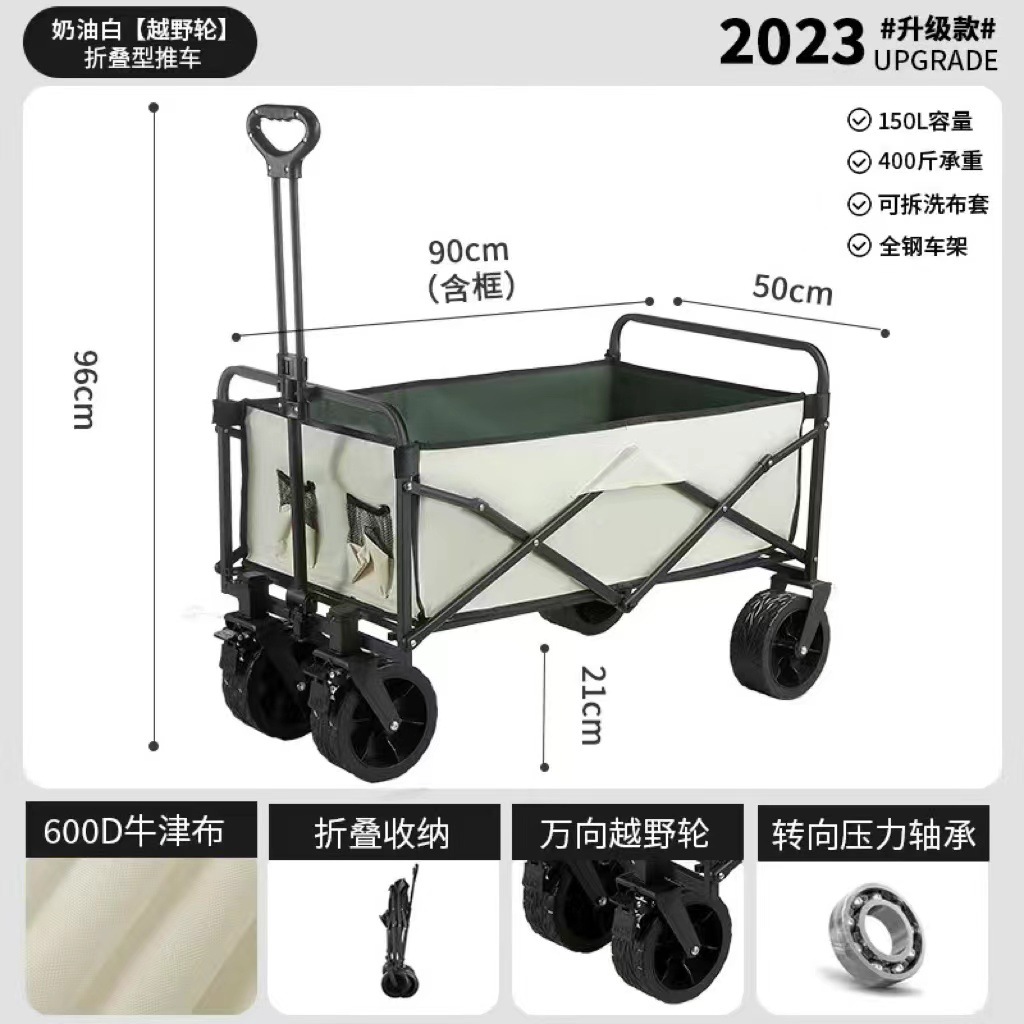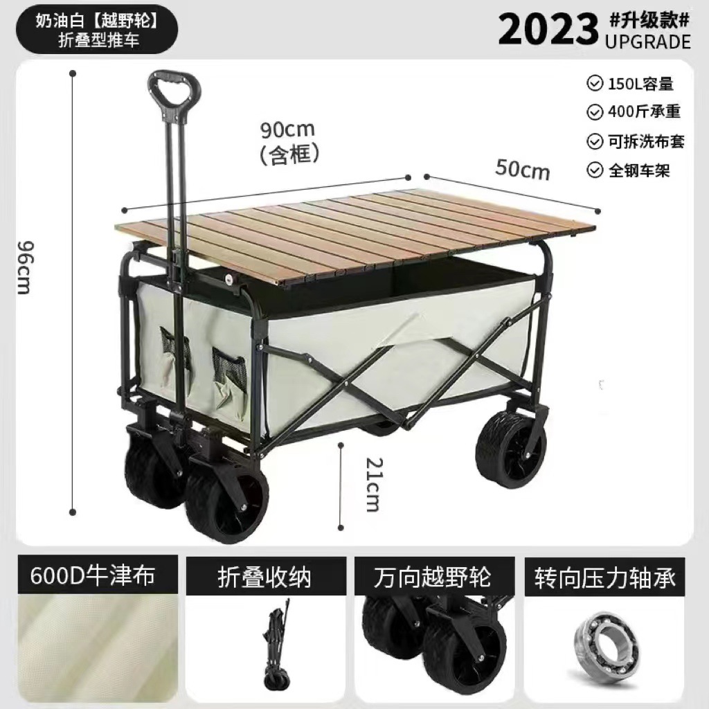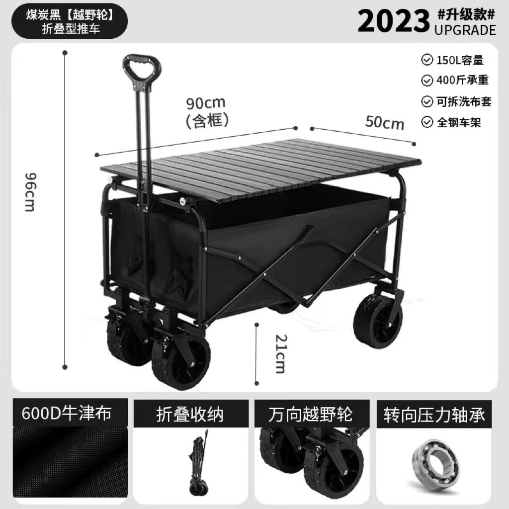 2024 새로운 캠핑 카트 마구간 접이식 야외 핸드 푸시 피크닉 자동차 캠프 트레일러 풀로드 작은 풀 카트스토어 가기