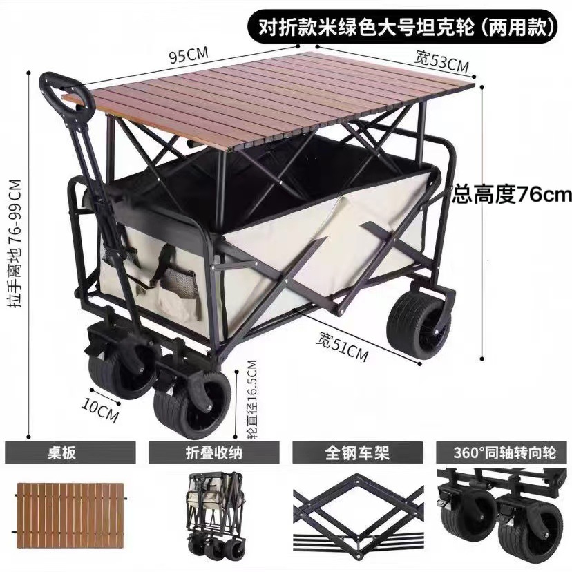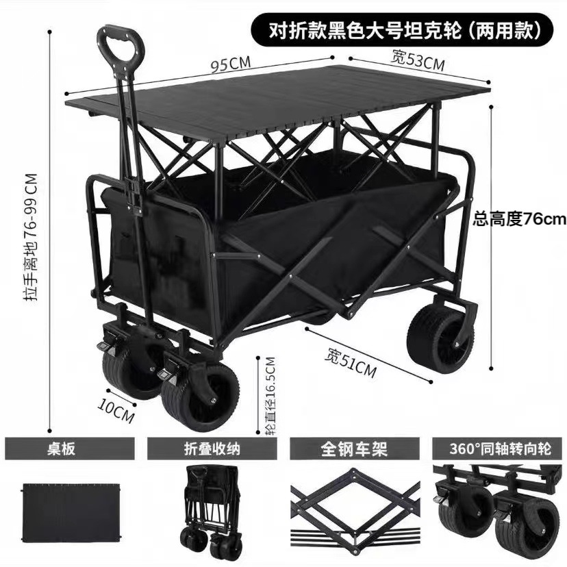 2024 새로운 캠핑 카트 마구간 접이식 야외 핸드 푸시 피크닉 자동차 캠프 트레일러 풀로드 작은 풀 카트