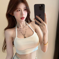 뜨거운 소녀 스트레치 디자인 카미솔 여성 여름 외부 섹시한 벨트 가슴 패드 슬림핏 슬리밍 내부 쇼트 탑 착용