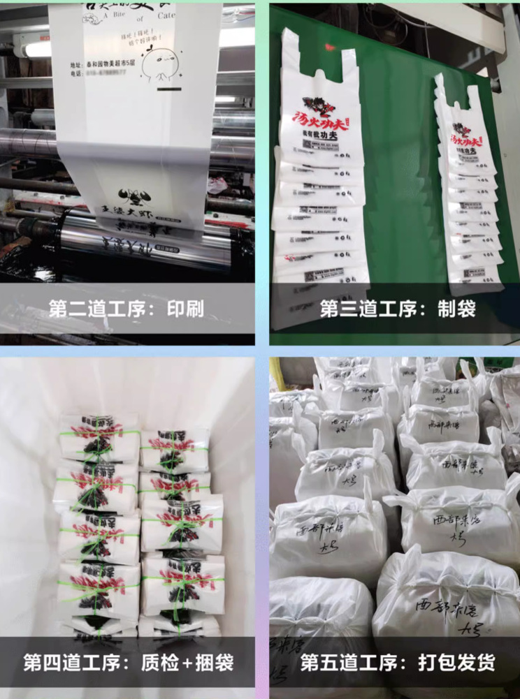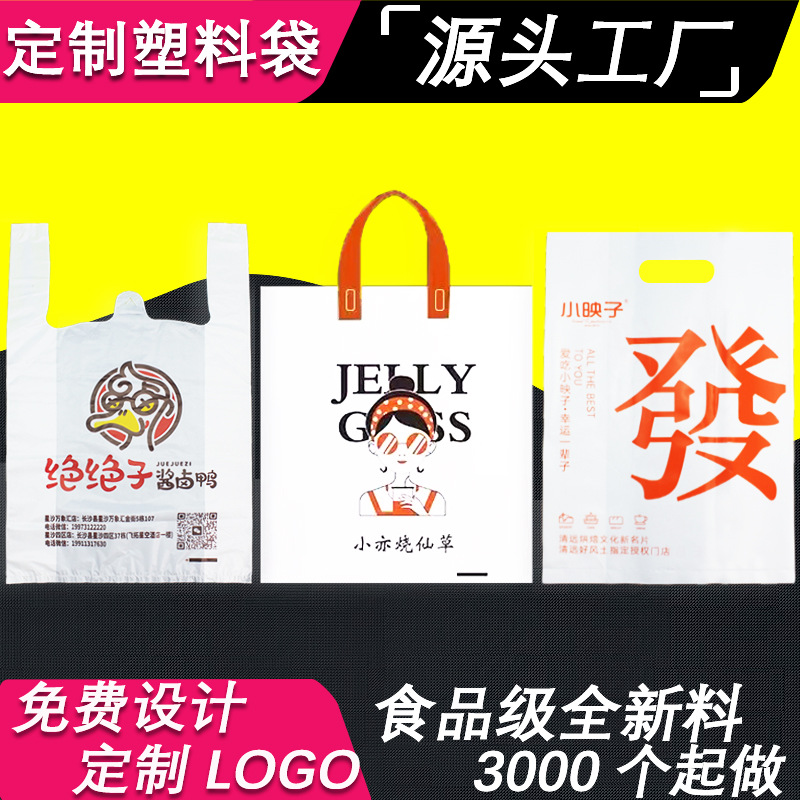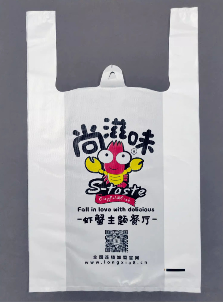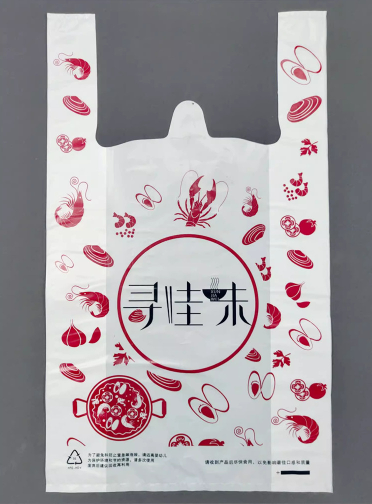 비닐 봉투 맞춤형 로고 포장 가방 테이크 아웃 편리한 조끼 가방 과일 스낵 슈퍼마켓 쇼핑 가방 네 손가락 가방스토어 가기