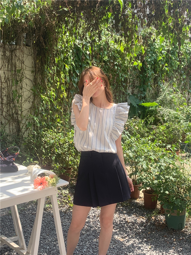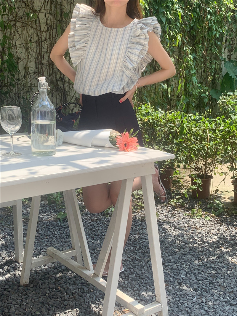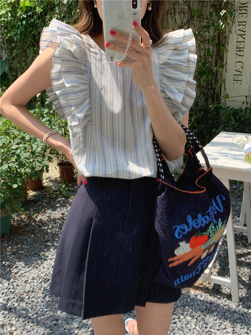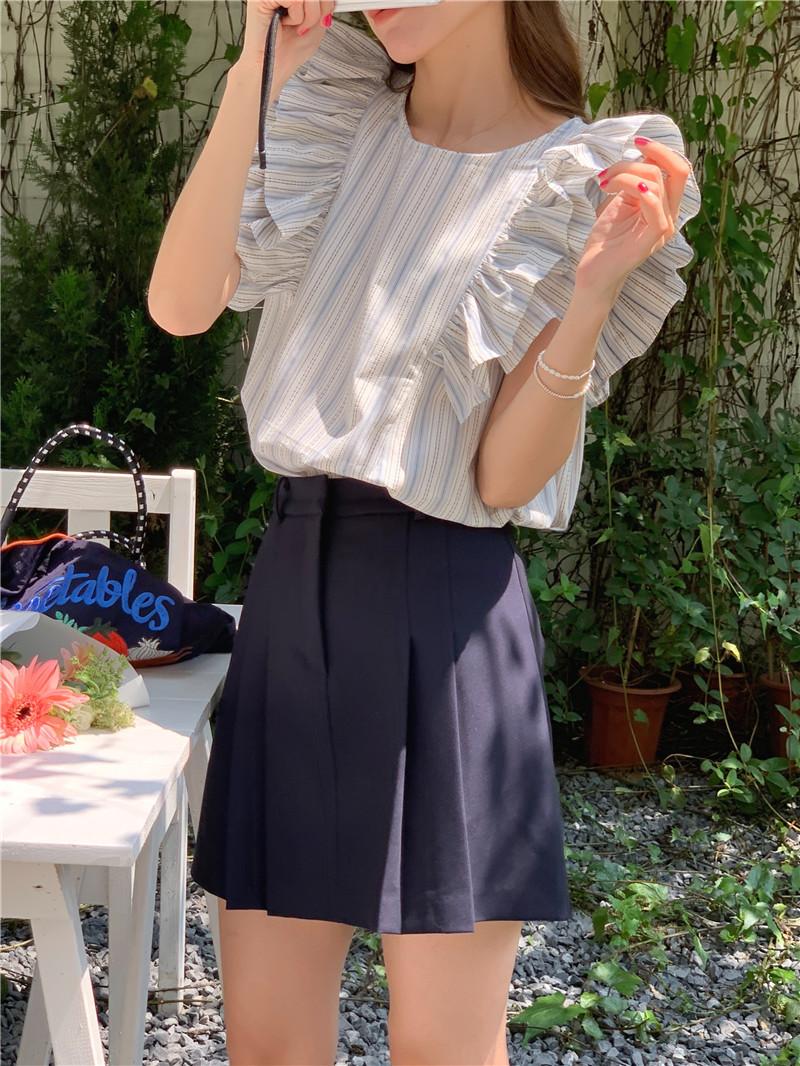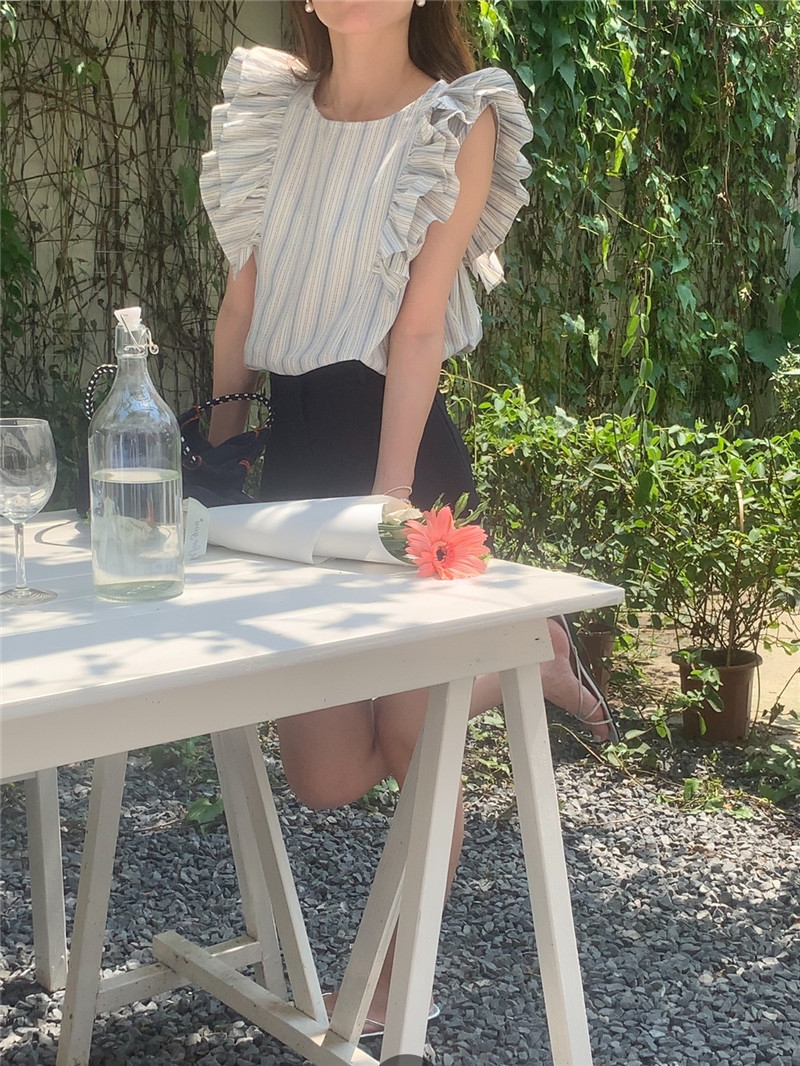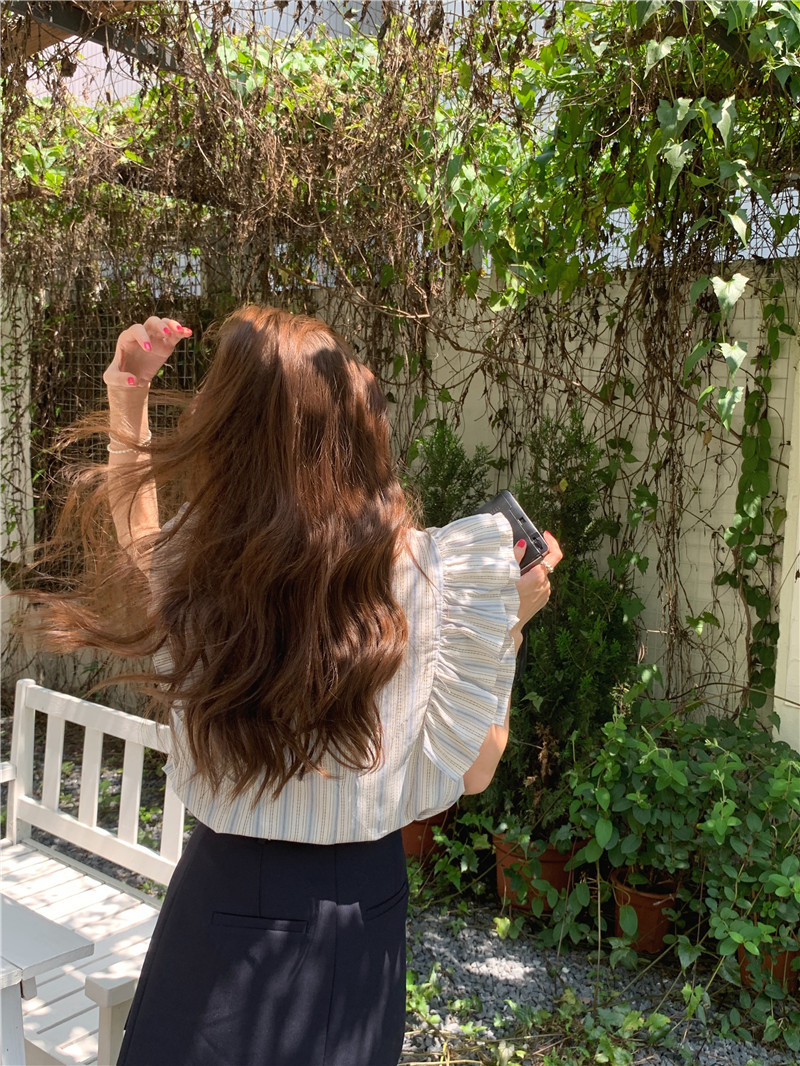 한국어 버전의 달콤한 작은 플라잉 슬리브 라운드 넥 풀오버 반팔 셔츠 여성 2025 여름 새 스타일스토어 가기