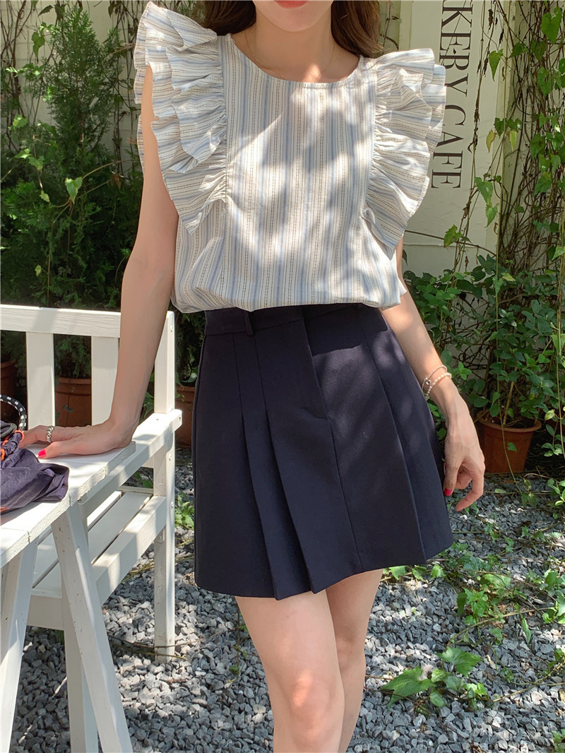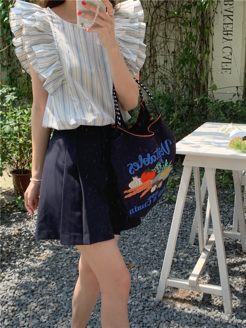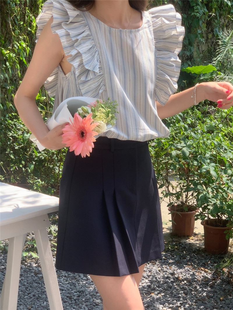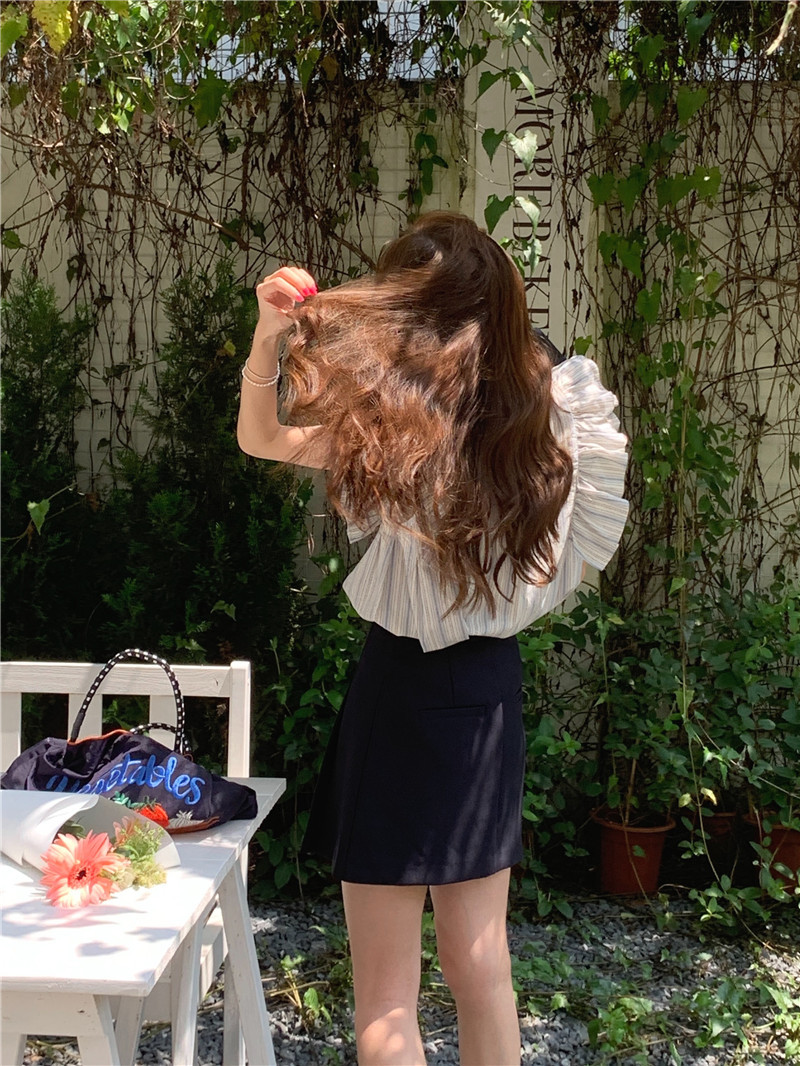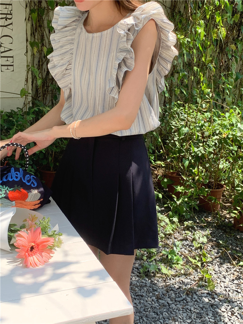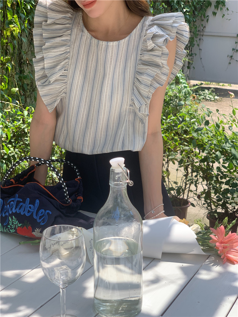 한국어 버전의 달콤한 작은 플라잉 슬리브 라운드 넥 풀오버 반팔 셔츠 여성 2025 여름 새 스타일스토어 가기