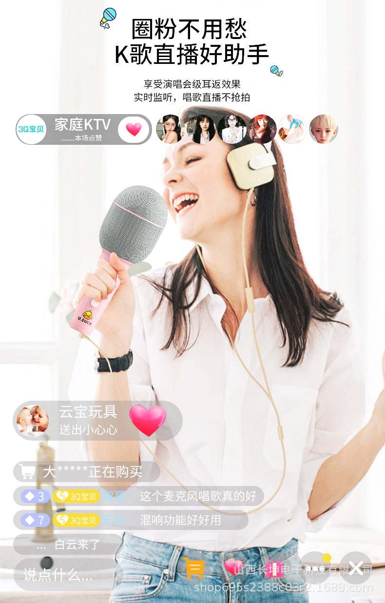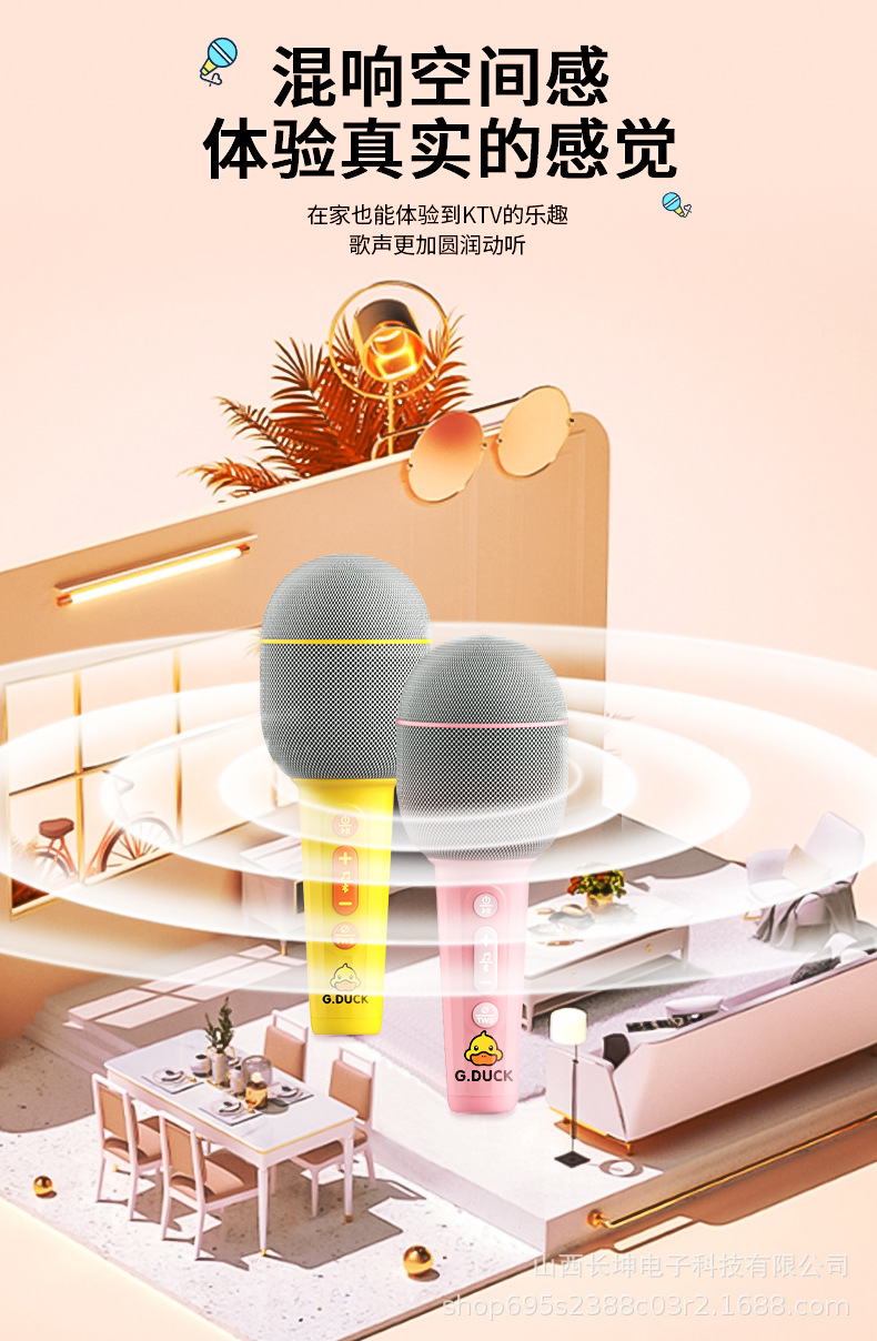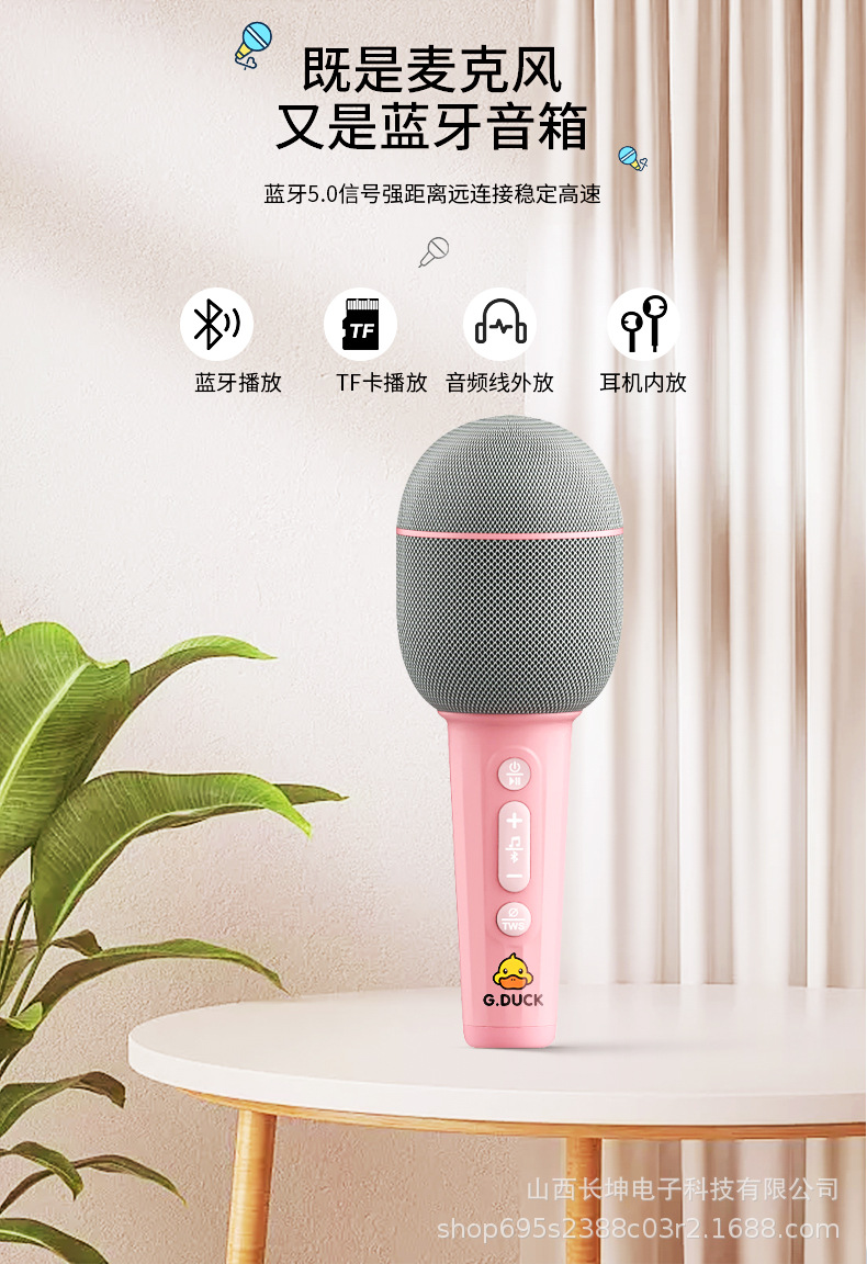 작은 노란색 오리 마이크 오디오 통합 블루투스 TV 휴대 전화 홈 노래방 무선 마이크 홈 어린이 마이크