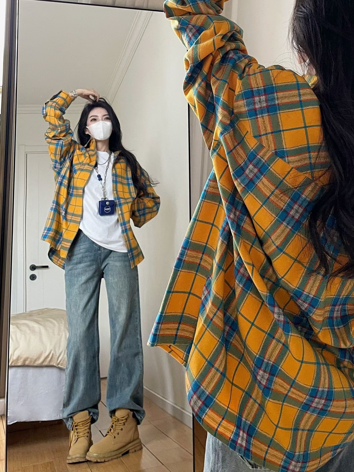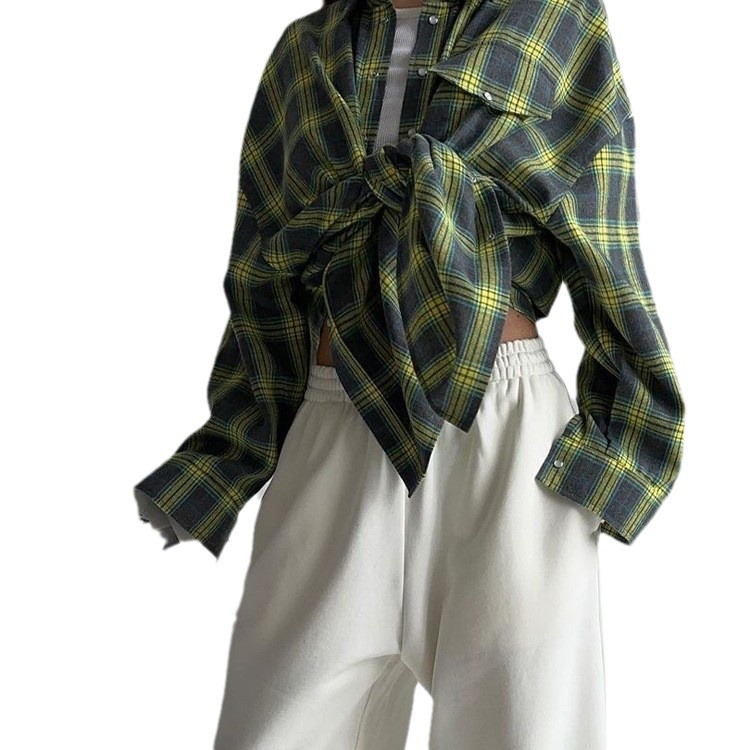 2024 봄과 가을 아마존 오존 크로스 보더 레트로 스타일 올 매치 루즈 셔츠 * 패션 올 매치 체크 무늬 셔츠 여성스토어 가기