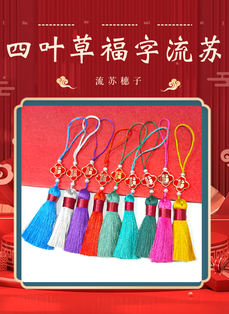 5cm 네잎 클로버 fuzi tassel 폴리 에스테르 얇은 실 골동품 사초 베개 테이블 플래그 걸이 귀 자동차 교수형 액세서리스토어 가기