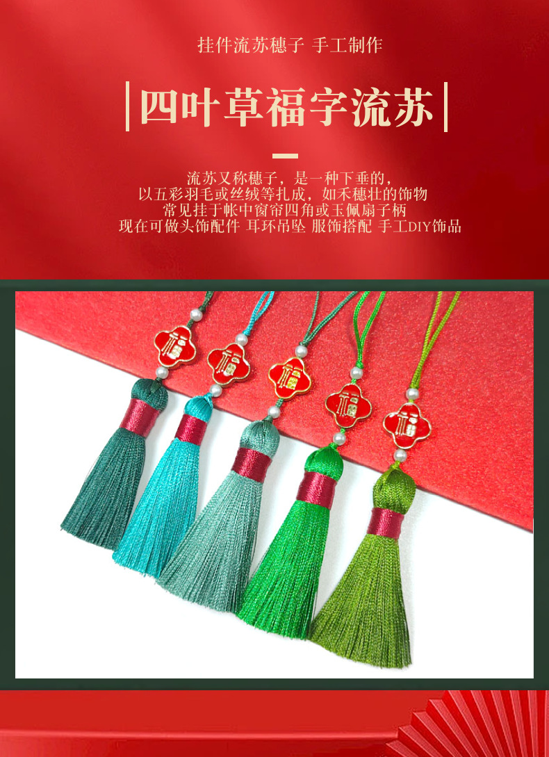 5cm 네잎 클로버 fuzi tassel 폴리 에스테르 얇은 실 골동품 사초 베개 테이블 플래그 걸이 귀 자동차 교수형 액세서리