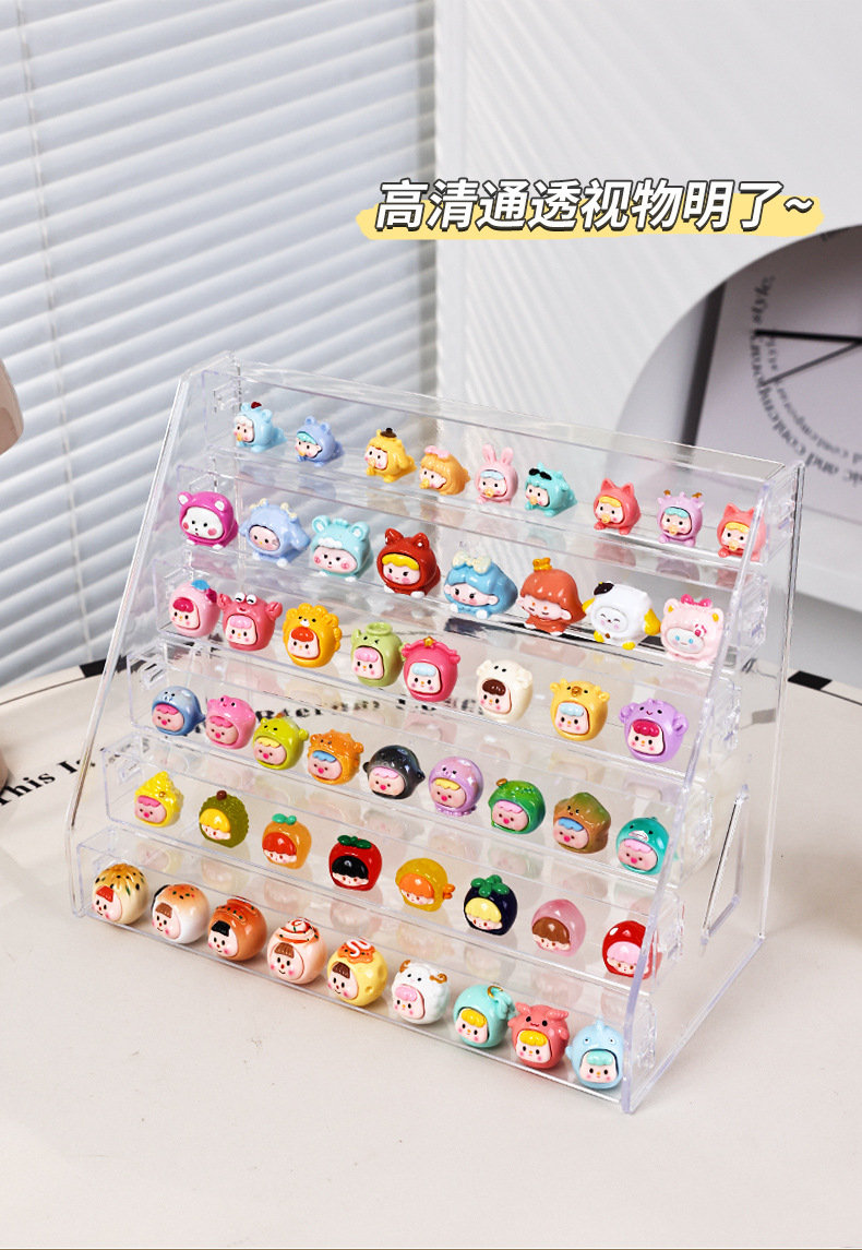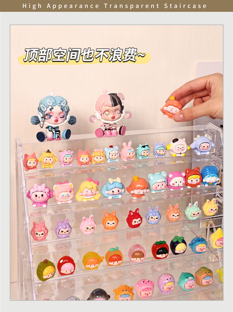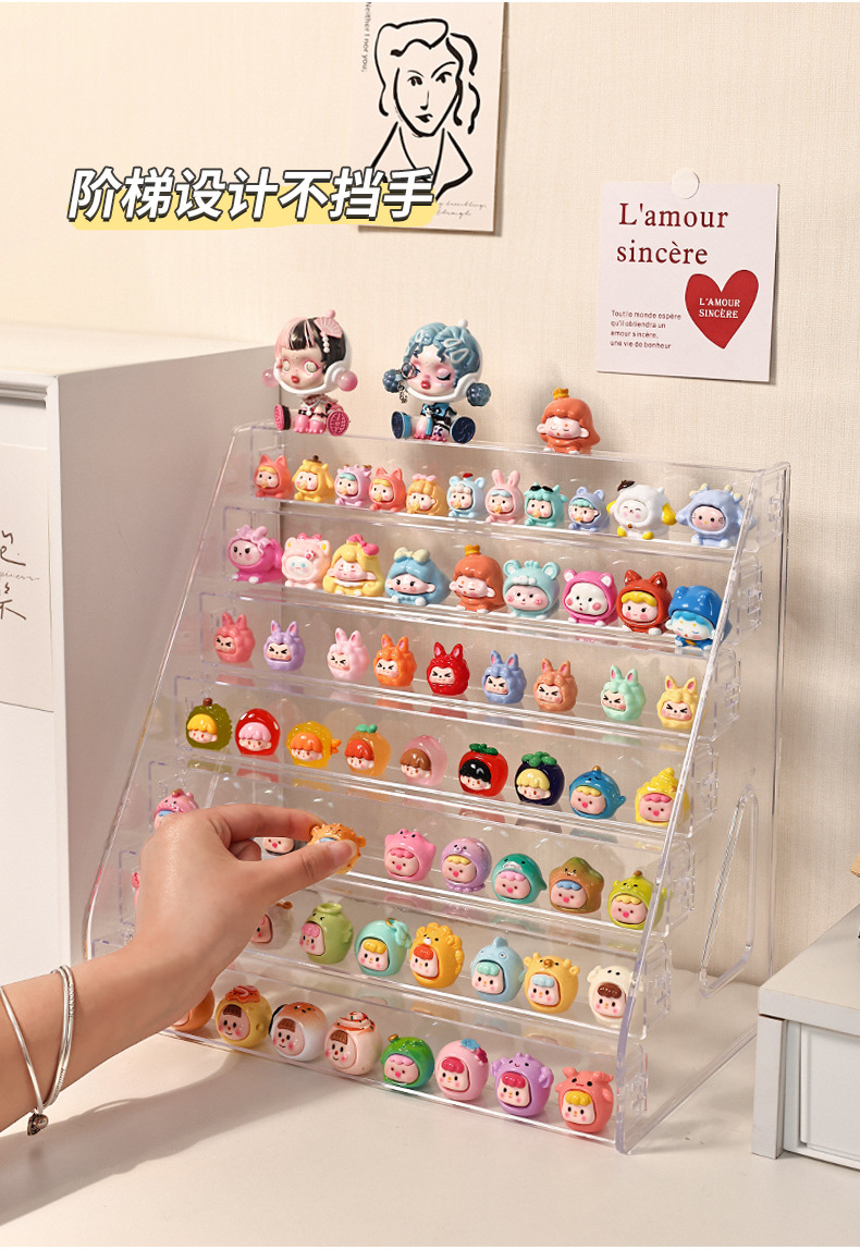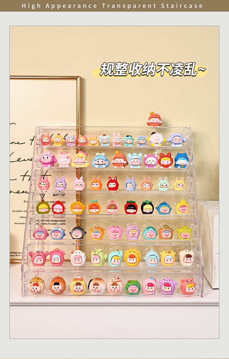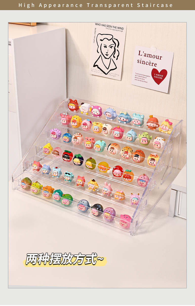 귀여운 곡물 디스플레이 랙 블라인드 박스 블라인드 백 스토리지 랙 투명 사다리 랙 멀티 레이어 제품 디스플레이 선반 아크릴