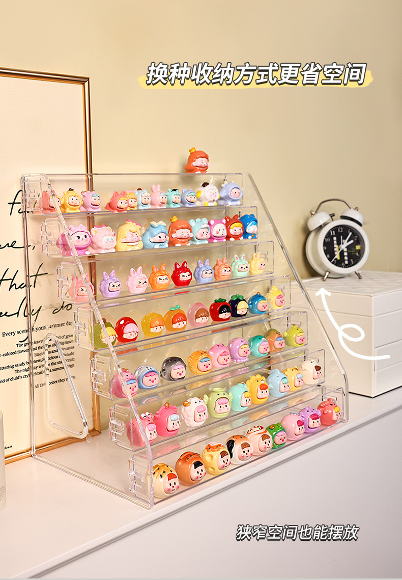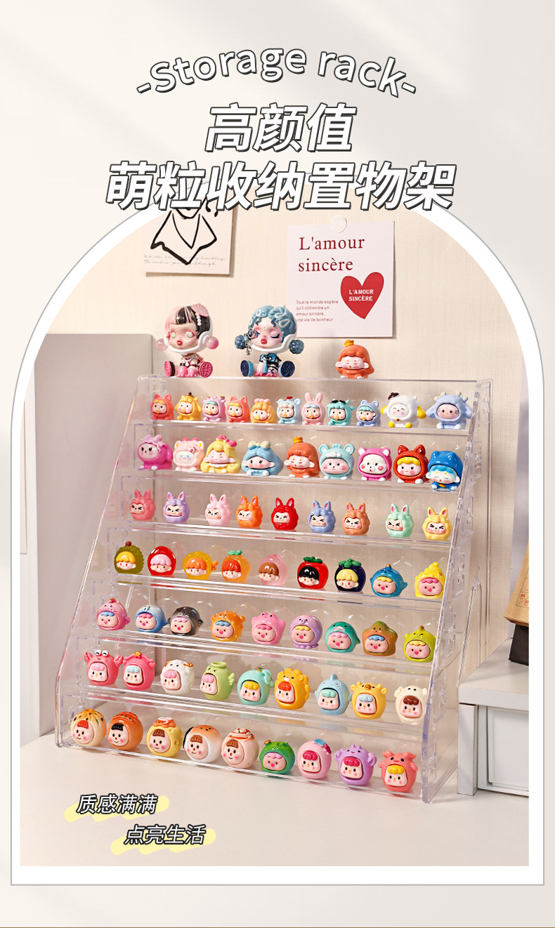 귀여운 곡물 디스플레이 랙 블라인드 박스 블라인드 백 스토리지 랙 투명 사다리 랙 멀티 레이어 제품 디스플레이 선반 아크릴스토어 가기