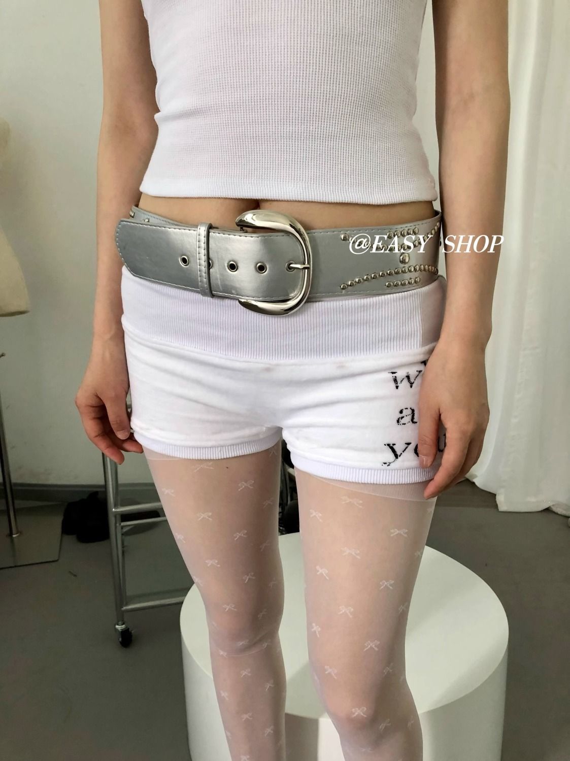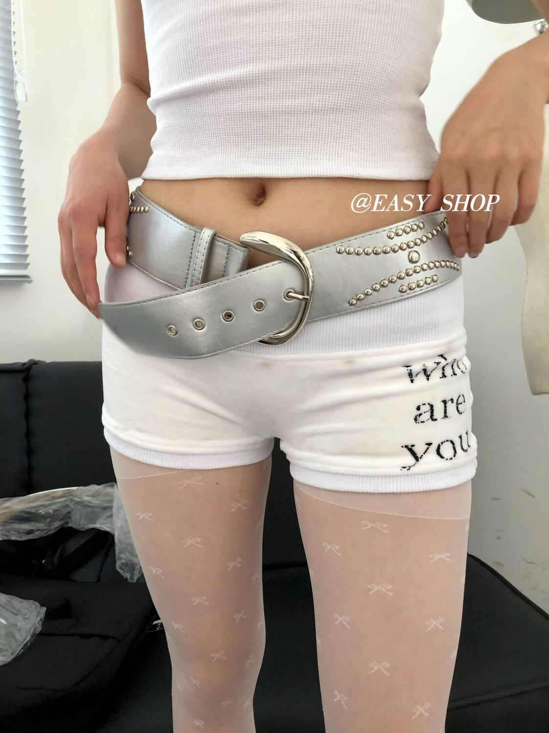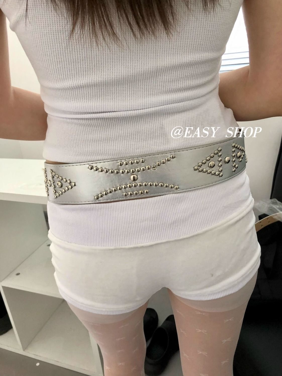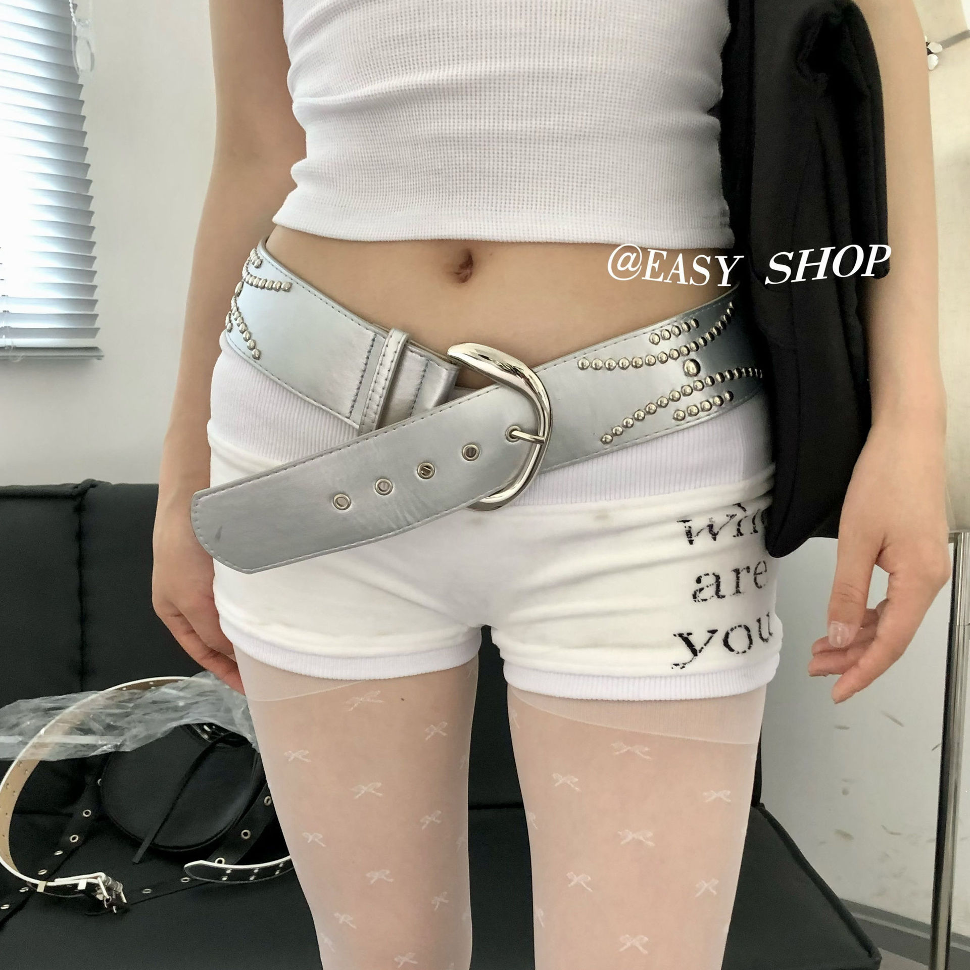 유럽과 미국의 복고풍 맞춤형 스파이스 소녀 실버 와이드 벨트 Y2K 리벳 가죽 펑크 스타일 트러스트 벨트 허리 커버스토어 가기