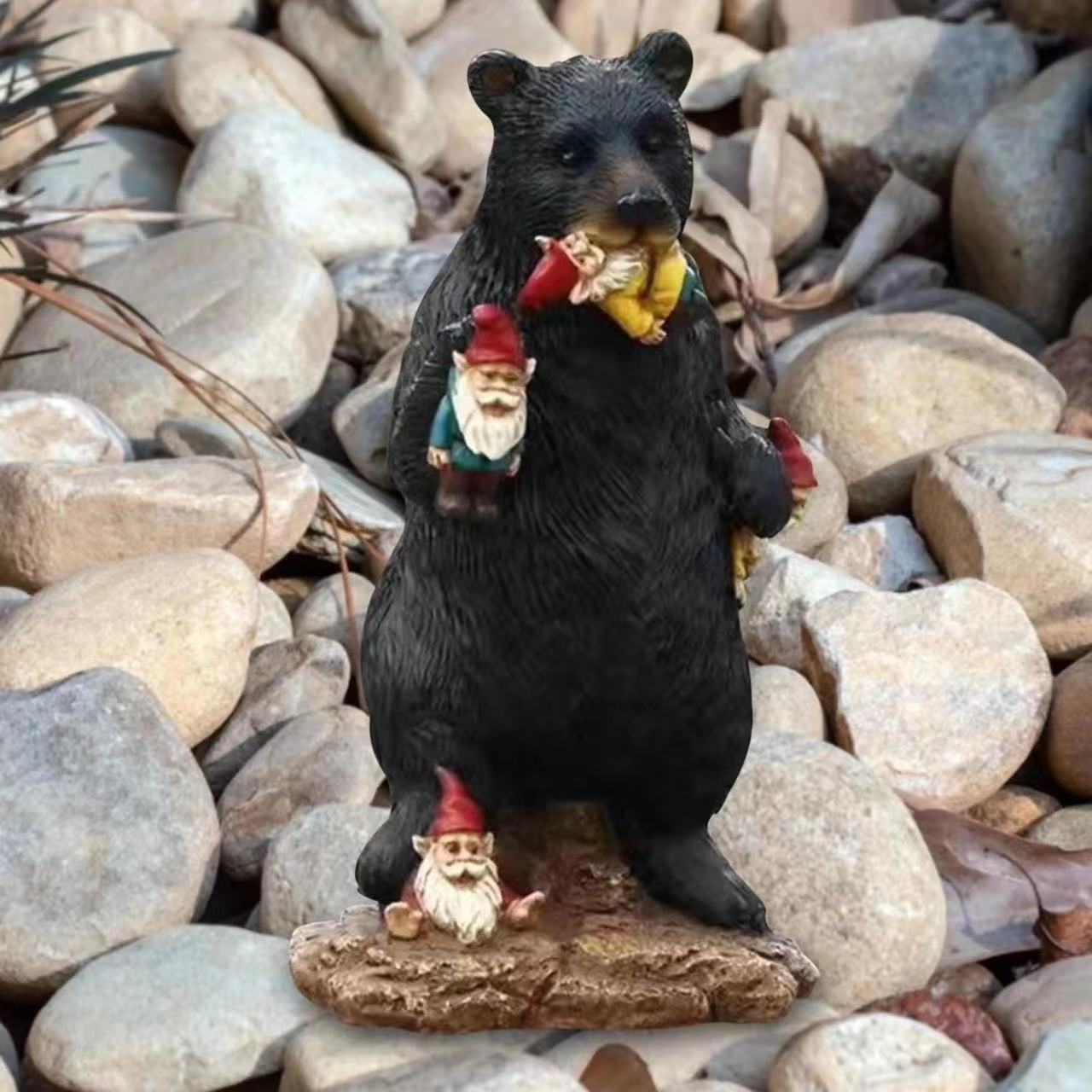 국경 간 핫 블랙 베어 드워프 노인 수지 장식품 정원 장식 조각 홈 입구 발코니 공예