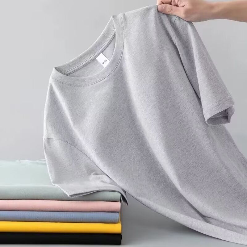 남성용 통기성 아이스 실크 반팔 티셔츠, 심플한 무지 티셔츠, 남녀공용 라운드넥 캐주얼 베이직 티셔츠, 루즈핏 캐주얼스토어 가기