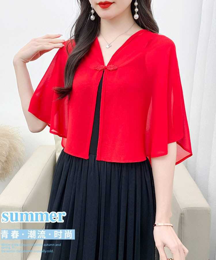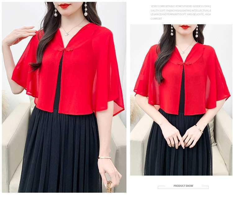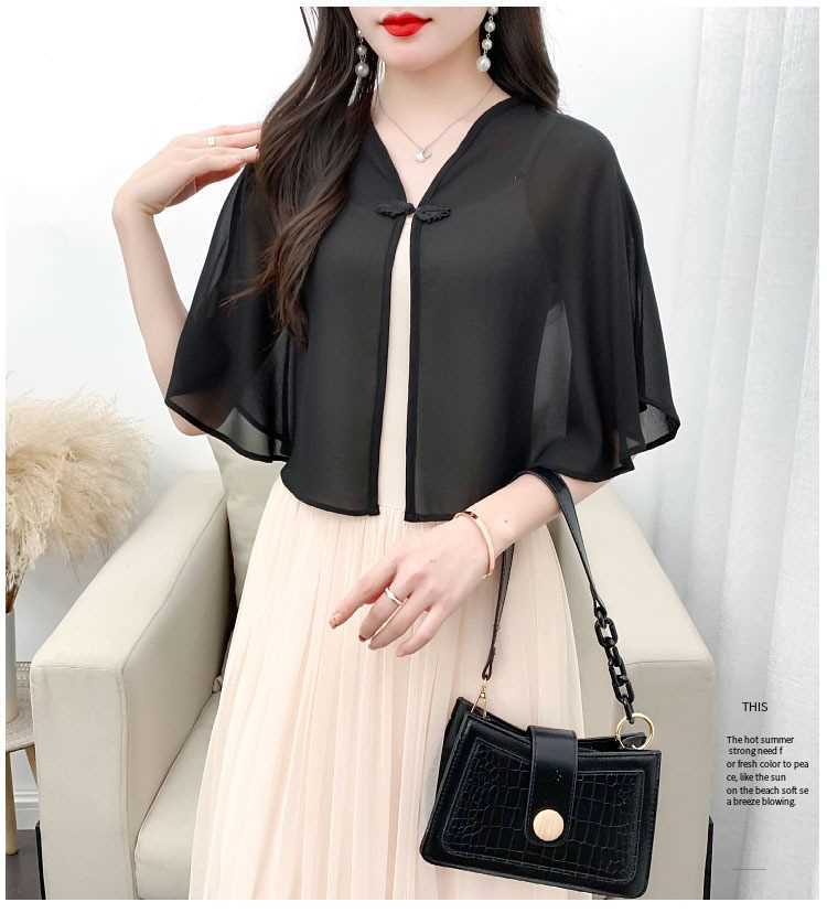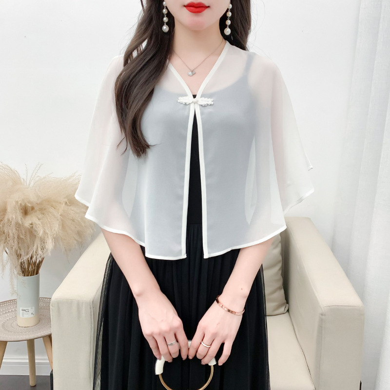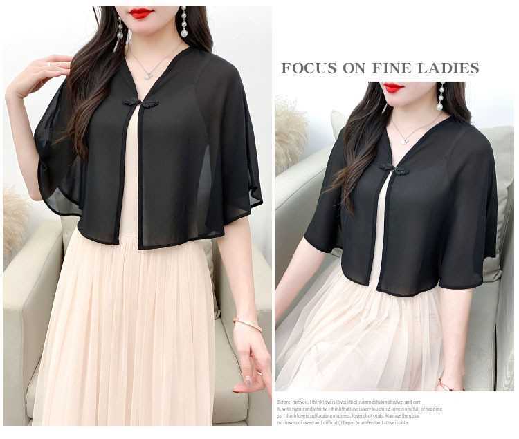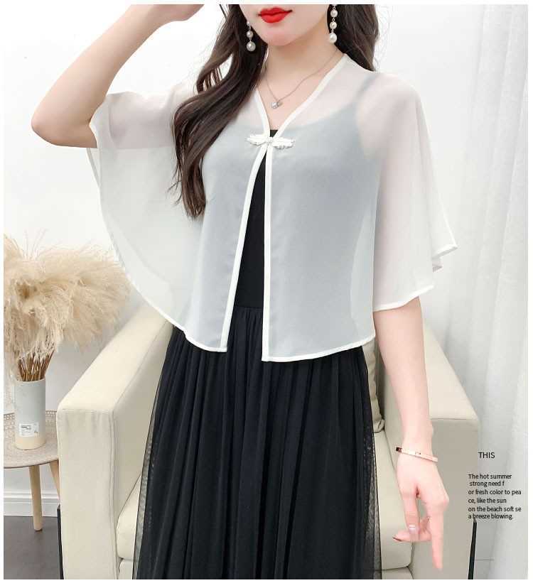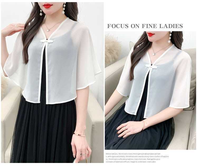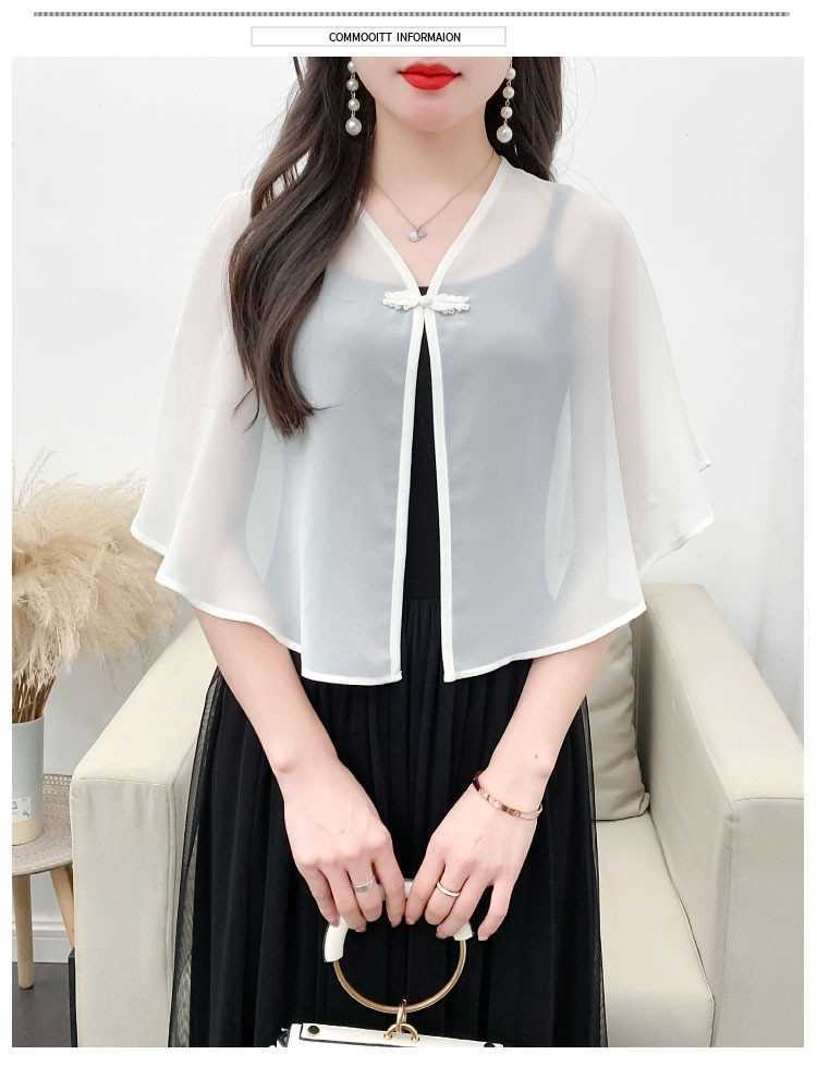 케이프 목도리 여성 통통 자매 여름 쉬폰 얇은 느슨한 탑 스커트 태양 보호 셔츠 짧은 올 매치 외부 매칭스토어 가기