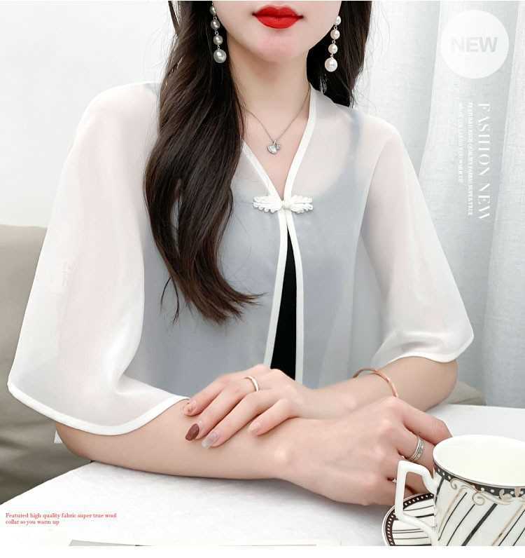 케이프 목도리 여성 통통 자매 여름 쉬폰 얇은 느슨한 탑 스커트 태양 보호 셔츠 짧은 올 매치 외부 매칭