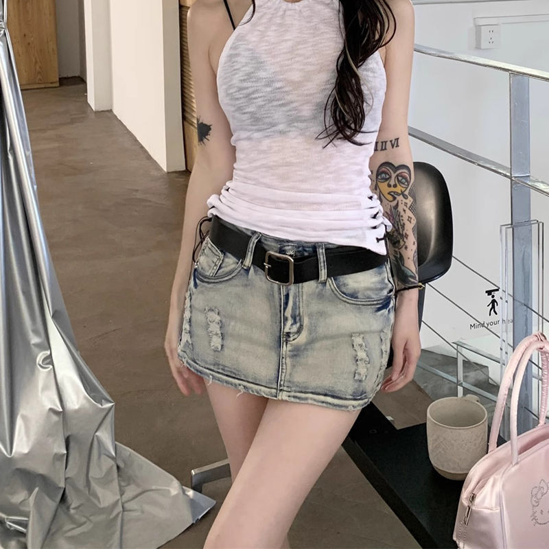 빈티지 스파이스 소녀 데님 스커트 여자 여름 2024 새로운 높은 허리 틈새 슬리밍 올 매치 A 라인 하프 힙합 스커트