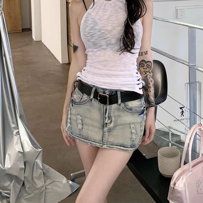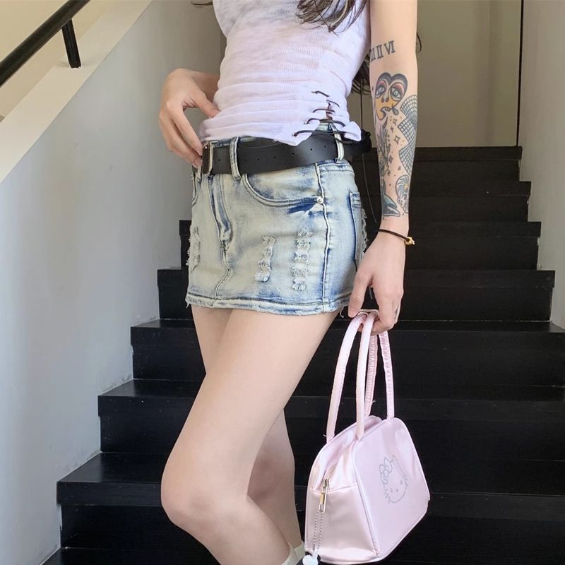 빈티지 스파이스 소녀 데님 스커트 여자 여름 2024 새로운 높은 허리 틈새 슬리밍 올 매치 A 라인 하프 힙합 스커트스토어 가기
