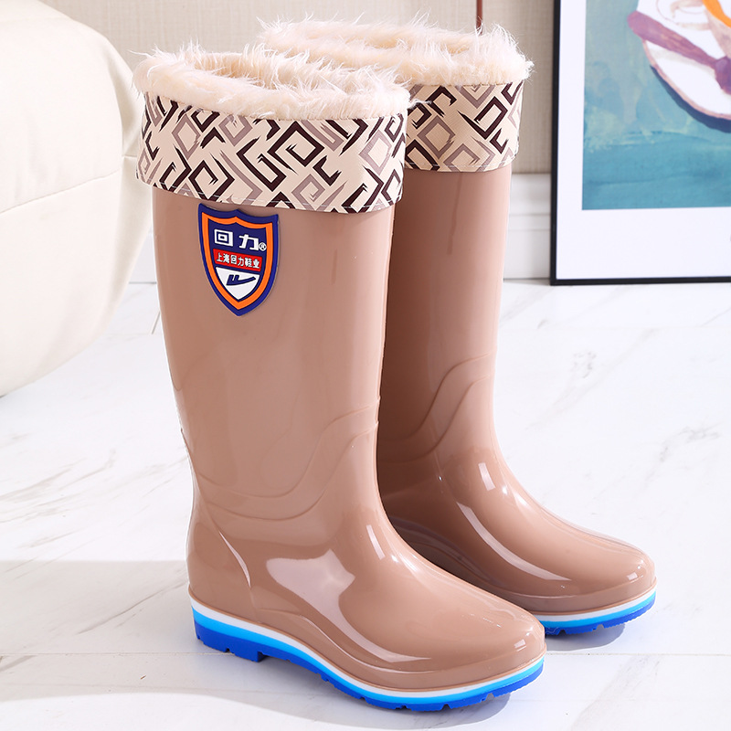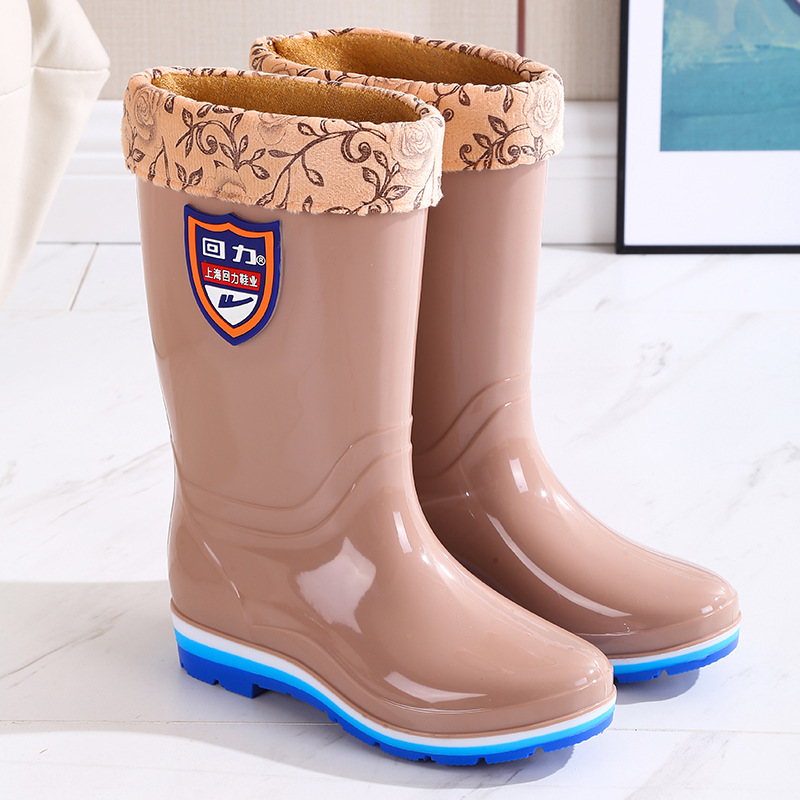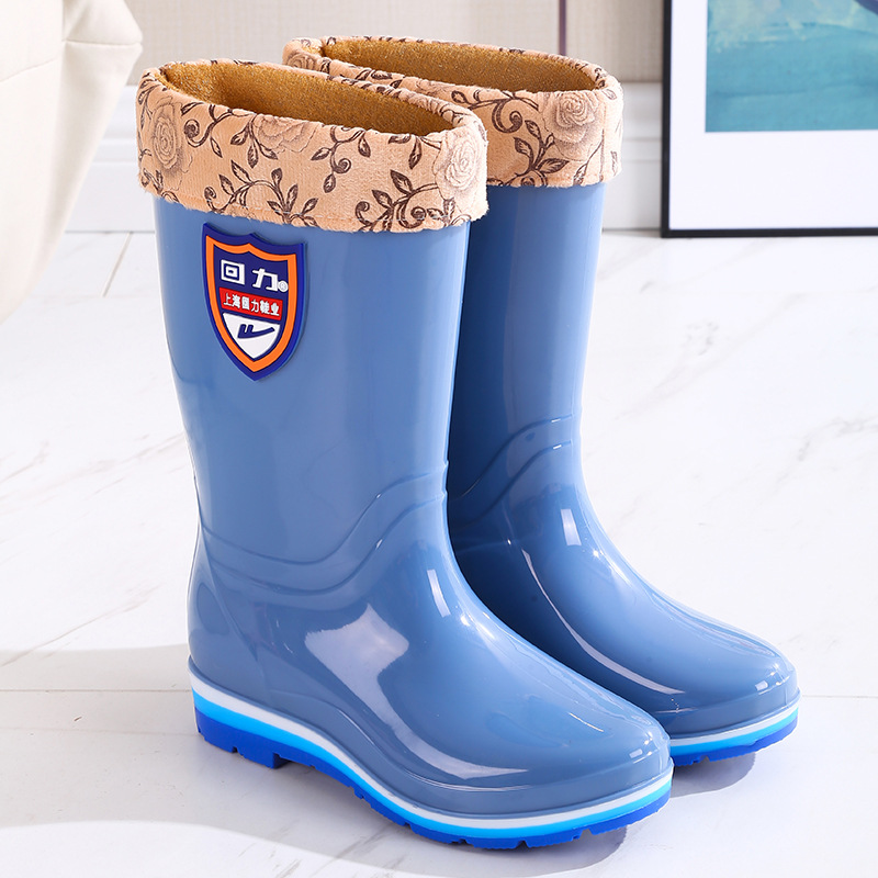 Huili 703 높은 배럴 세척 가능한 여성 성인 중간 배럴 비 신발 미끄럼 방지 방수 외부 착용 긴 배럴 물 부츠 주방 고무 신발스토어 가기