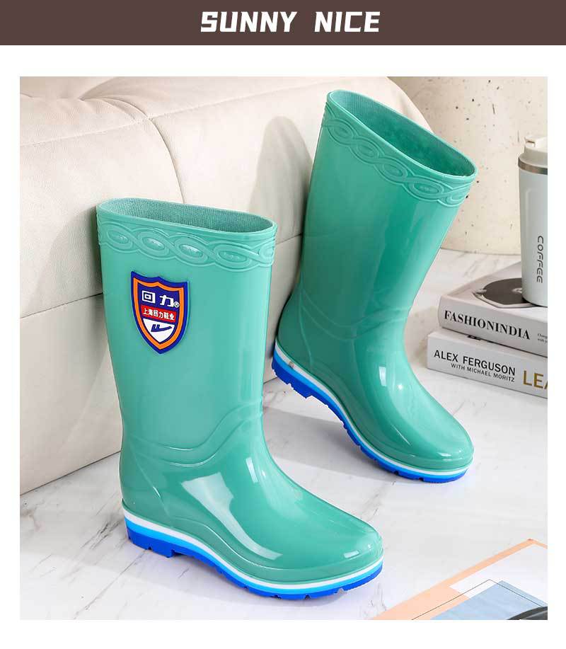 Huili 703 높은 배럴 세척 가능한 여성 성인 중간 배럴 비 신발 미끄럼 방지 방수 외부 착용 긴 배럴 물 부츠 주방 고무 신발