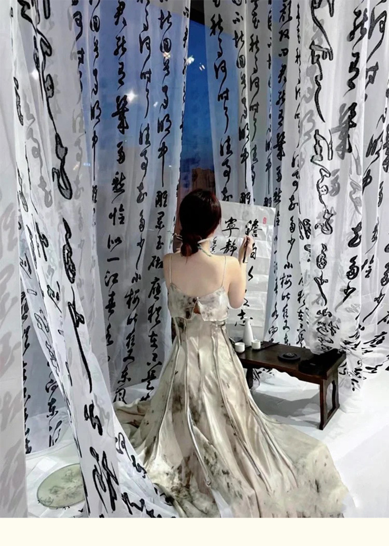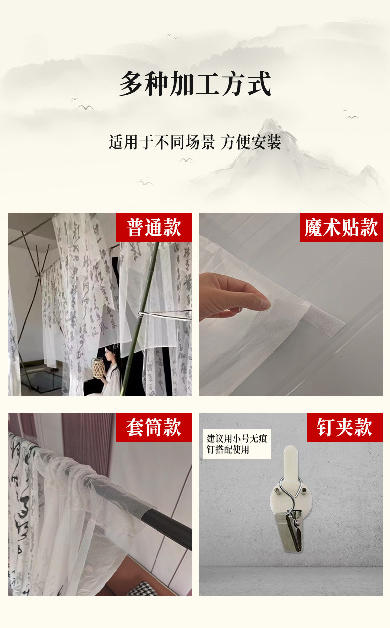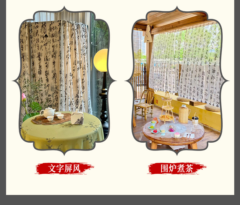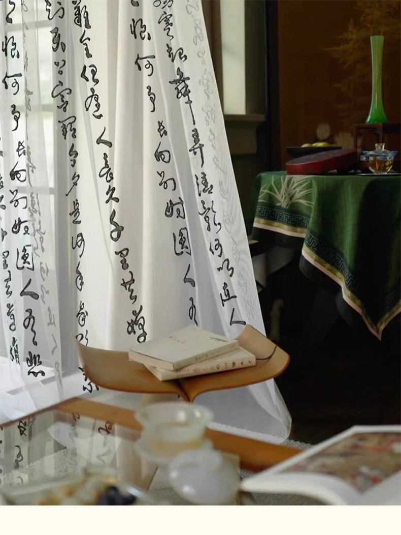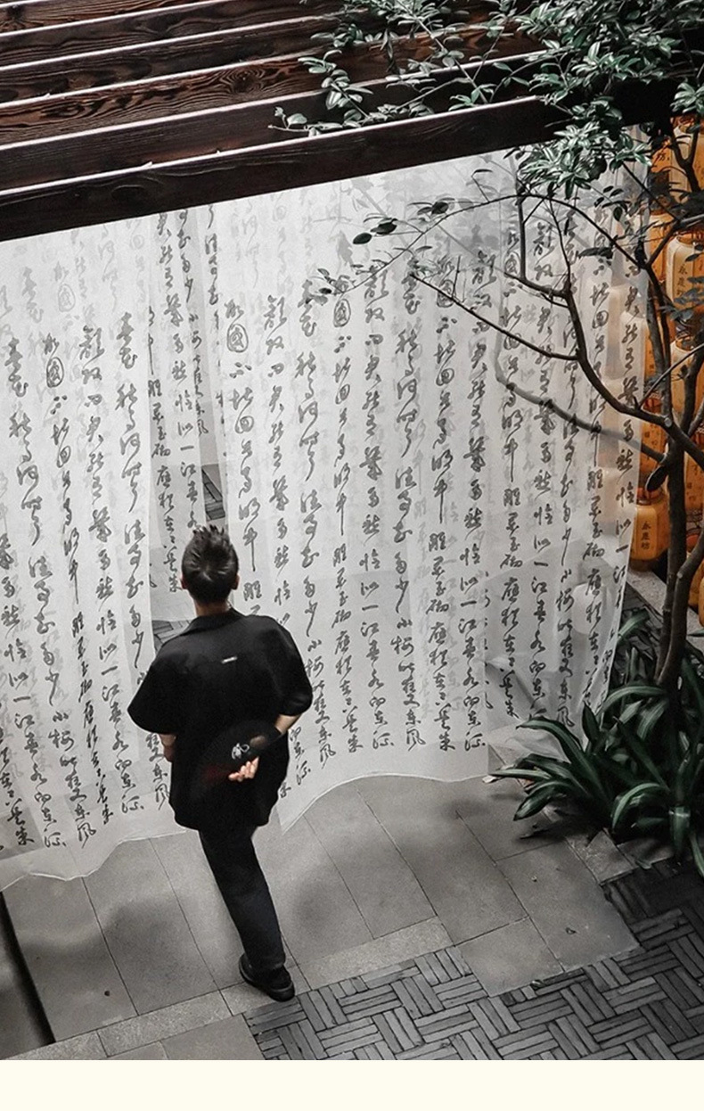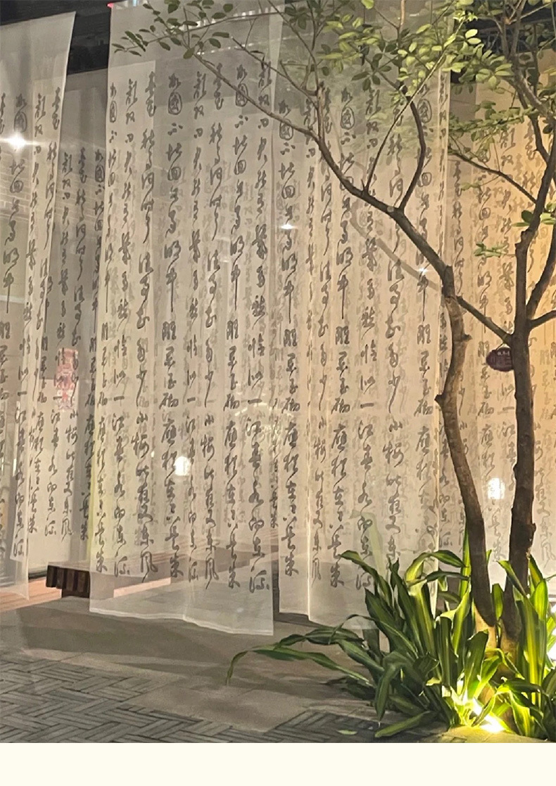 중국 스타일 텍스트 서예 거즈 커튼 고대 의상 사진 사진 배경 커튼 연구실 야외 거즈 커튼 검은 글자 창 거즈 커튼