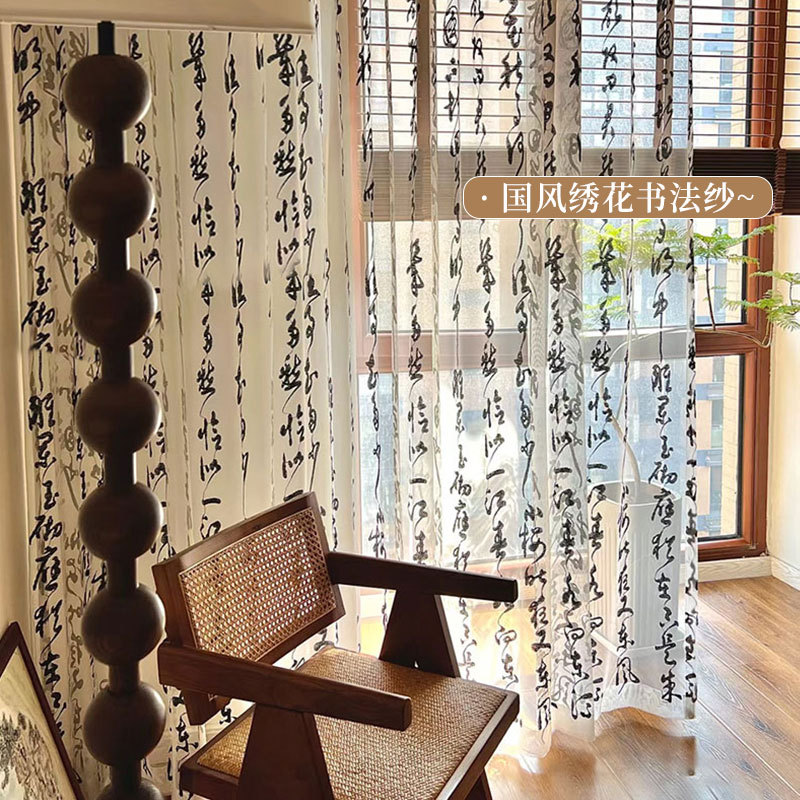중국 스타일 텍스트 서예 거즈 커튼 고대 의상 사진 사진 배경 커튼 연구실 야외 거즈 커튼 검은 글자 창 거즈 커튼스토어 가기
