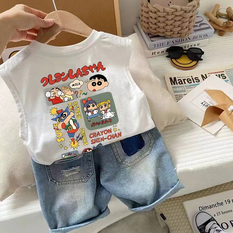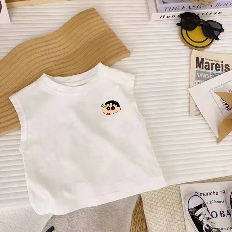 아동복 면화 소년 조끼 여름 새로운 2024 민소매 여름 인쇄 아기 탑스토어 가기