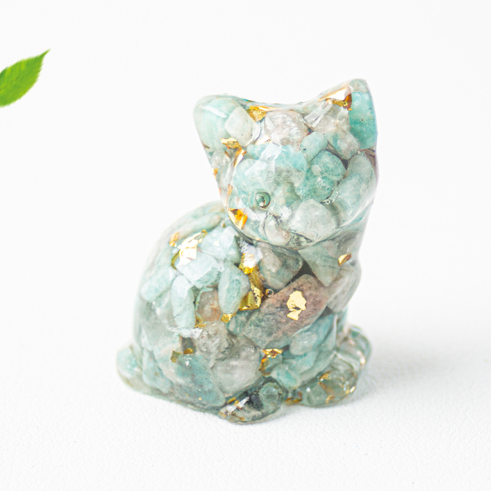 국경 간 천연 크리스탈 자갈 접착제 드롭 앉아 자세 턴 얼굴 귀여운 고양이 사무실 홈 데스크탑 장식 장식품스토어 가기