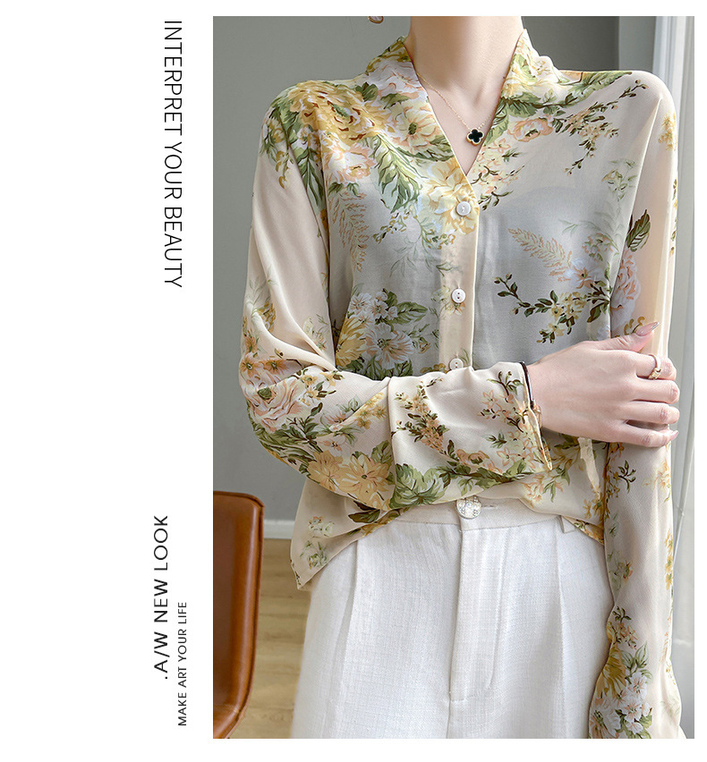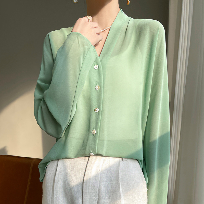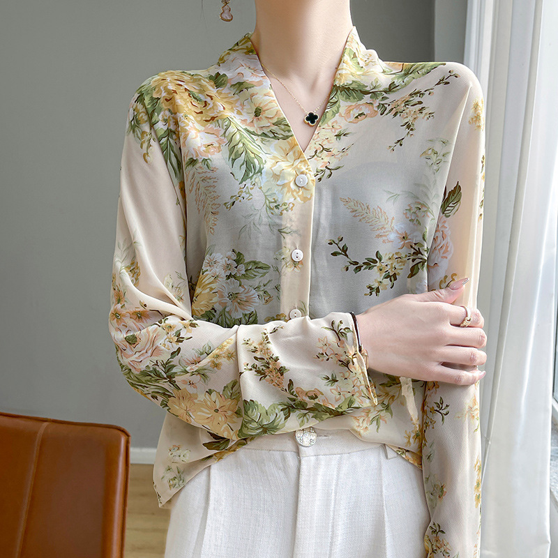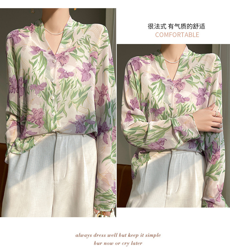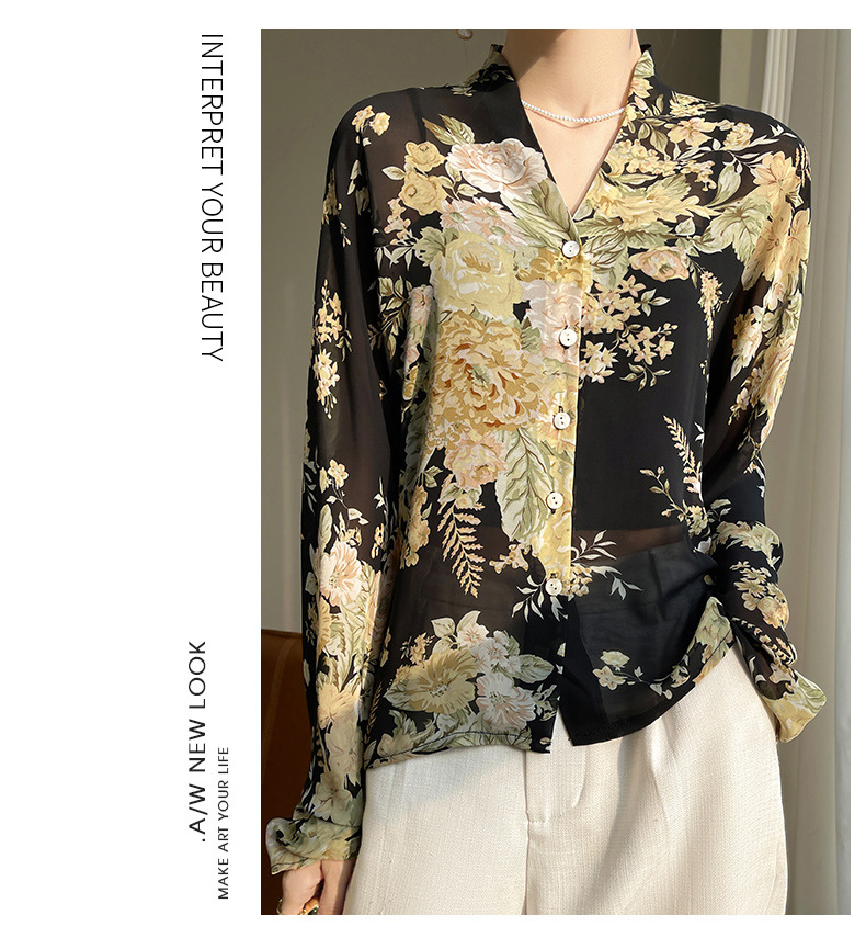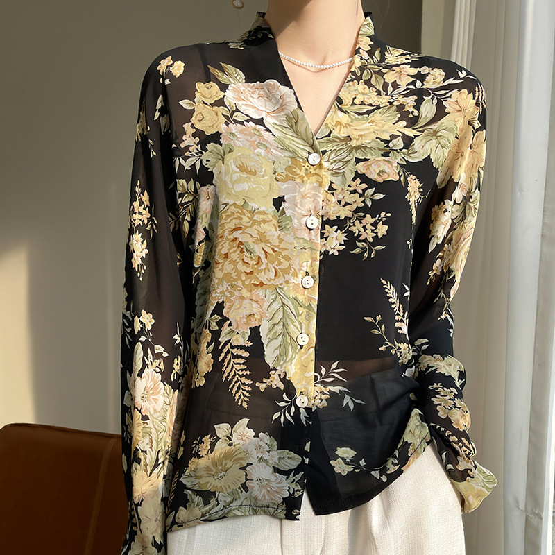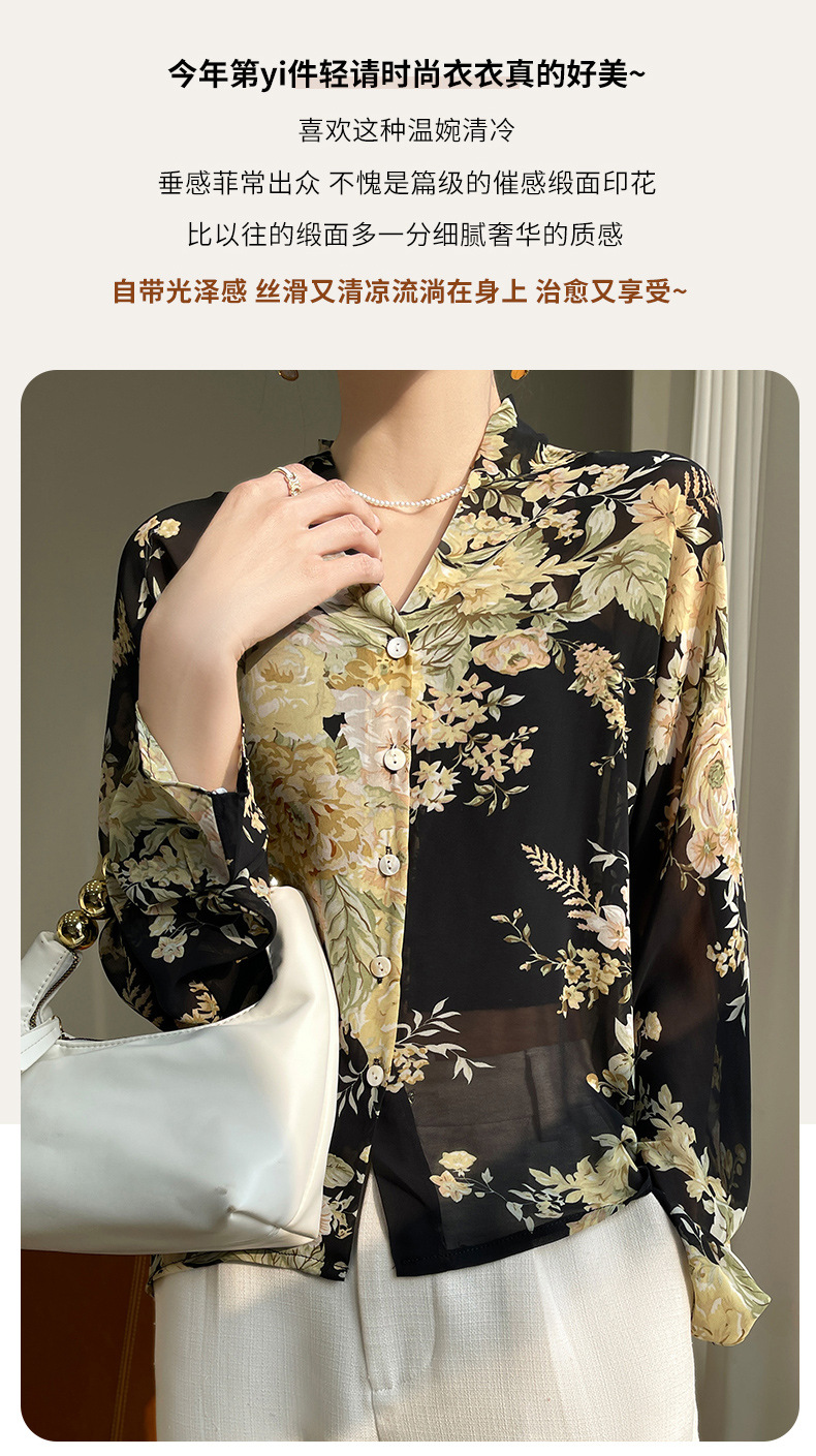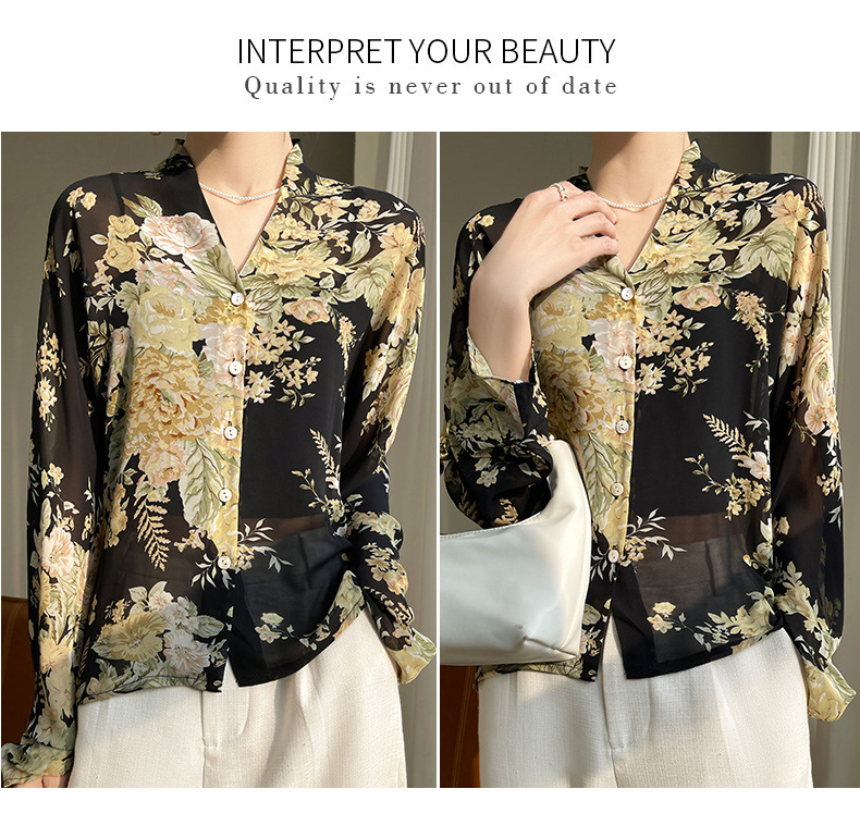 꽃무늬 조젯셔츠 여성용 얇은 긴팔 자외선 차단 가디건 여성용 실크 탑 여름 셔츠 자외선 차단 통기성