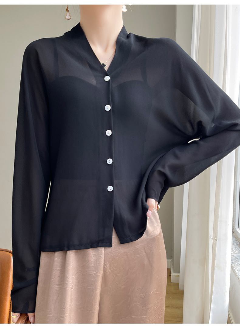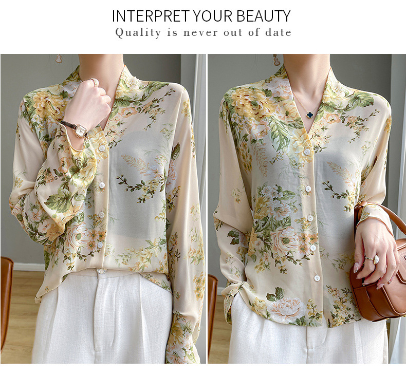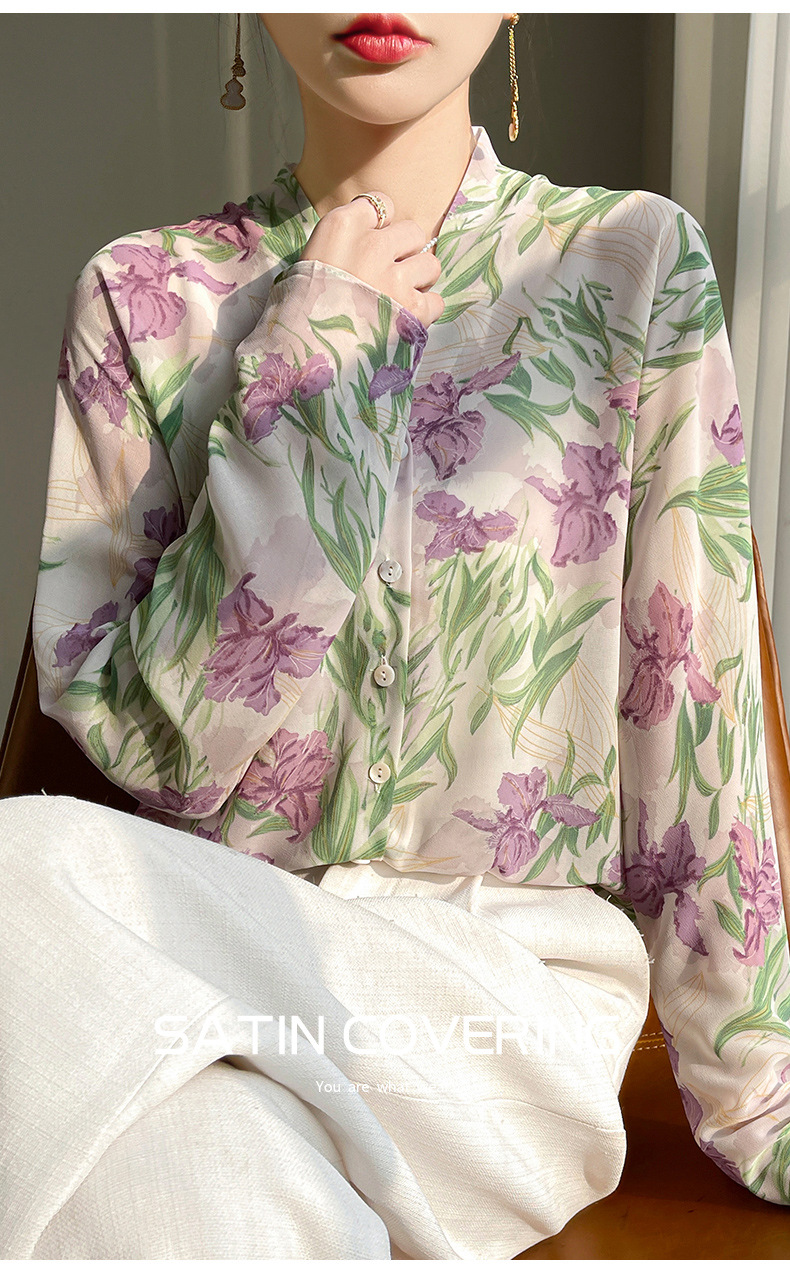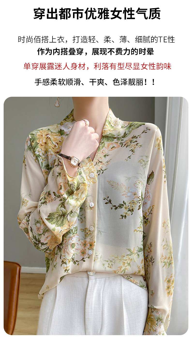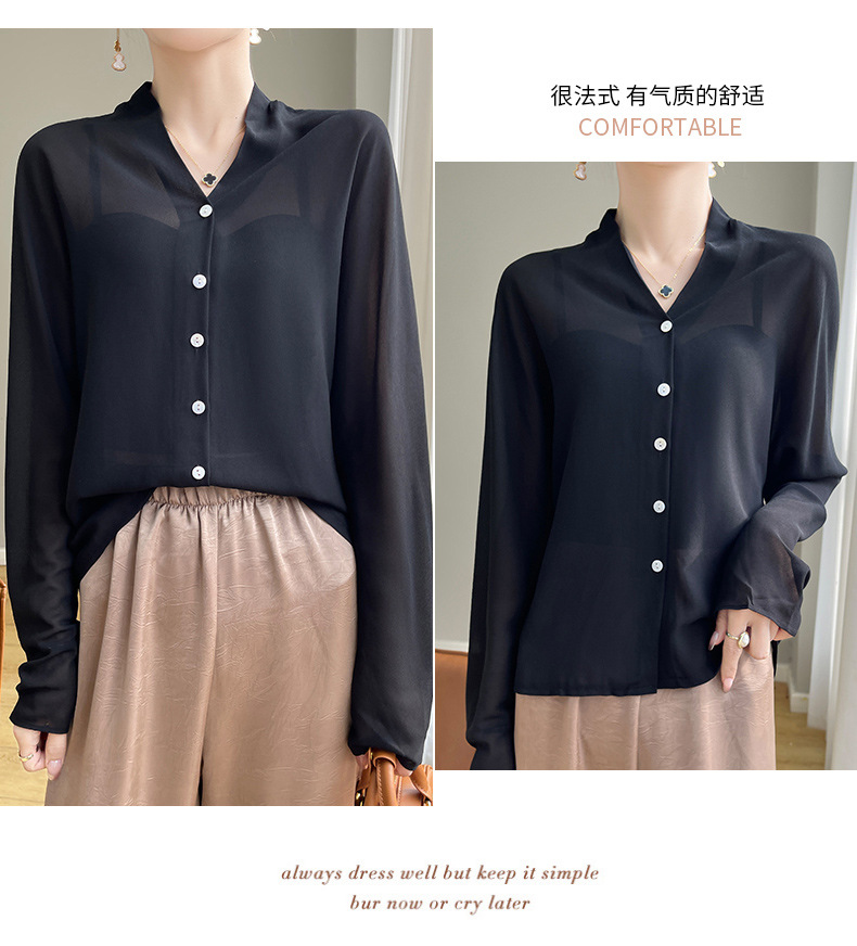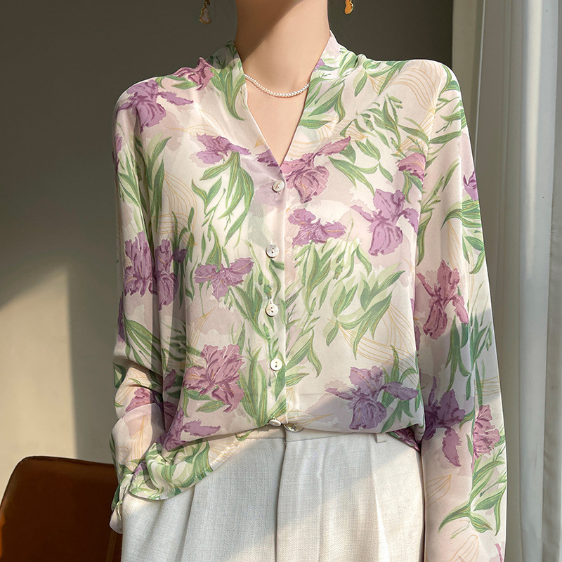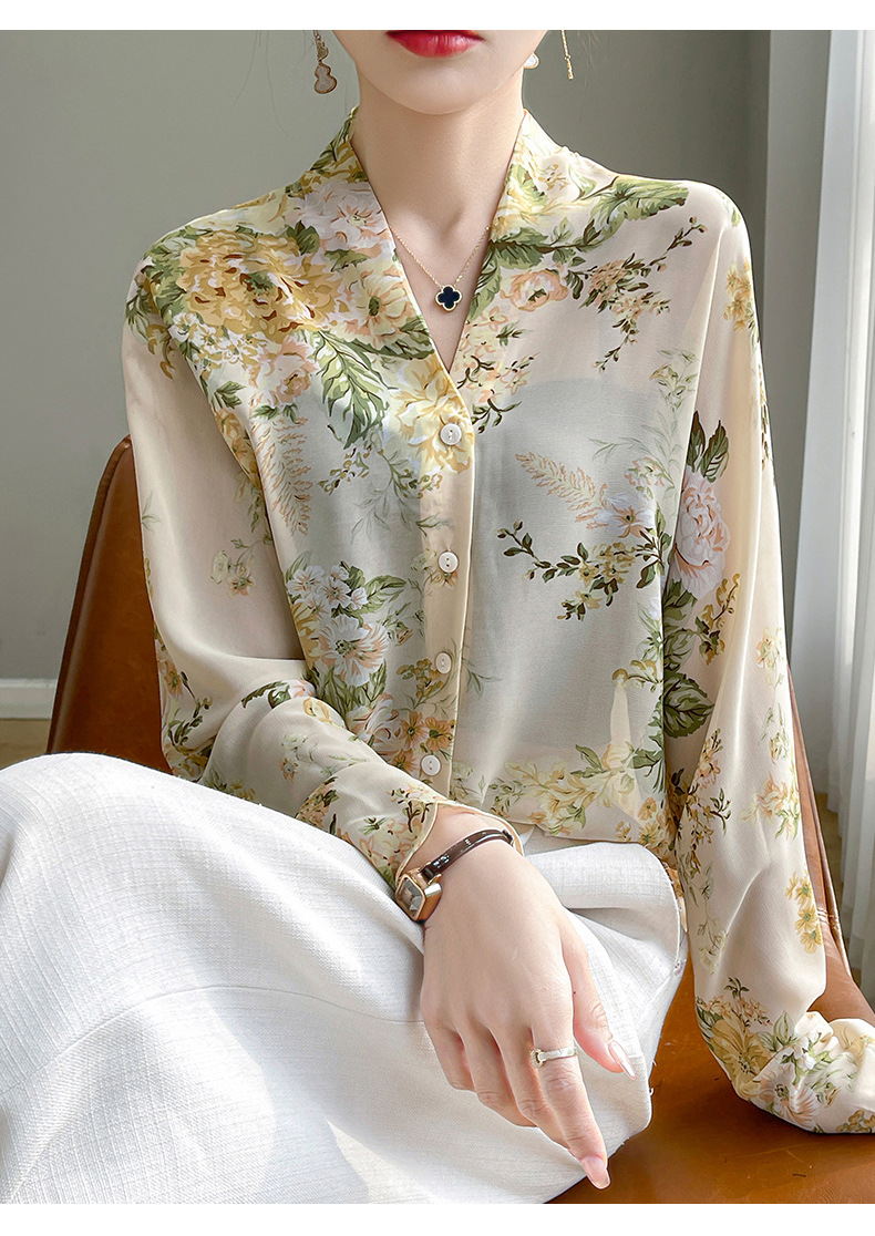 꽃무늬 조젯셔츠 여성용 얇은 긴팔 자외선 차단 가디건 여성용 실크 탑 여름 셔츠 자외선 차단 통기성