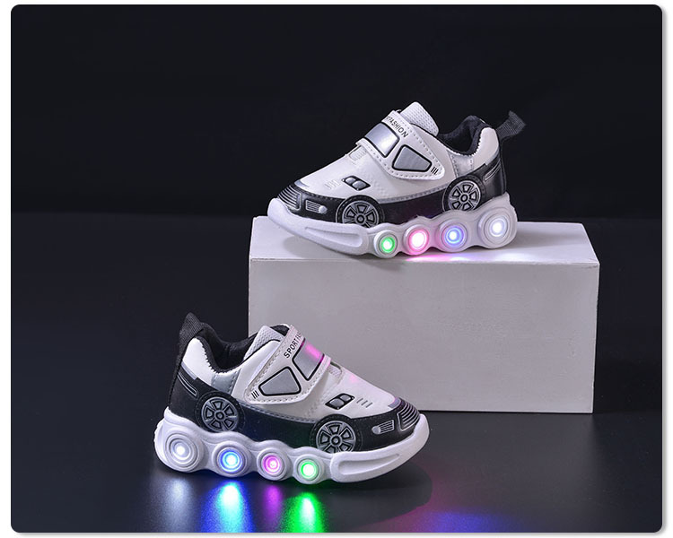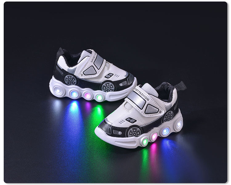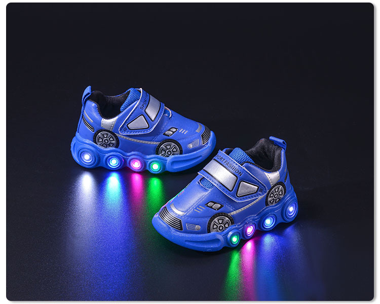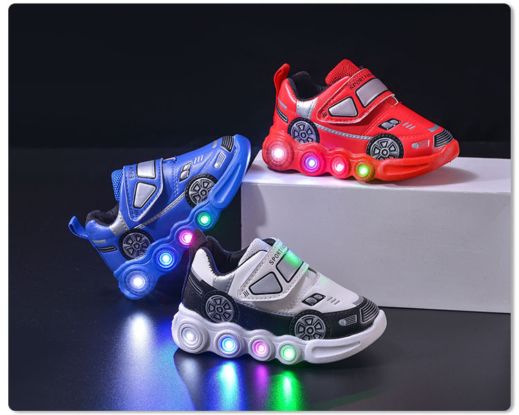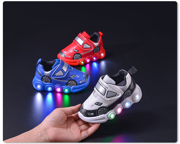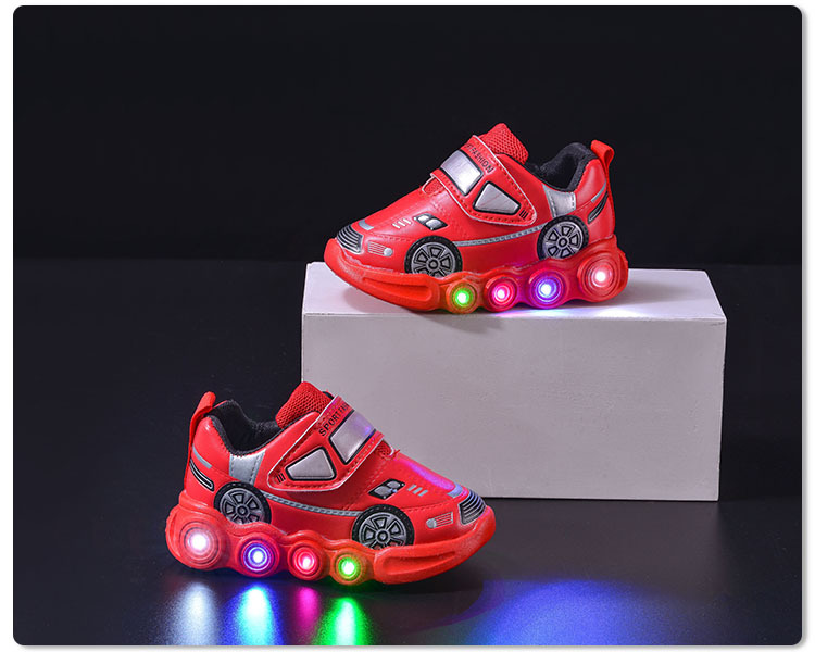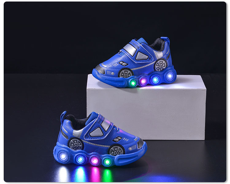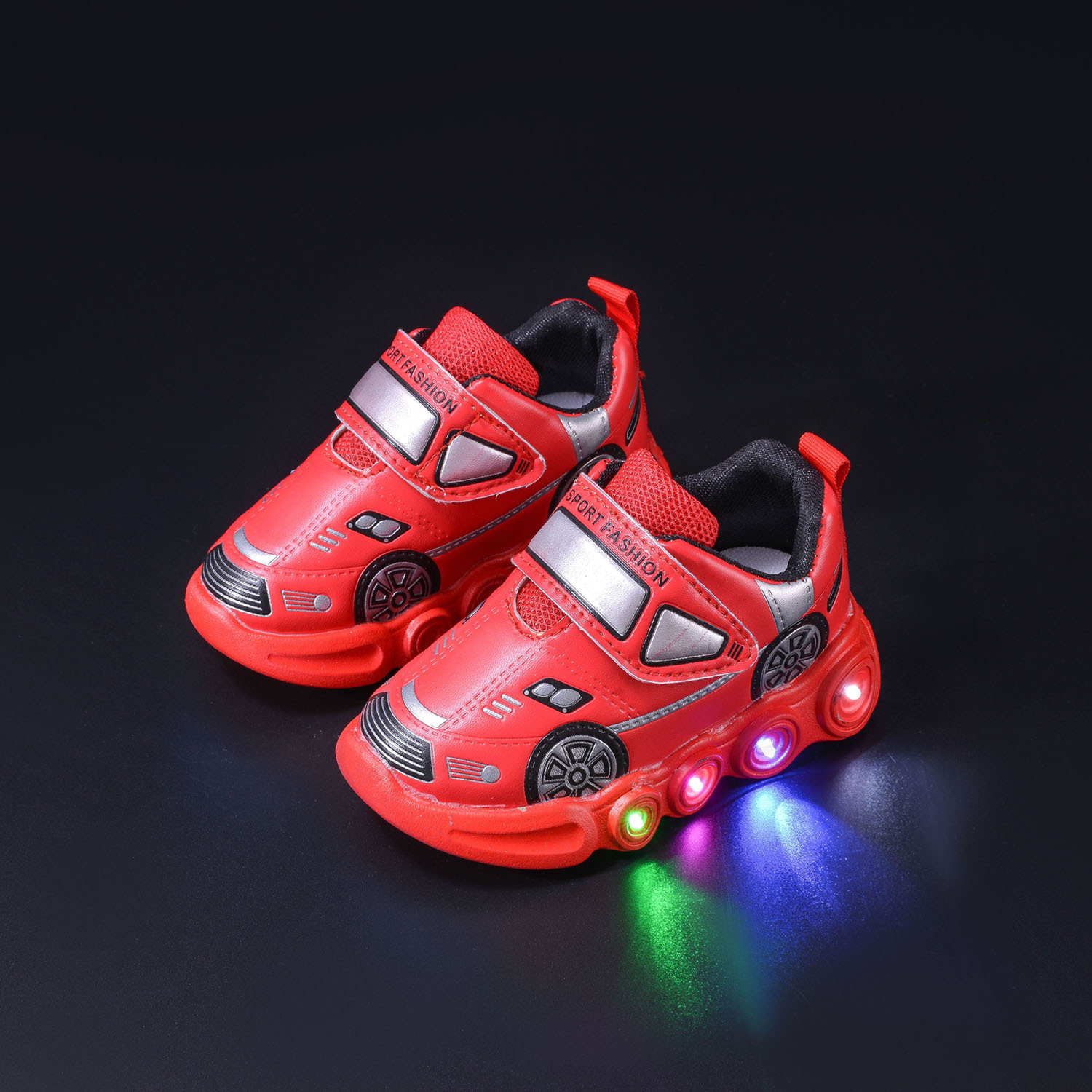 대외 무역 밝은 빛 신발 소년 봄과 여름 새로운 만화 자동차 소년 소녀 운동화 벨크로 유도 램프 신발 조수스토어 가기