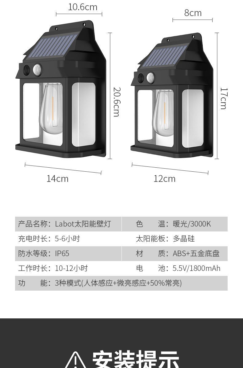 • 태양 유도 복고풍 벽 램프 플러스 사이즈 블랙 프레임