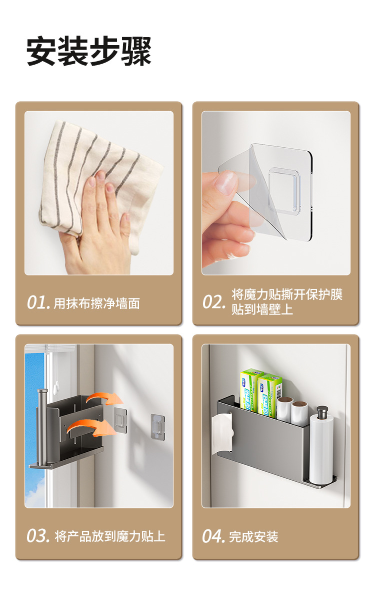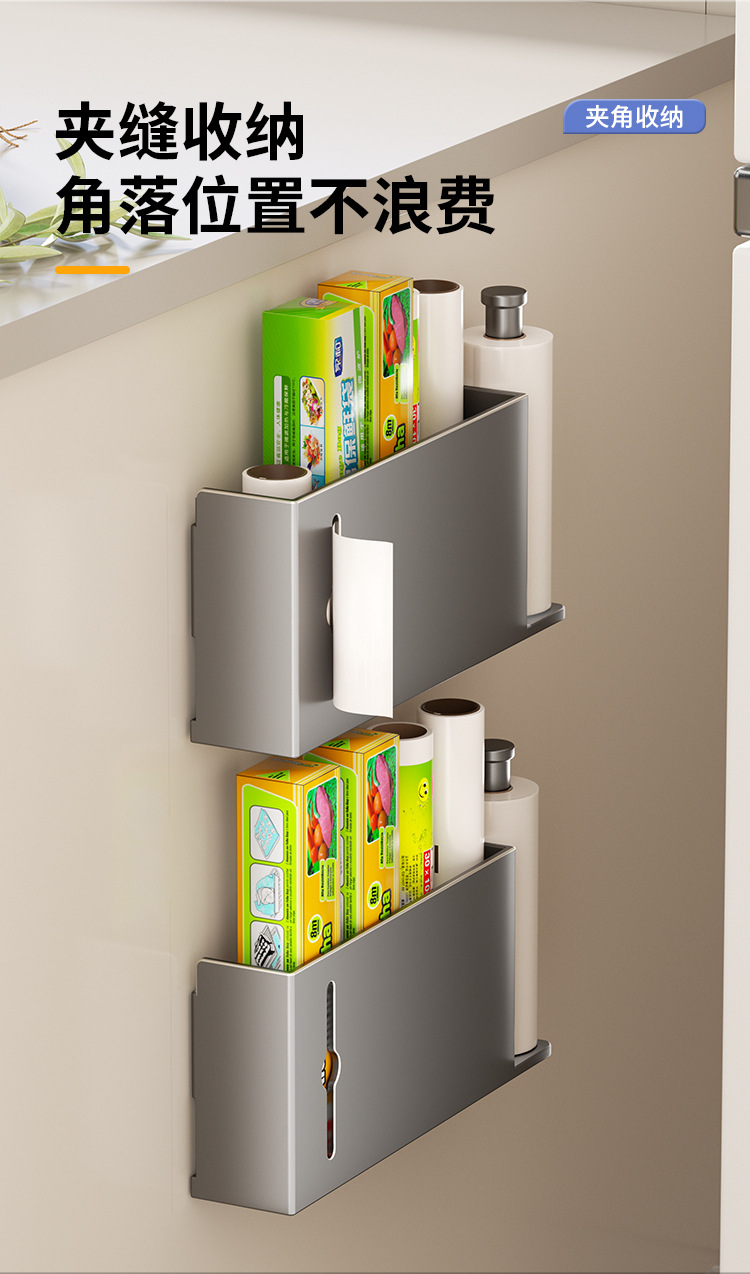주방 Fidelier 캐비닛 도어 스토리지 박스 벽에 매달려 펀치없는 캐비닛 플라스틱 보존 필름 교수형 랙 오일 흡수 종이 냉장고 보관 랙
