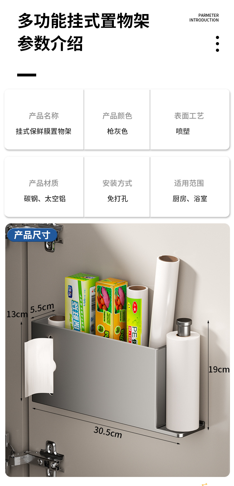 • 건그레이 미니멀리스트 플라스틱 랩 롤 홀더(구멍을 뚫을 필요 없음)