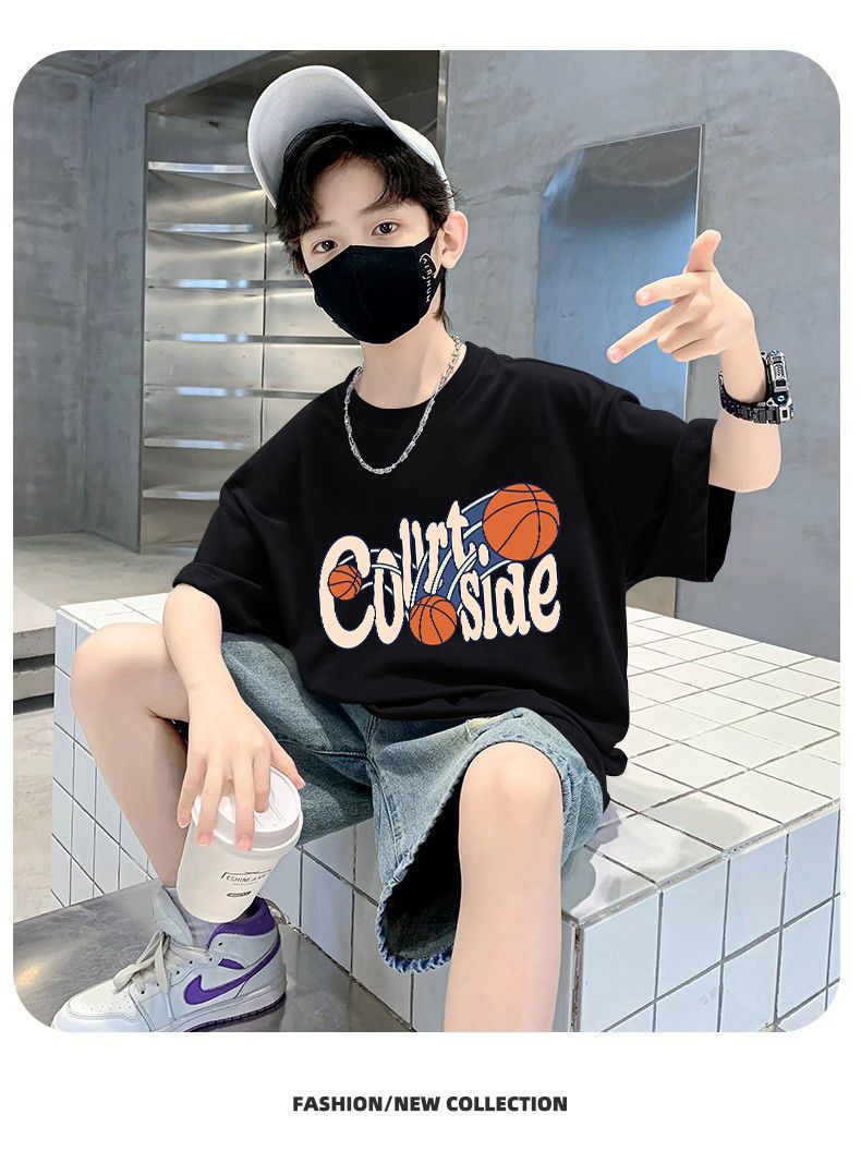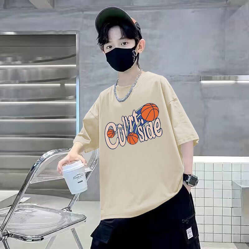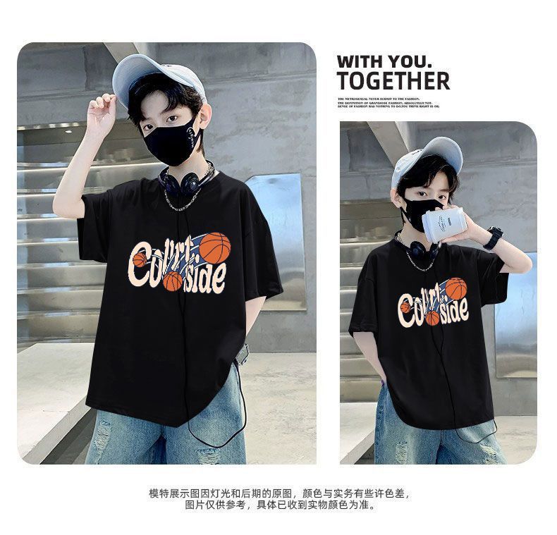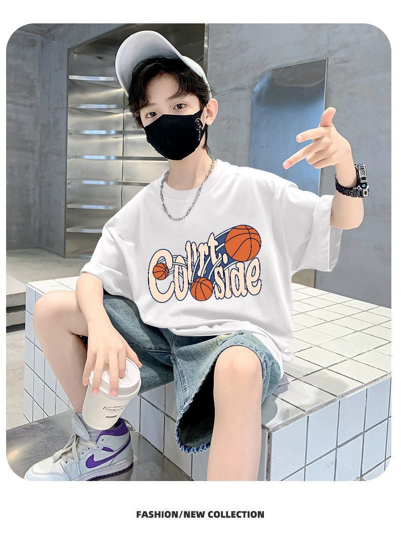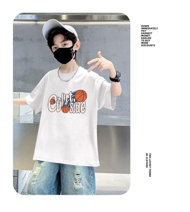남학생 반소매 코튼 티셔츠 여름 새 느슨한 손짓 땀 흡수성 통기성 만화 중대형 어린이 반소매 어린이 트렌디스토어 가기