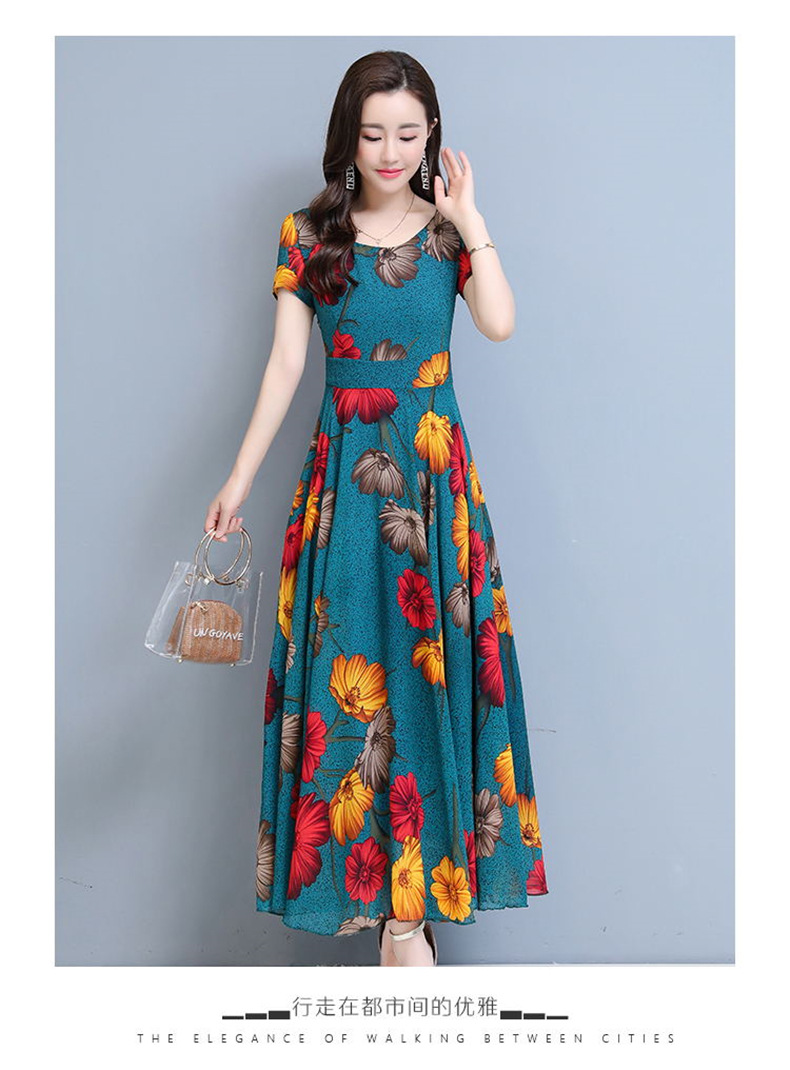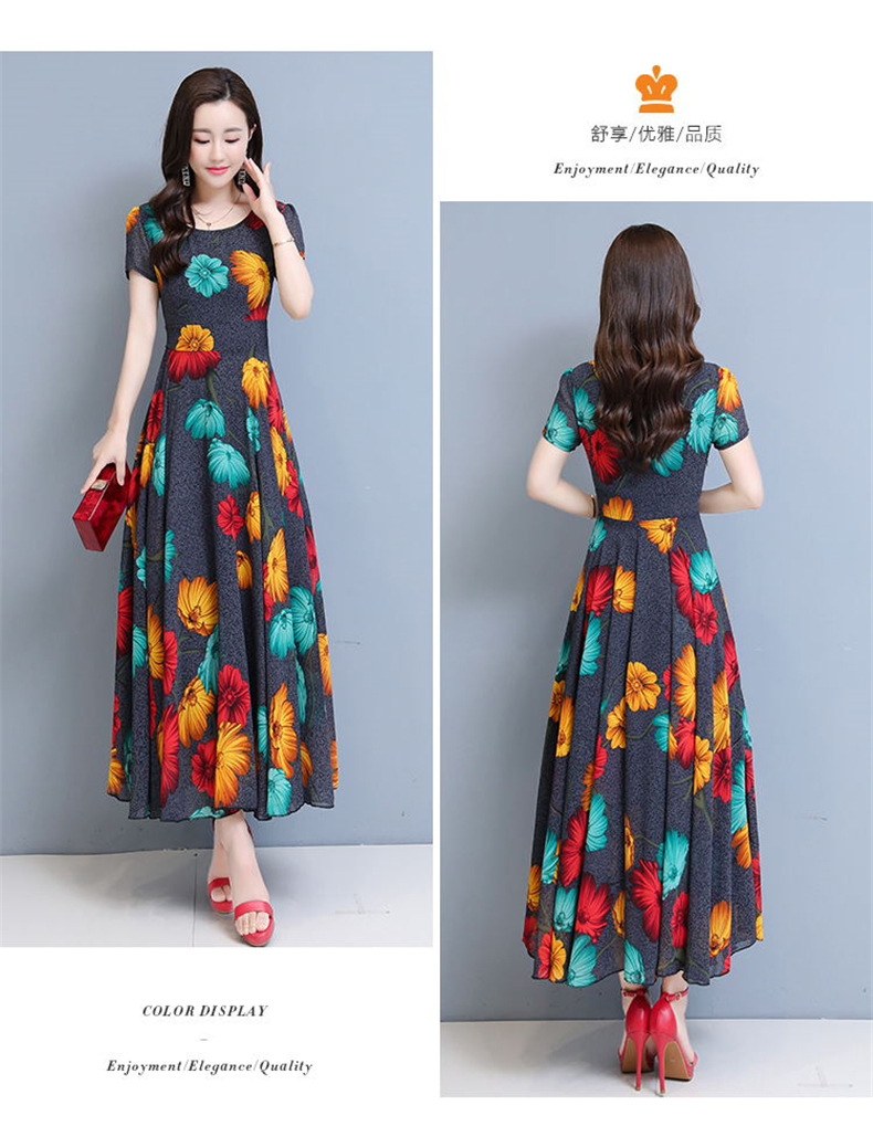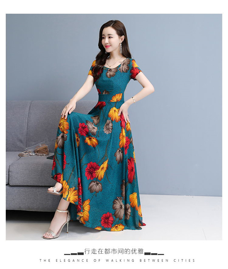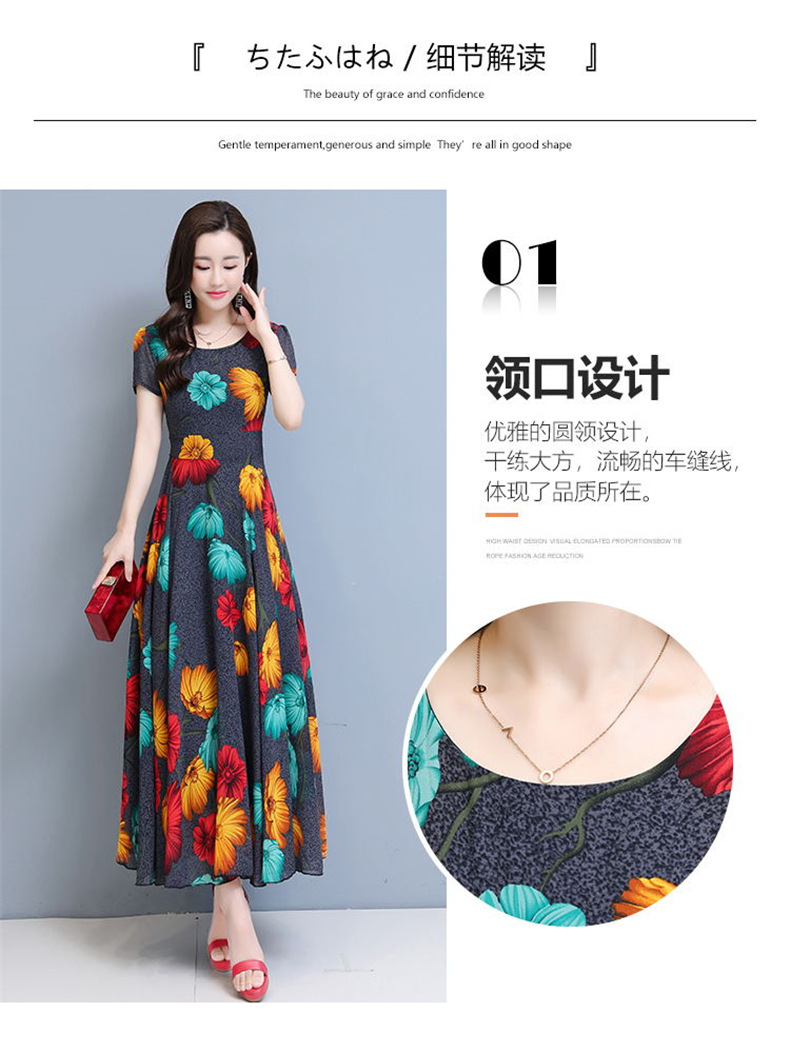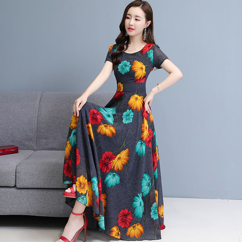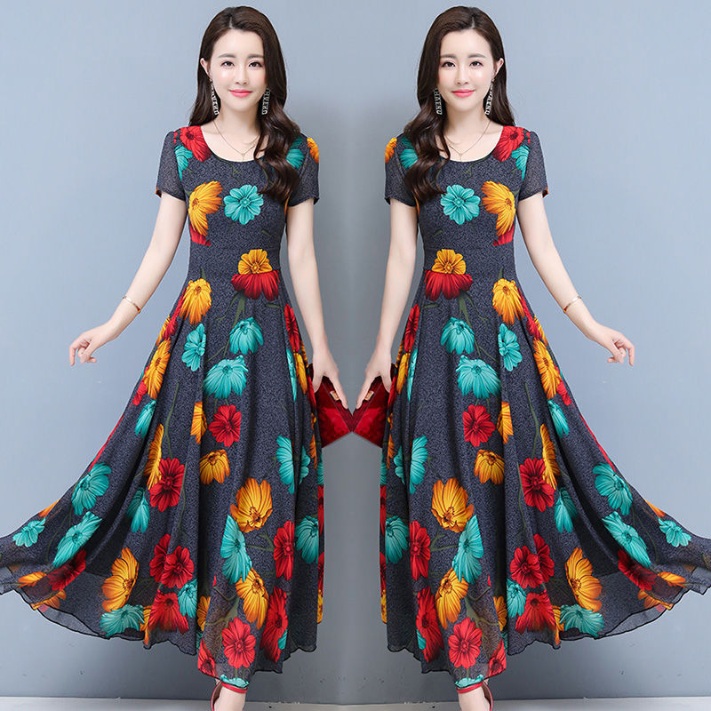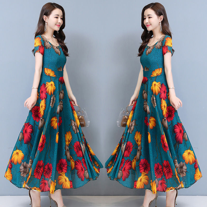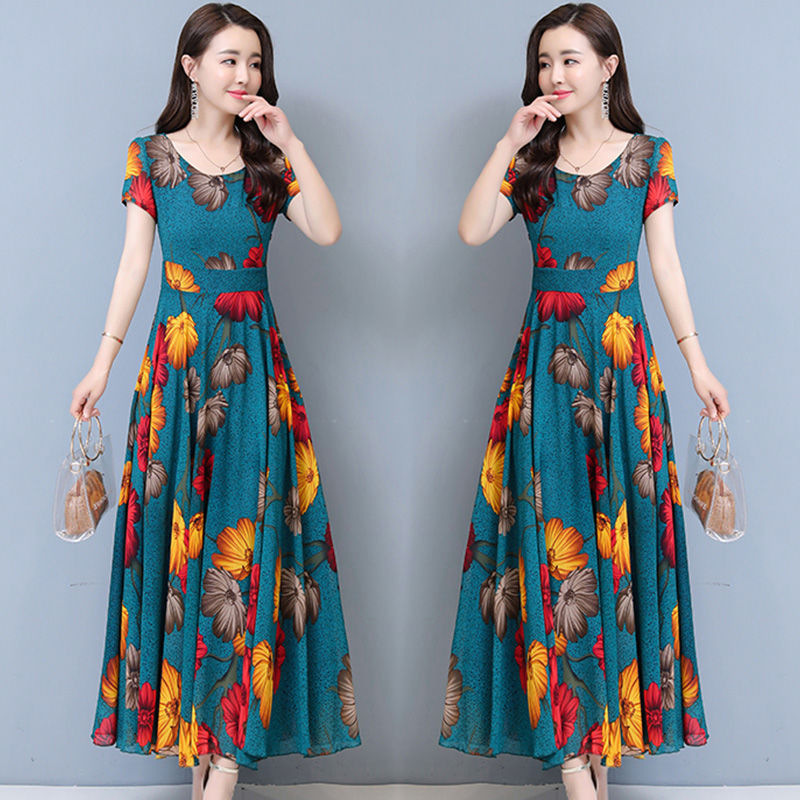 플러스 사이즈 원피스 여성의 여름 중년 어머니 치마 2024 새로운 여름 슬림 큰 둥근 목 원피스스토어 가기