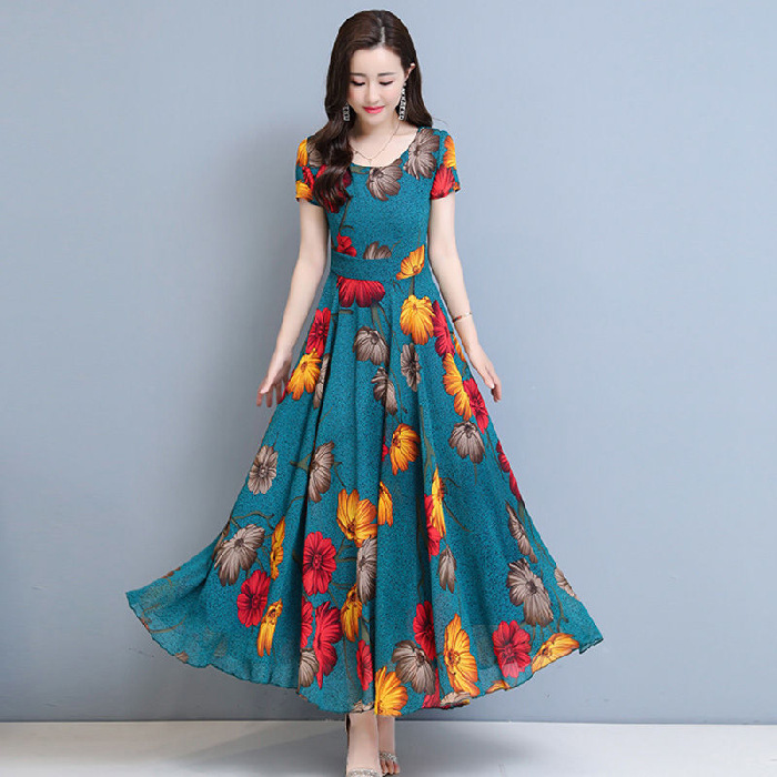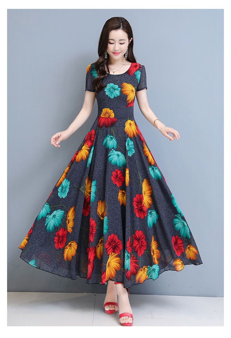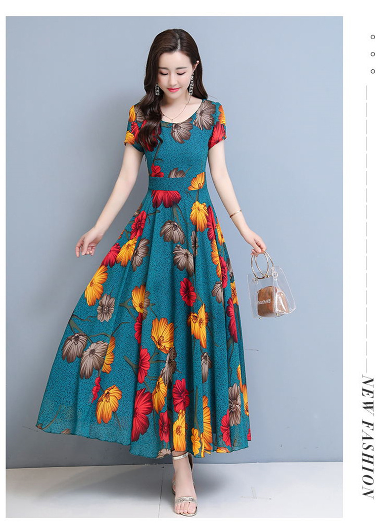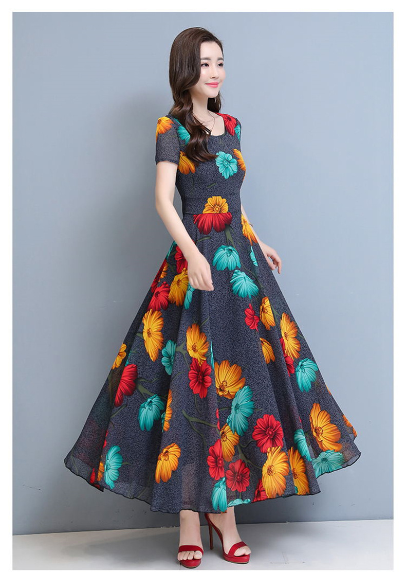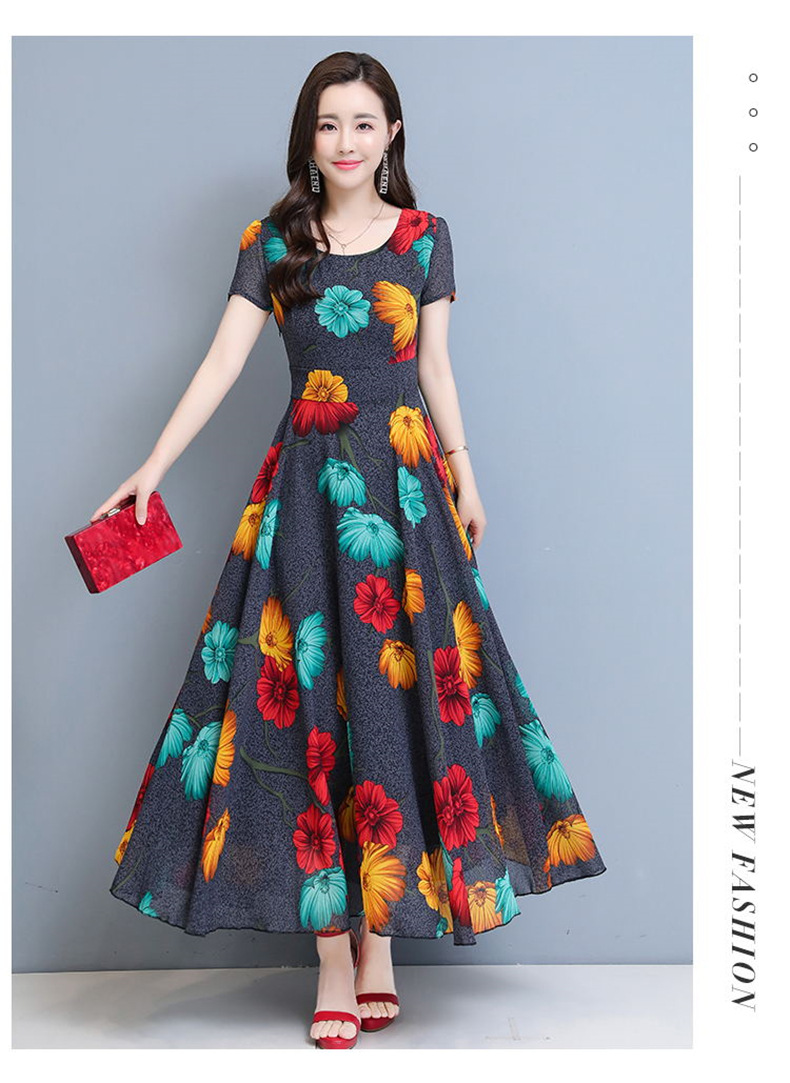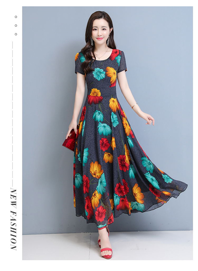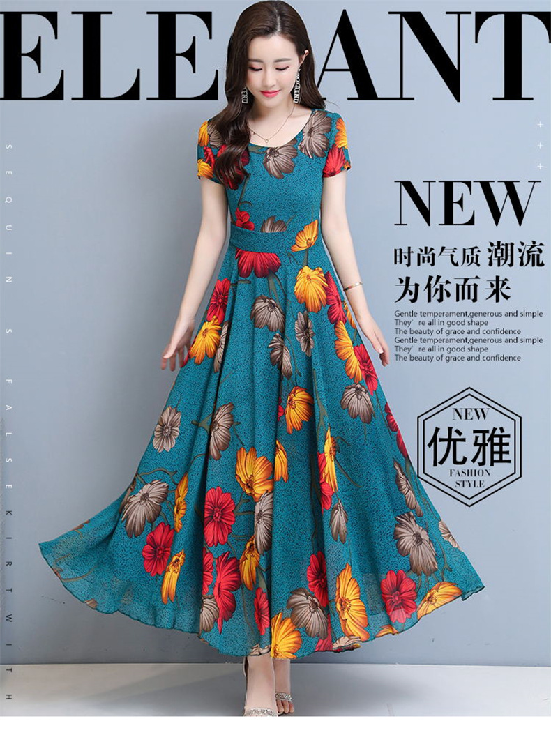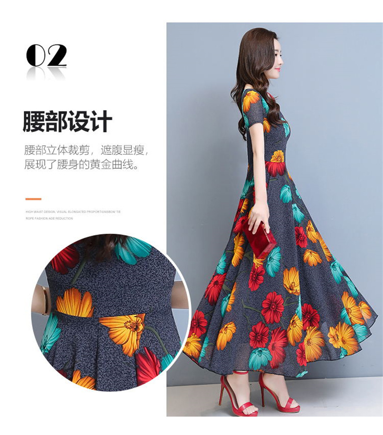 플러스 사이즈 원피스 여성의 여름 중년 어머니 치마 2024 새로운 여름 슬림 큰 둥근 목 원피스스토어 가기