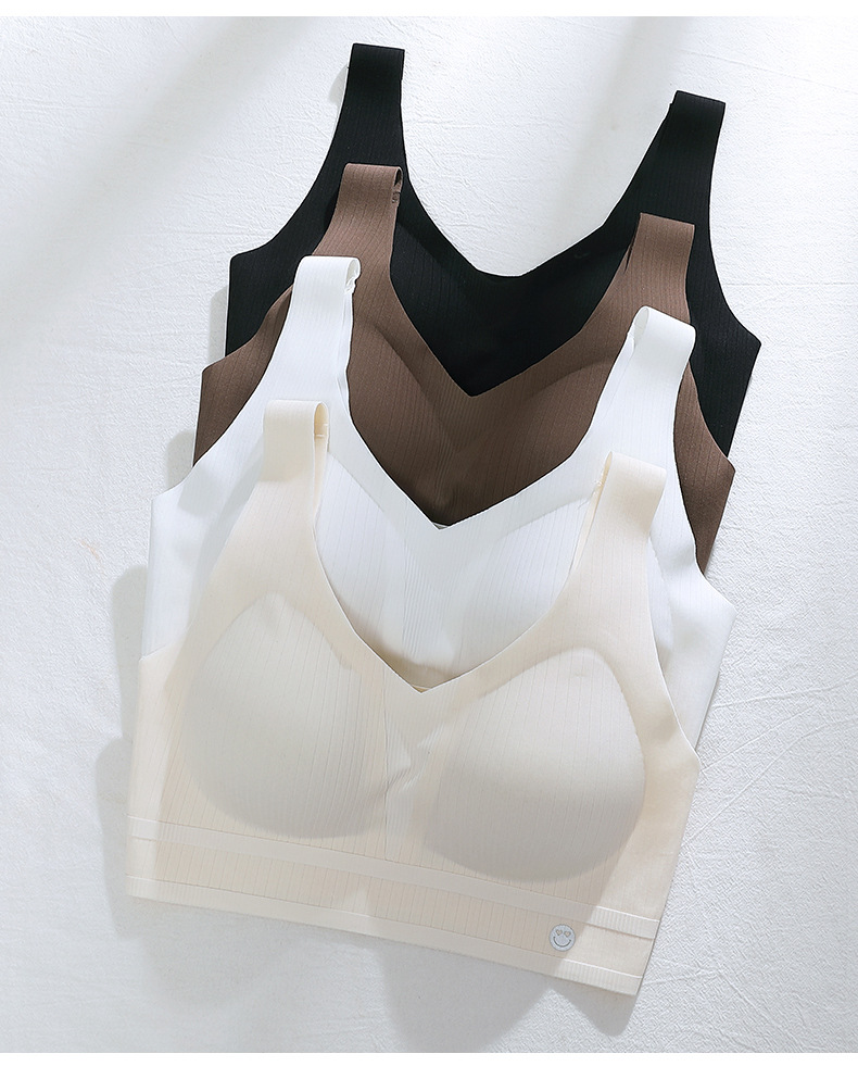 반 고정 라운드 컵 아이스 실크 아름다운 백 브라 원피스 비 스틸 링 넓은 어깨 랩 가슴 내부 및 외부 착용 여성용 원활한 속옷