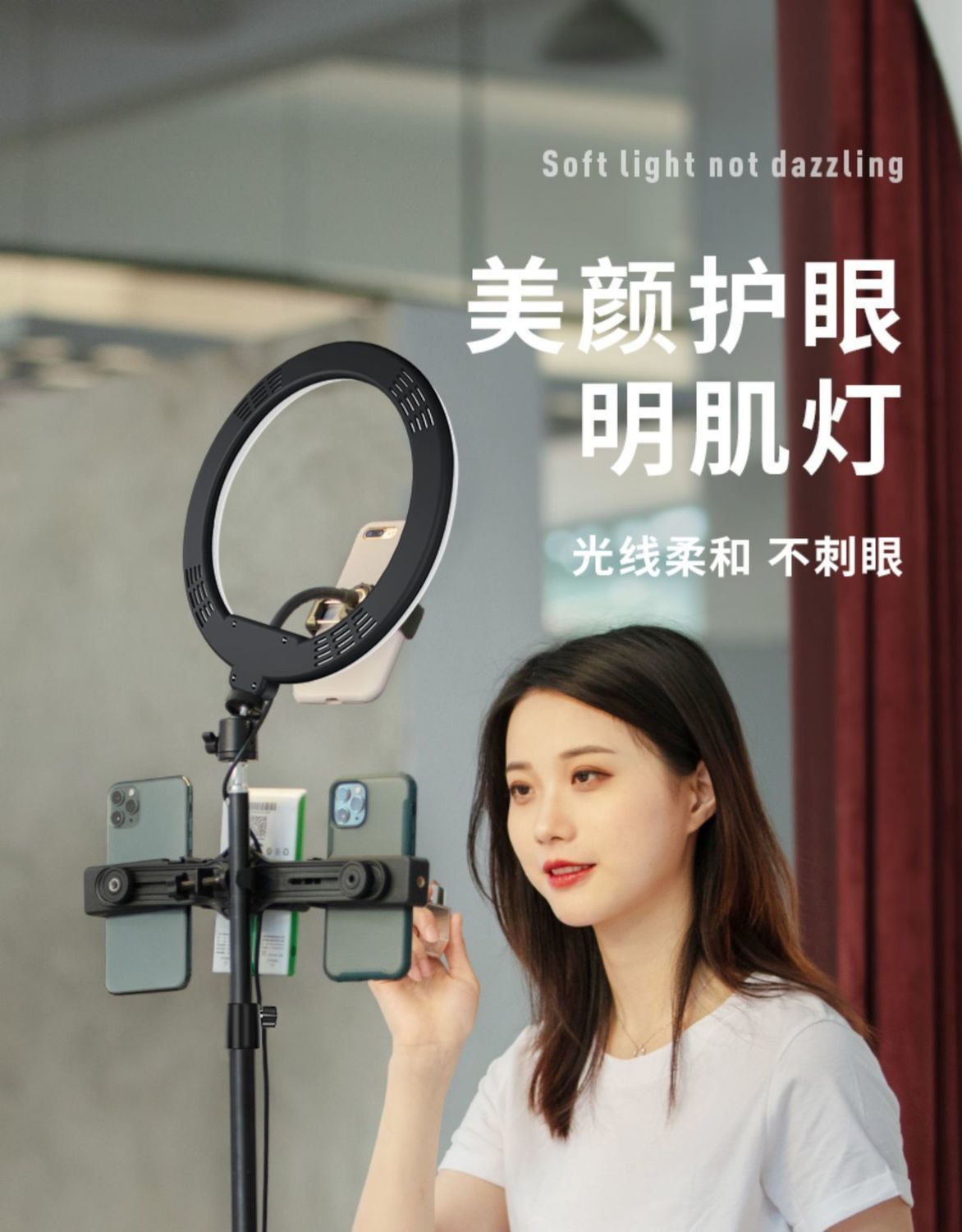 • 2m 삼각대 [뷰티 필인 라이브 방송] + 휴대폰 클립 + 팬/틸트 + 수납가방 + 26cm 필인 라이트
