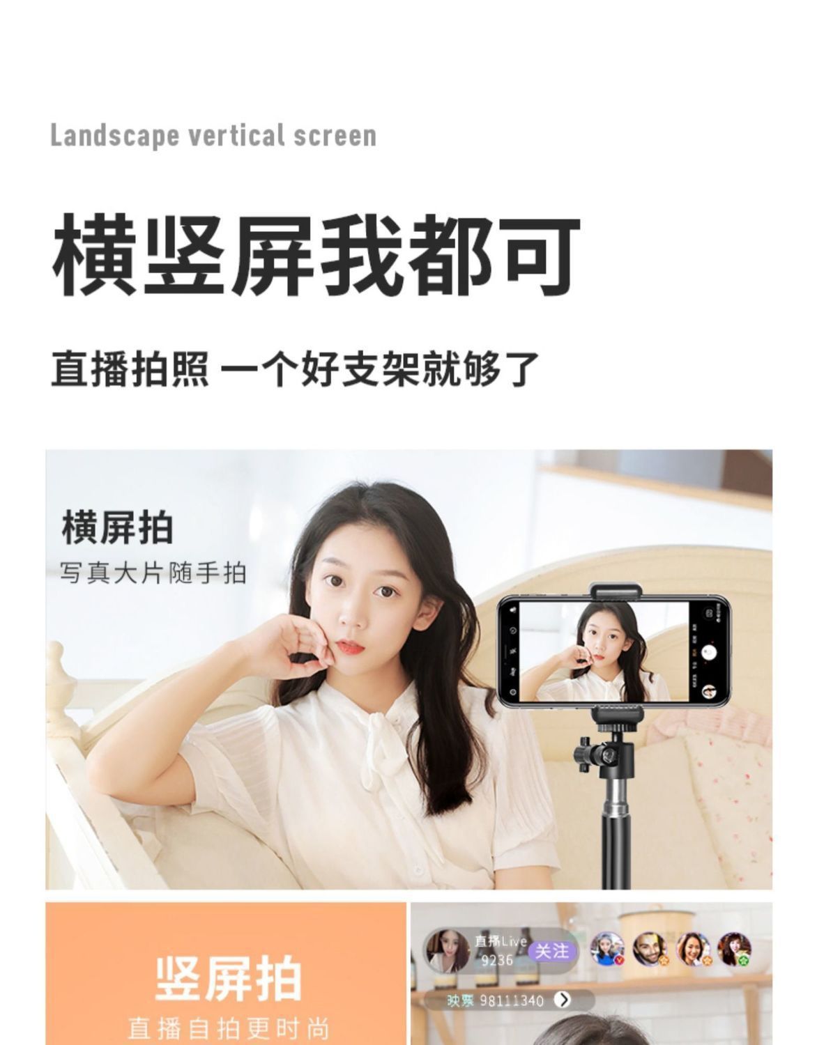 휴대 전화 브래킷 라이브 방송 장비 다기능 삼각대 데스크탑 앵커 촬영 사진 채우기 라이트 셀카 스틱 유니버설스토어 가기