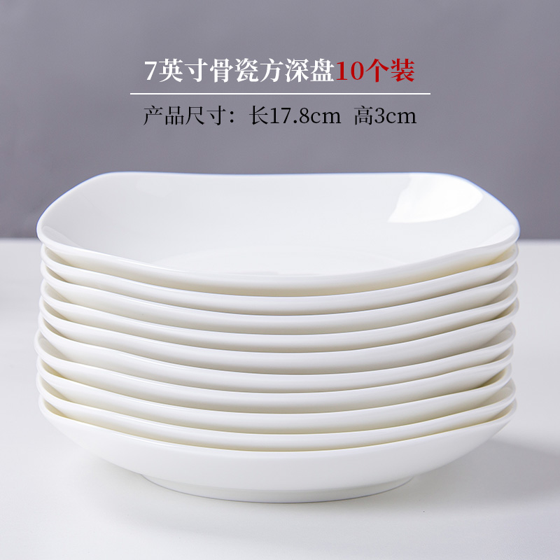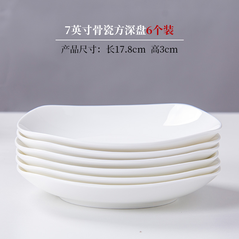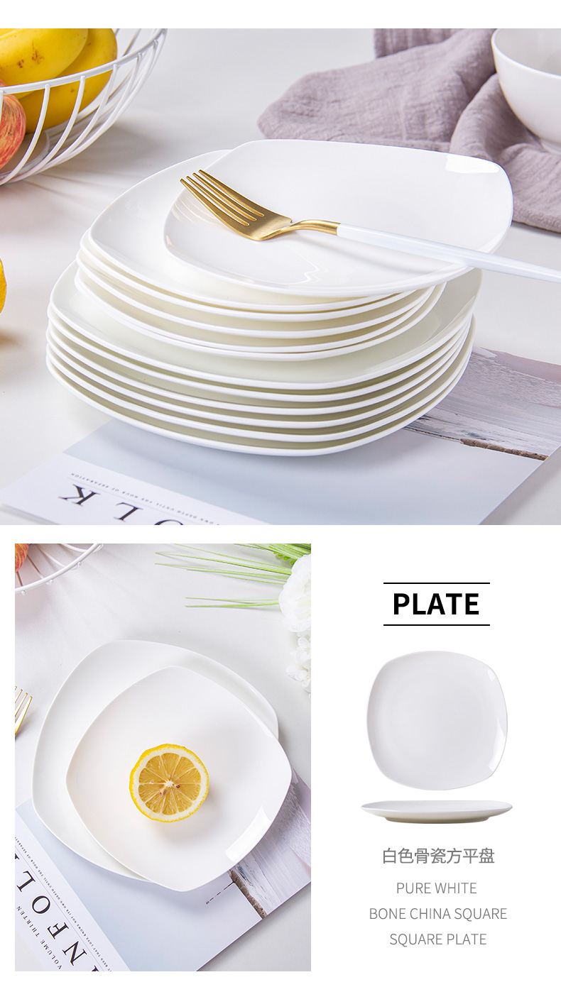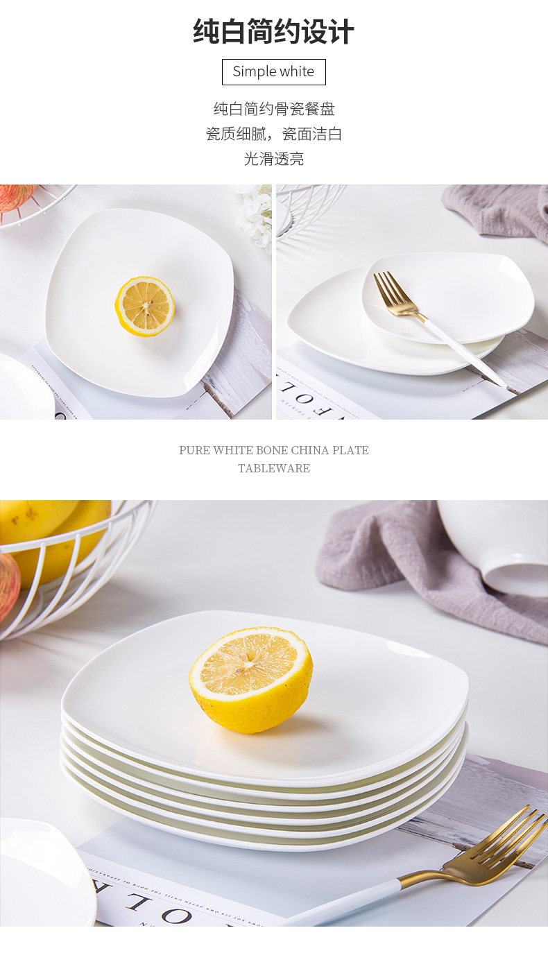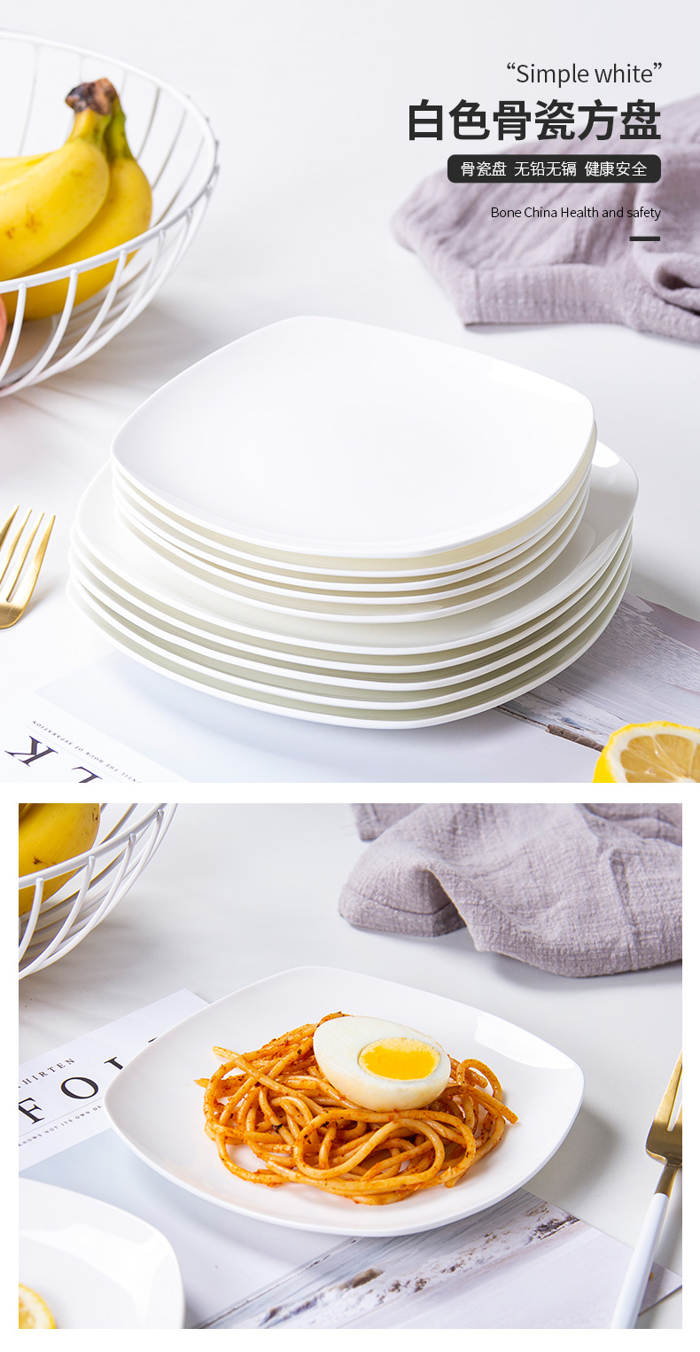 순수한 흰 뼈 중국 접시 접시 가정 창조적 인 Jingdezhen 세라믹 식기 광장 샐러드 딥 플레이트 볶음 수프 플레이트스토어 가기
