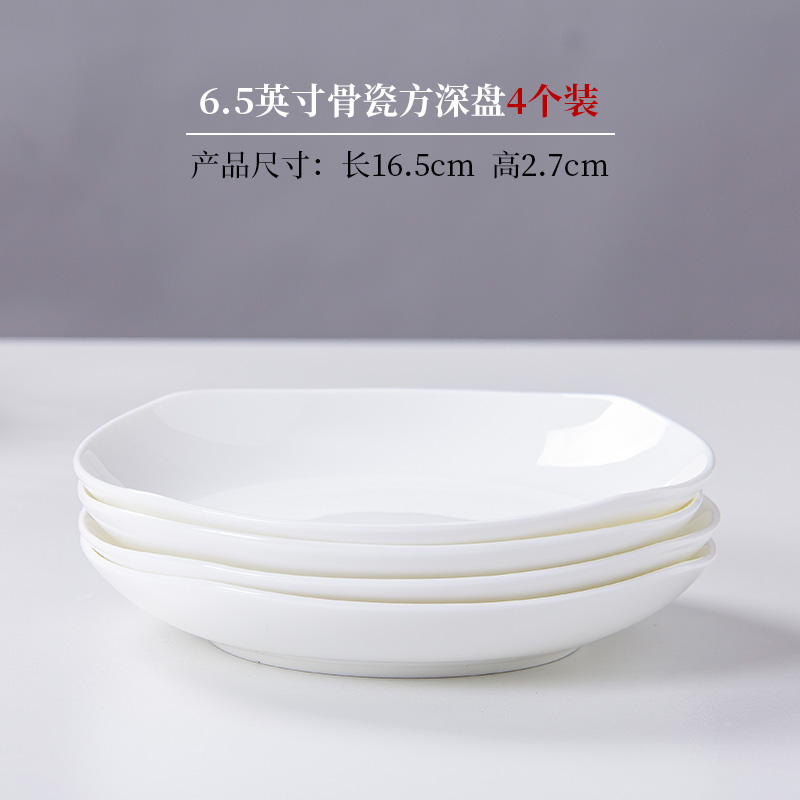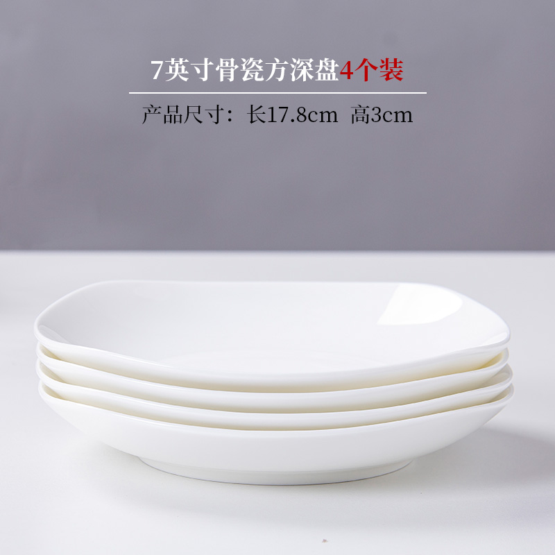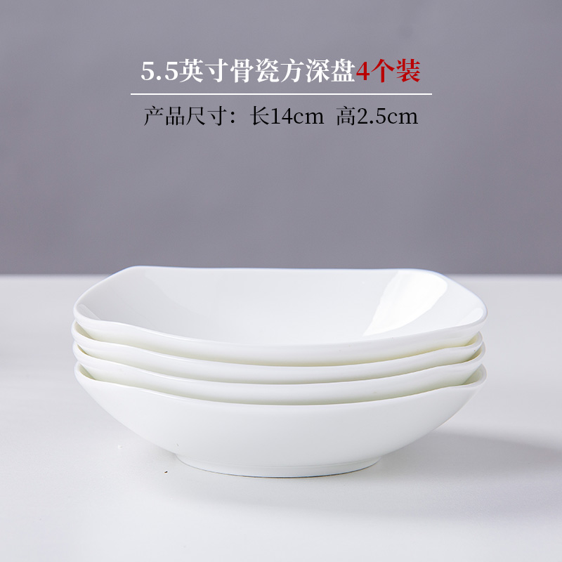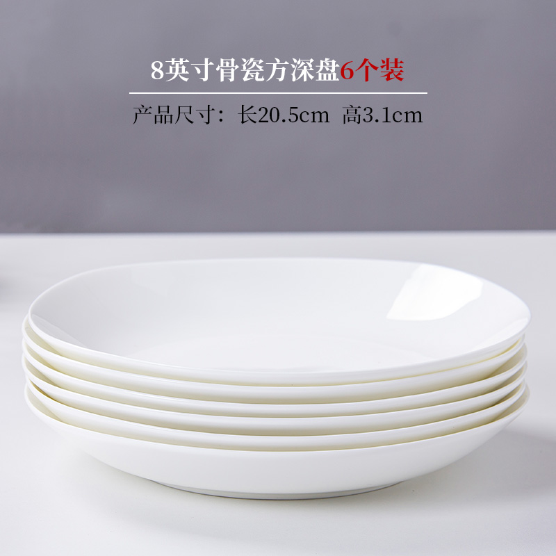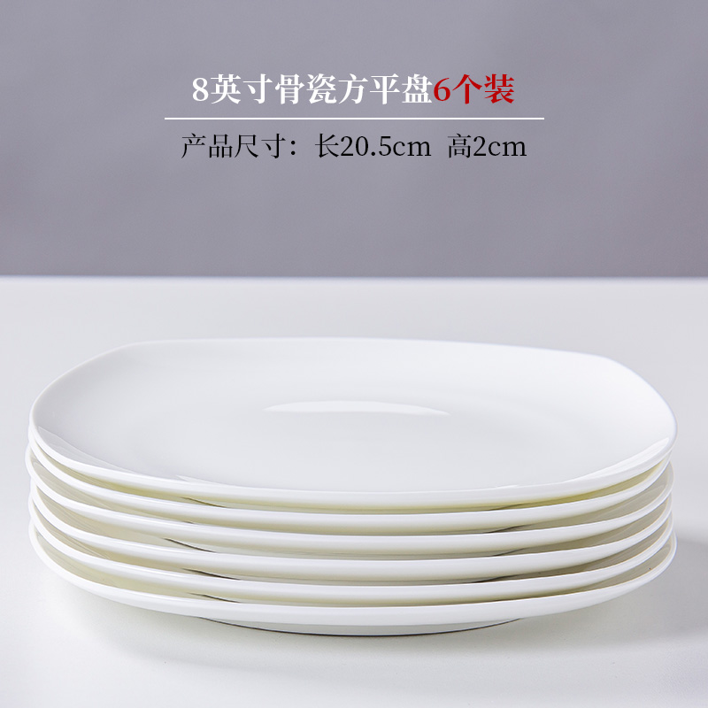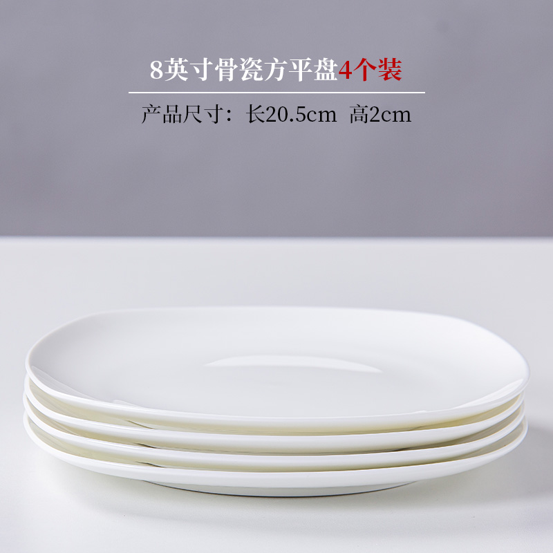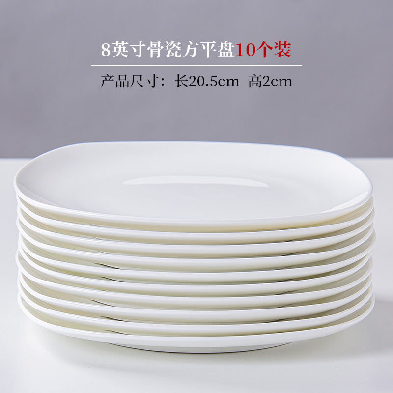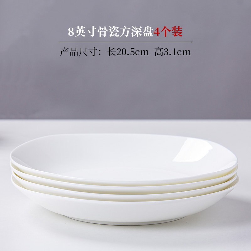 순수한 흰 뼈 중국 접시 접시 가정 창조적 인 Jingdezhen 세라믹 식기 광장 샐러드 딥 플레이트 볶음 수프 플레이트스토어 가기