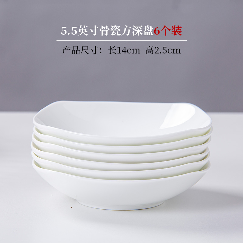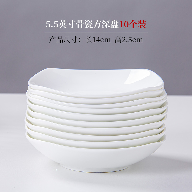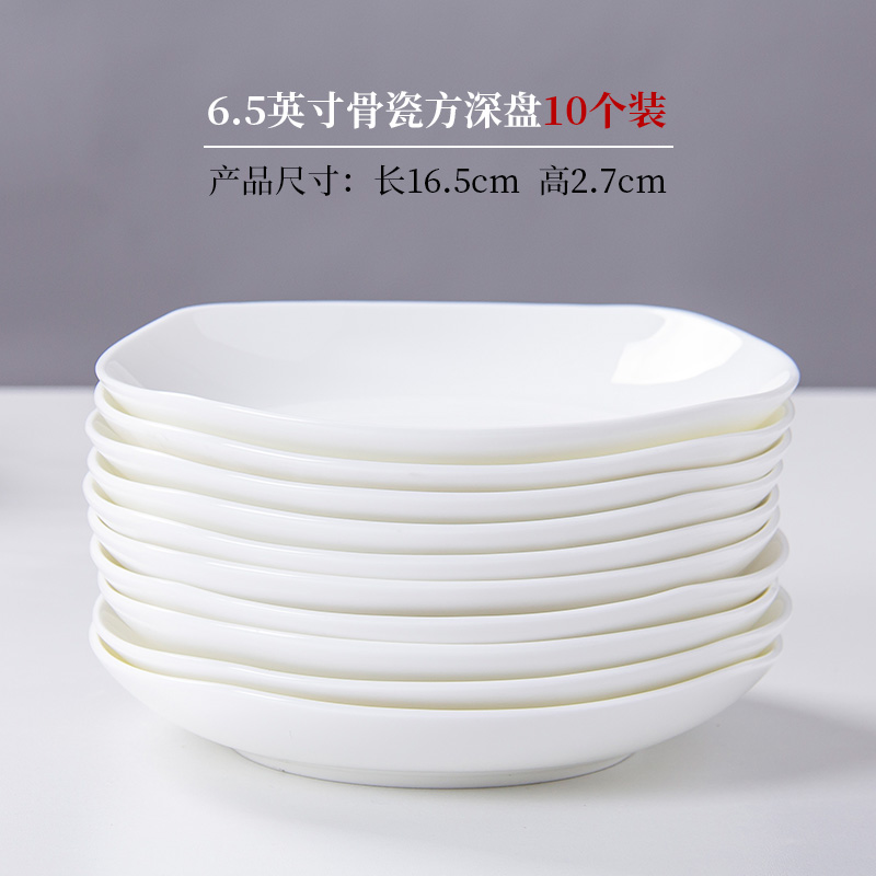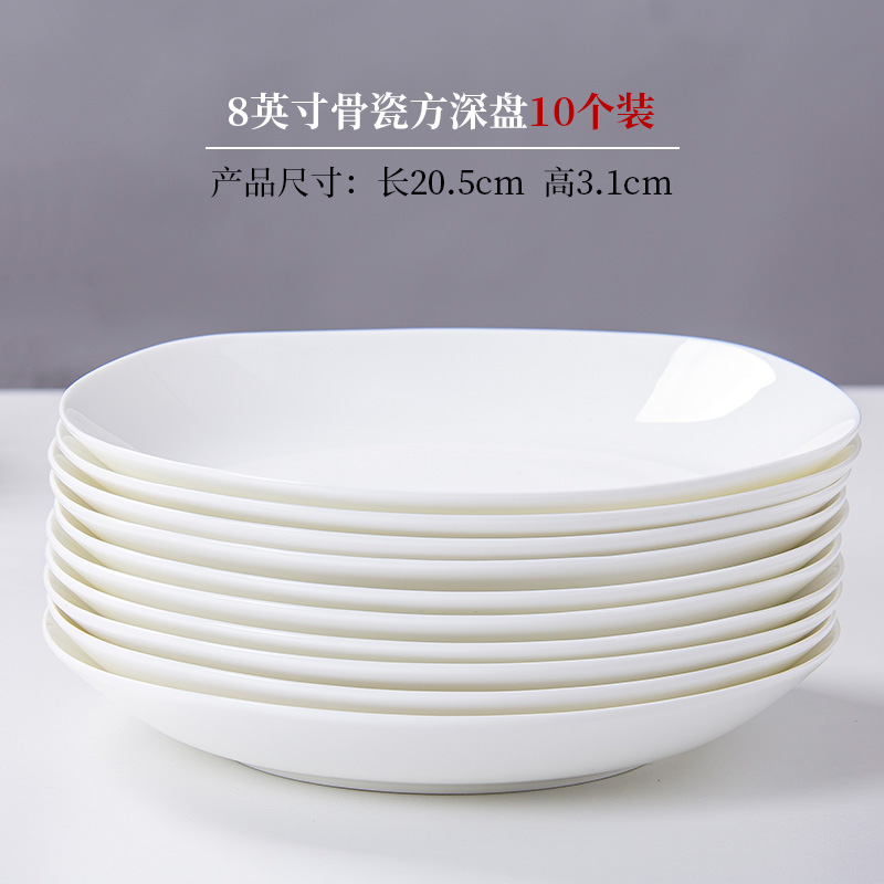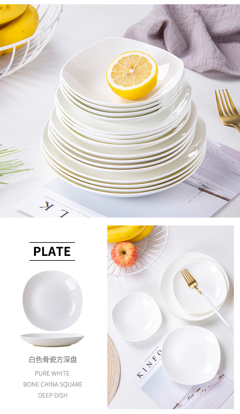 순수한 흰 뼈 중국 접시 접시 가정 창조적 인 Jingdezhen 세라믹 식기 광장 샐러드 딥 플레이트 볶음 수프 플레이트