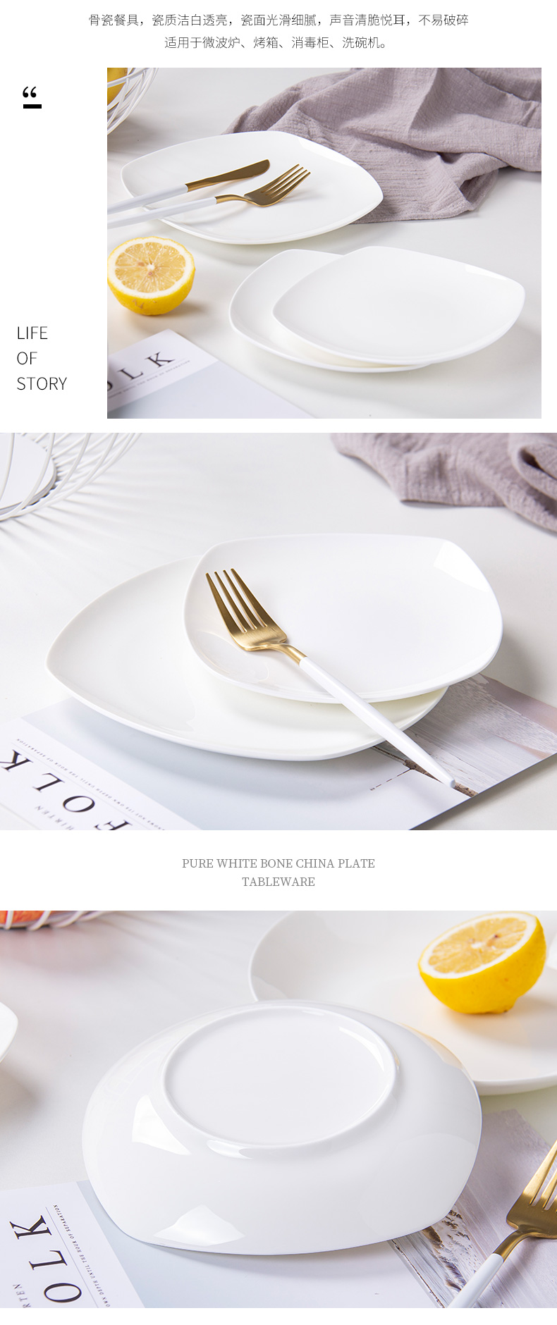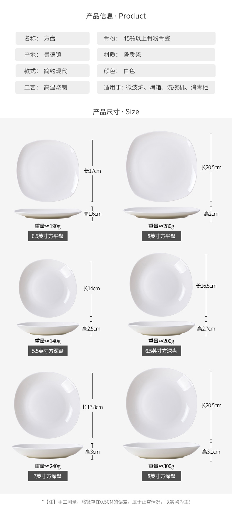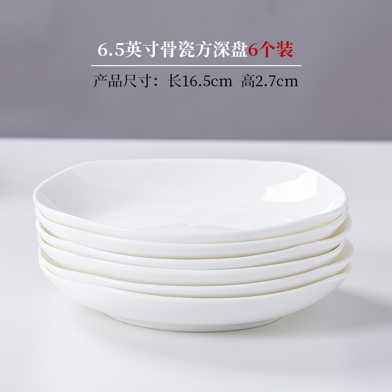 순수한 흰 뼈 중국 접시 접시 가정 창조적 인 Jingdezhen 세라믹 식기 광장 샐러드 딥 플레이트 볶음 수프 플레이트