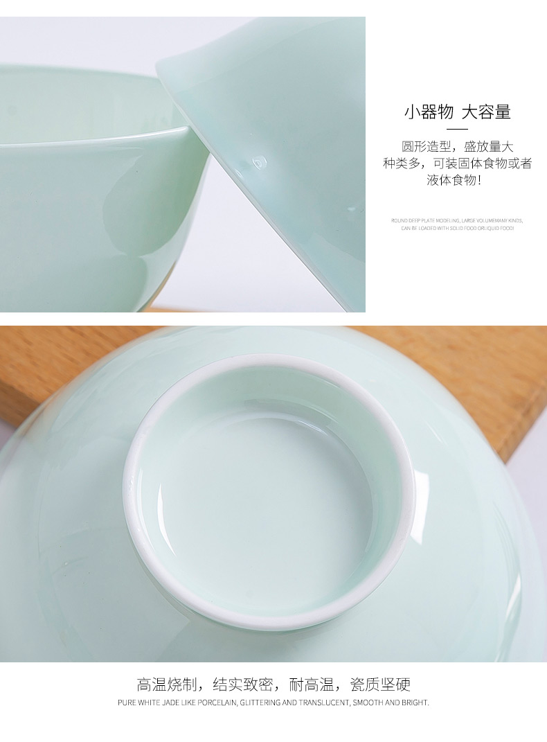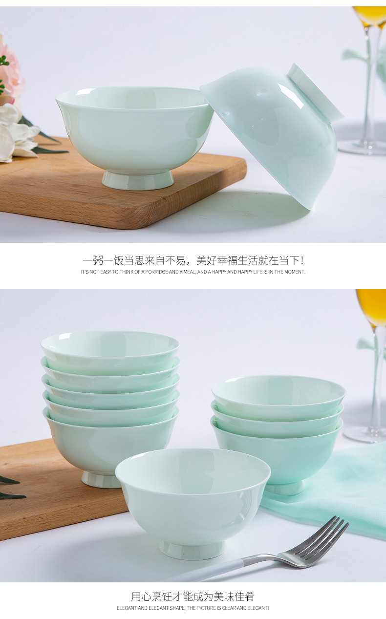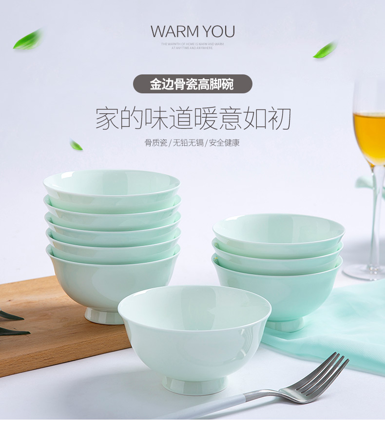 Jingdezhen 청자 가정용 뼈 중국 밥 그릇 중국 높은 발 그릇 세트 4/6/10 세라믹 그릇